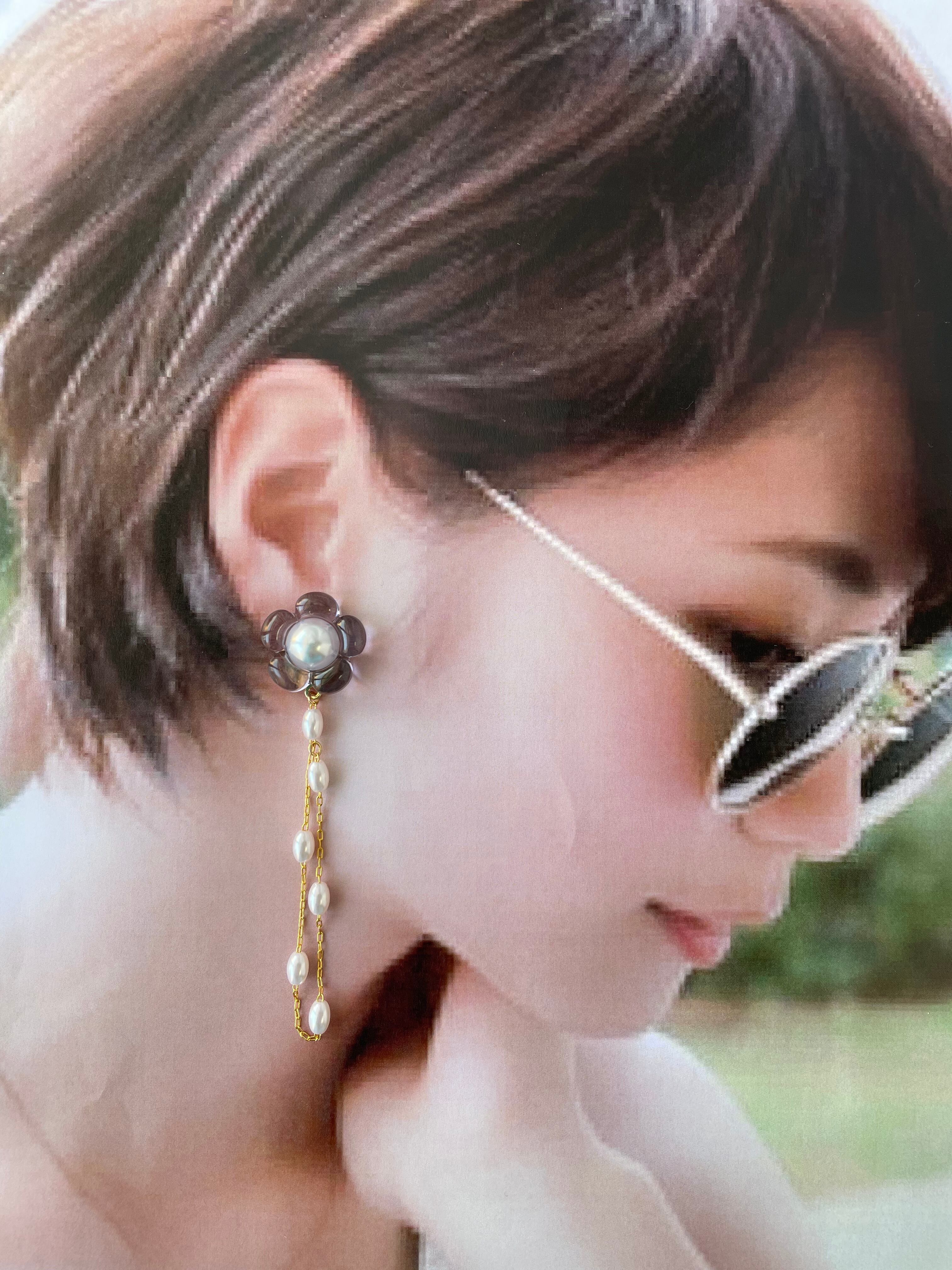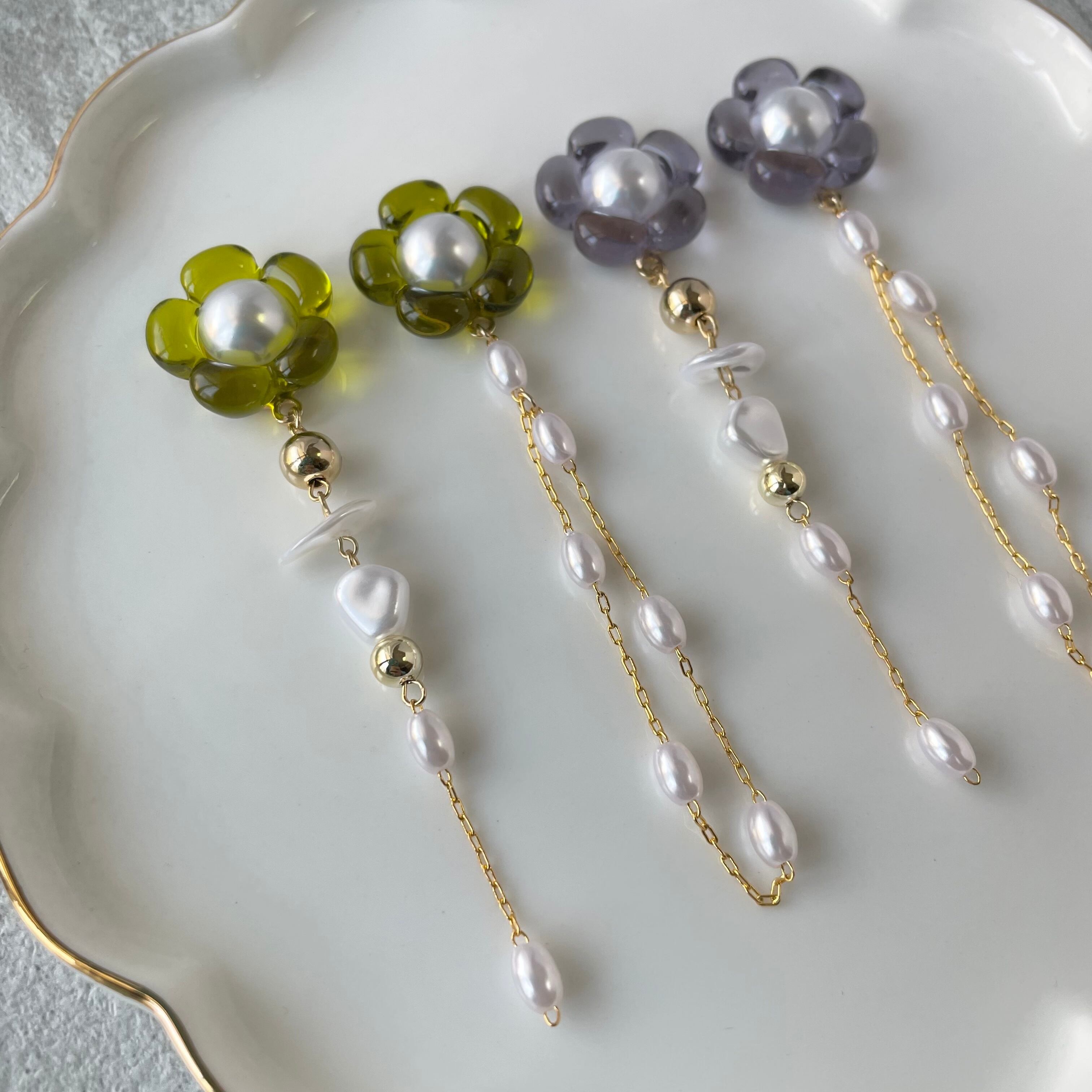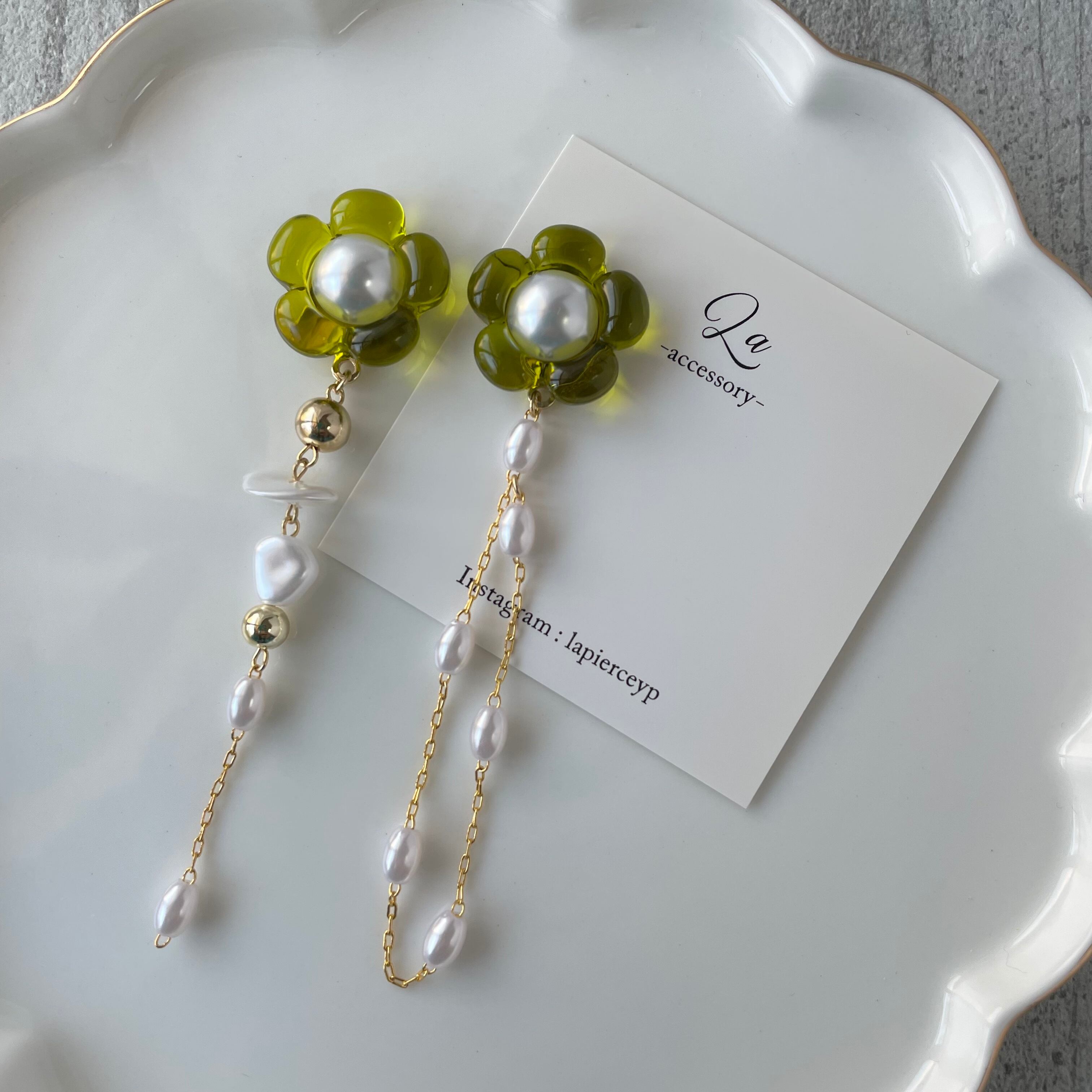 ちゅるんフラワーアシメ16kgチェーンピアス