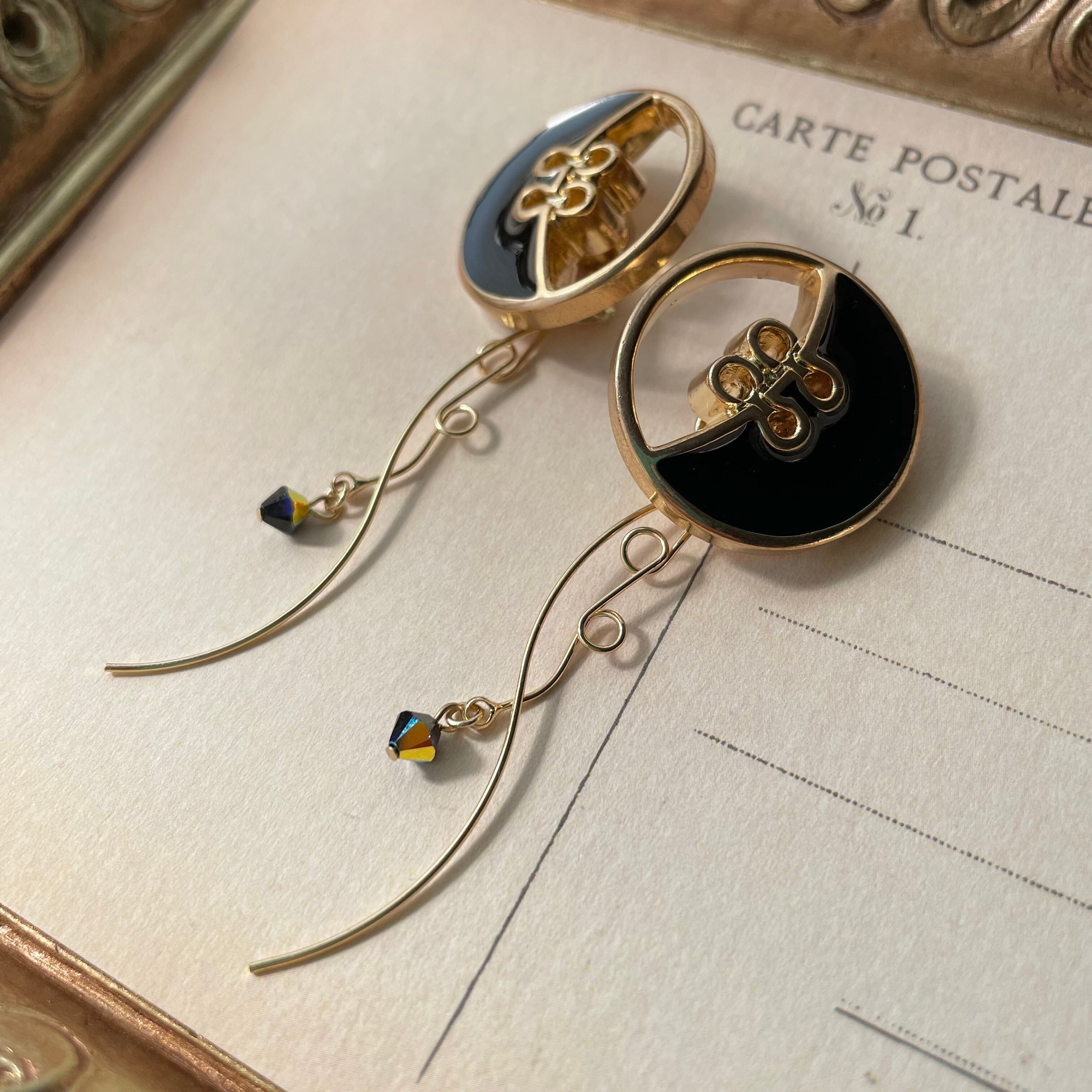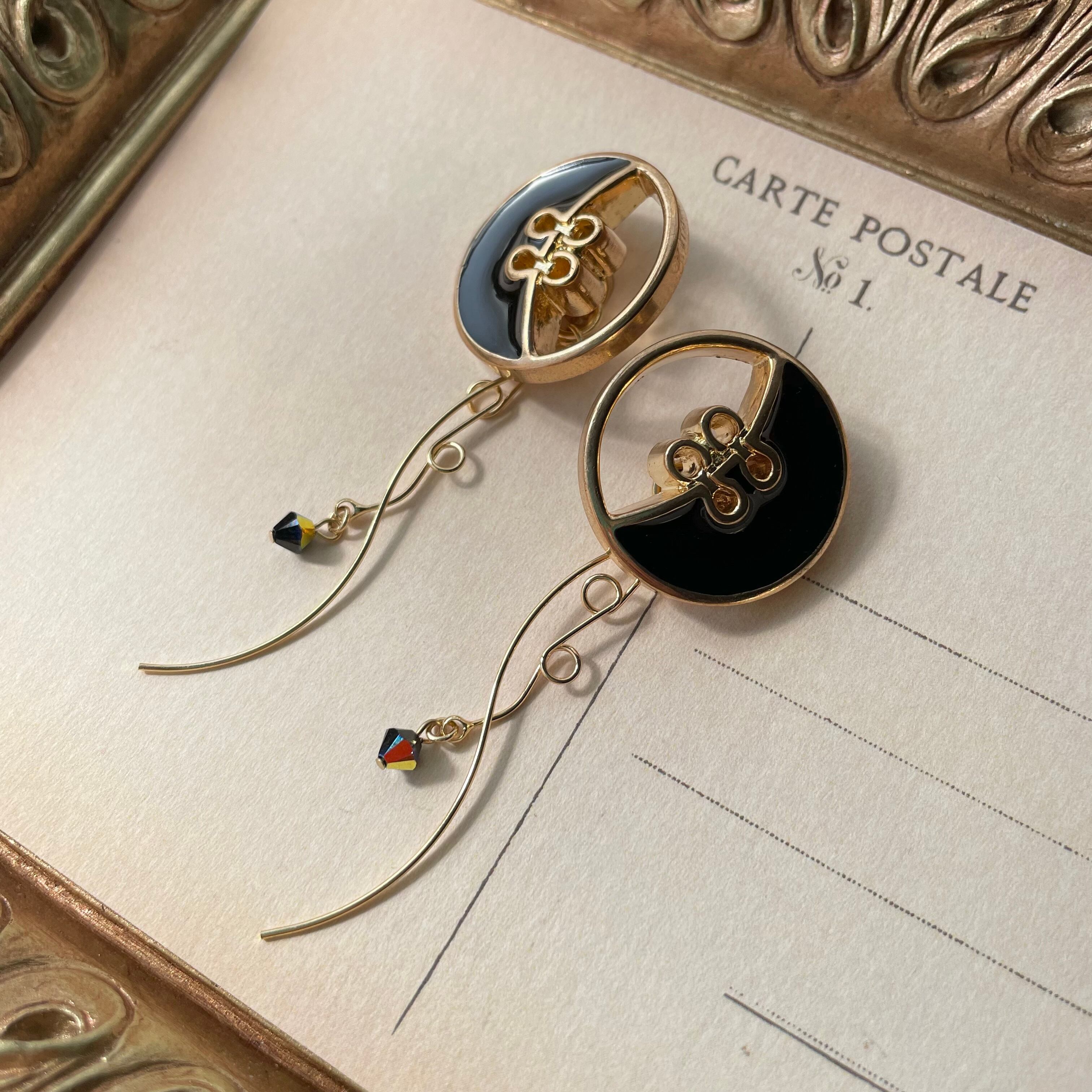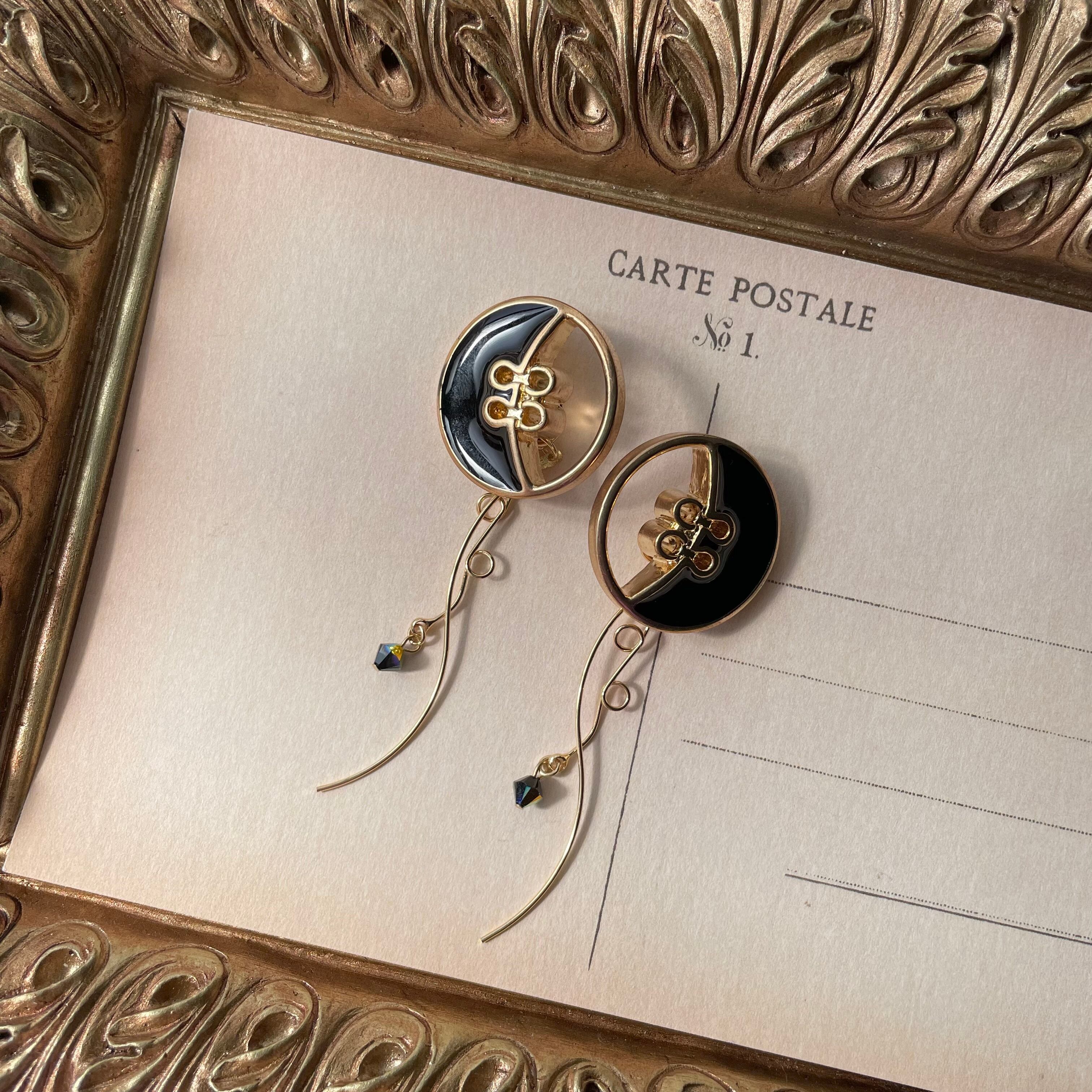 【ピアスのみ 樹脂可*】アンティークボタン×ブラックスワロピアス