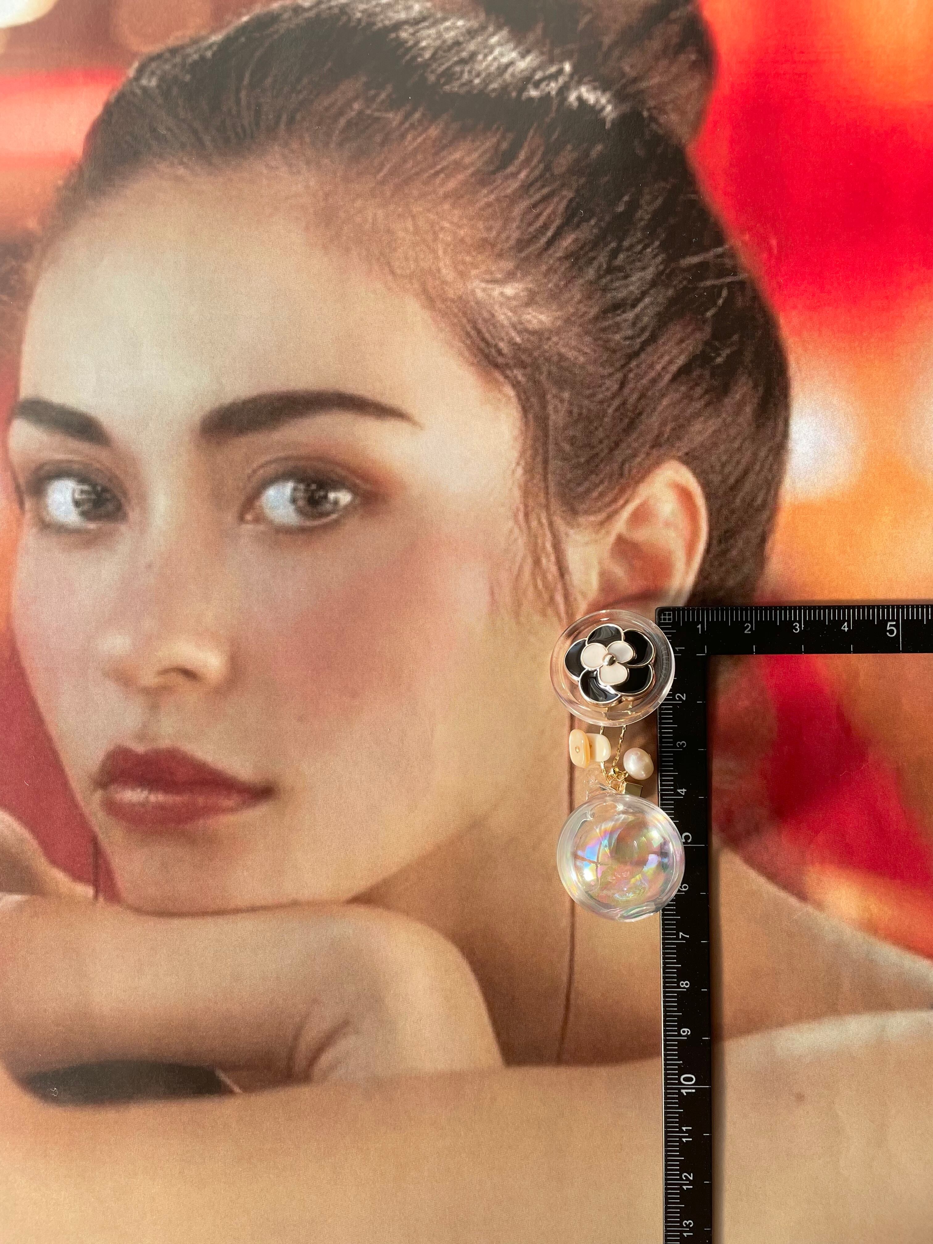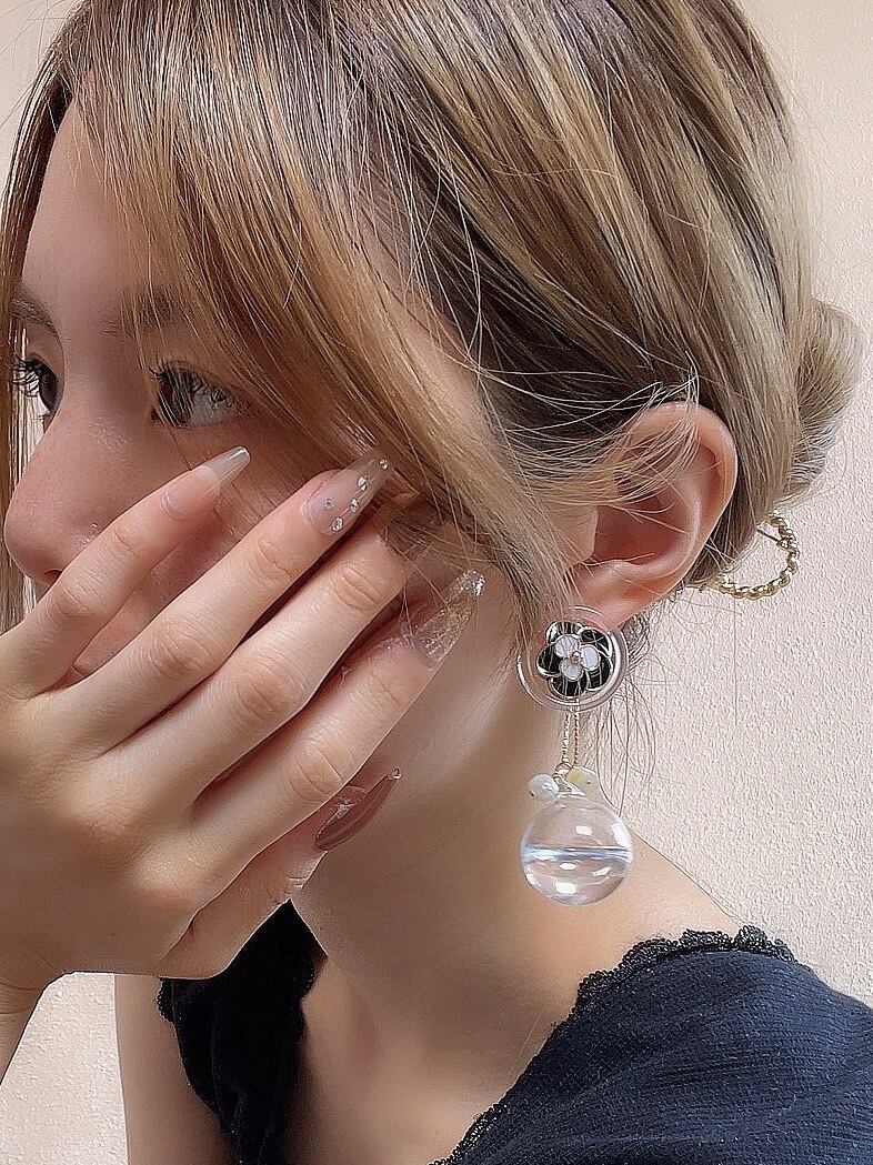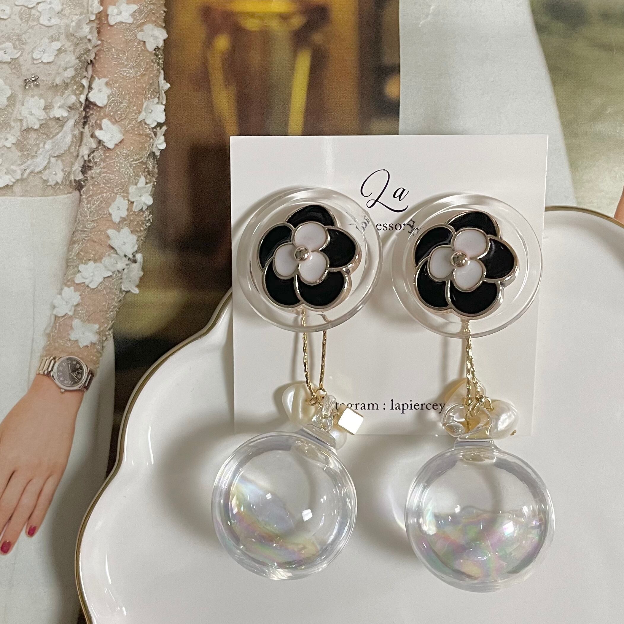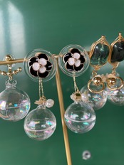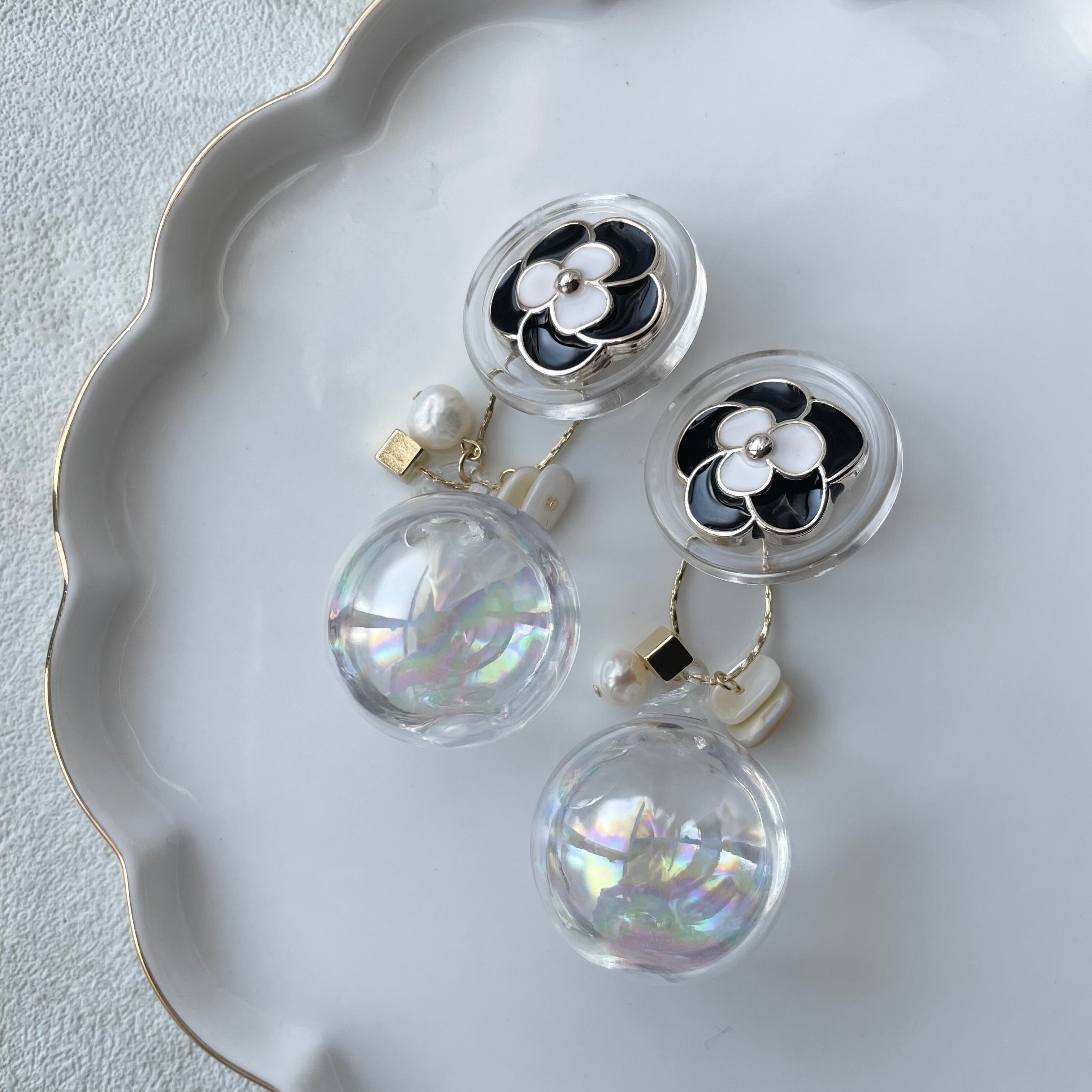 【ピアスのみ*】 モノクロフラワー×しゃぼんだまピアス