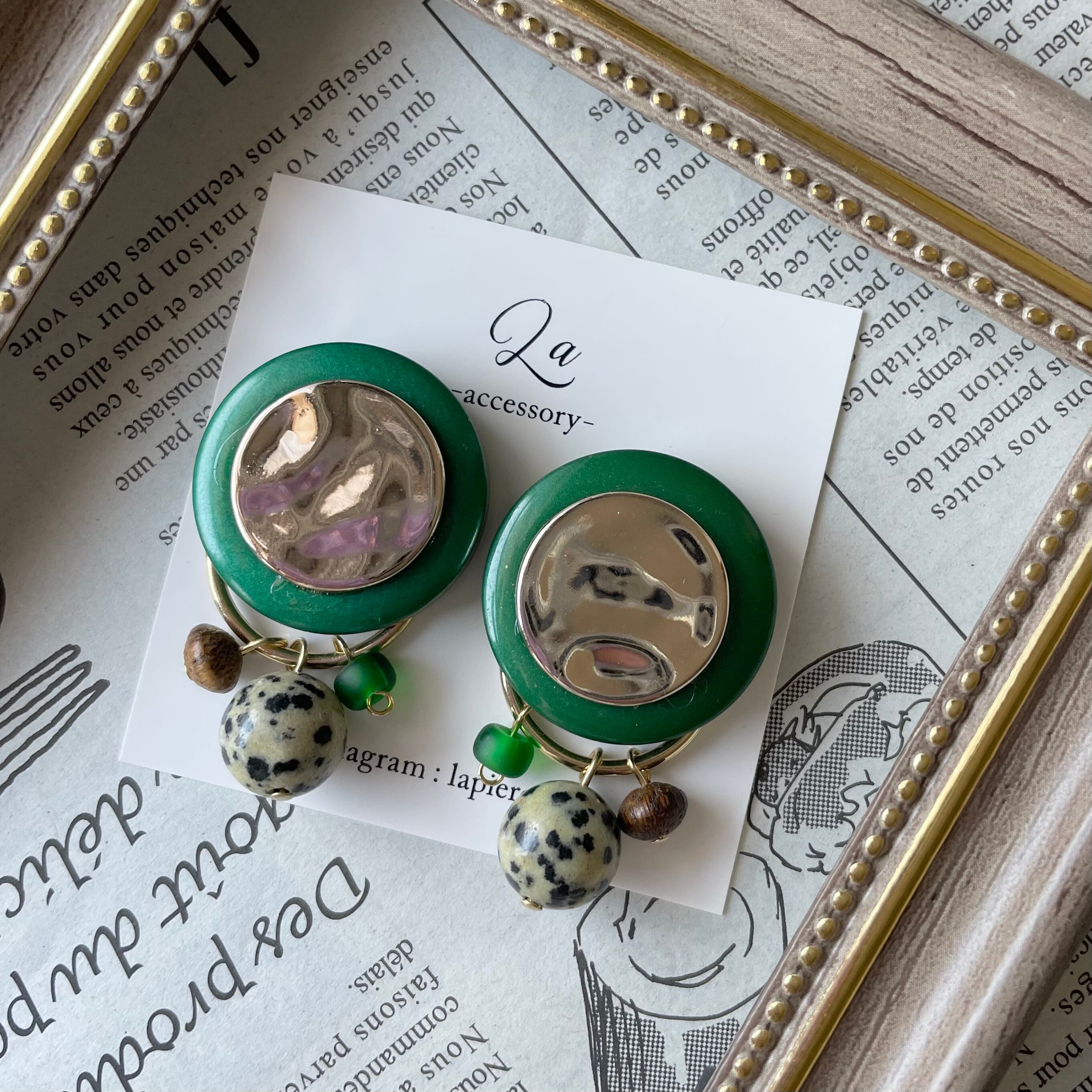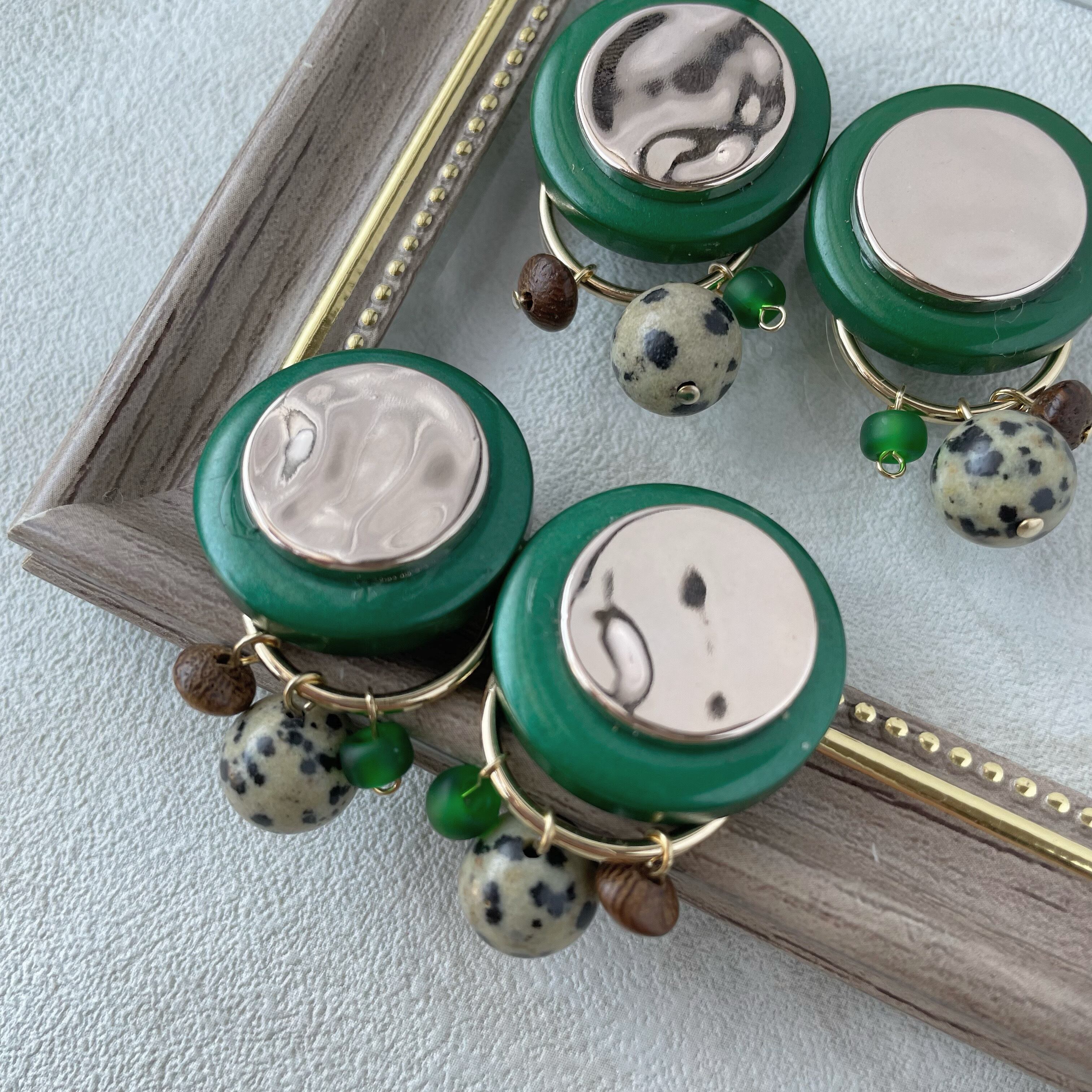 ダルメシアンストーン、ウッド、樹脂ビーズの異素材の組み合わせ( ⸝⸝⸝ᵕᴗᵕ⸝⸝⸝ )