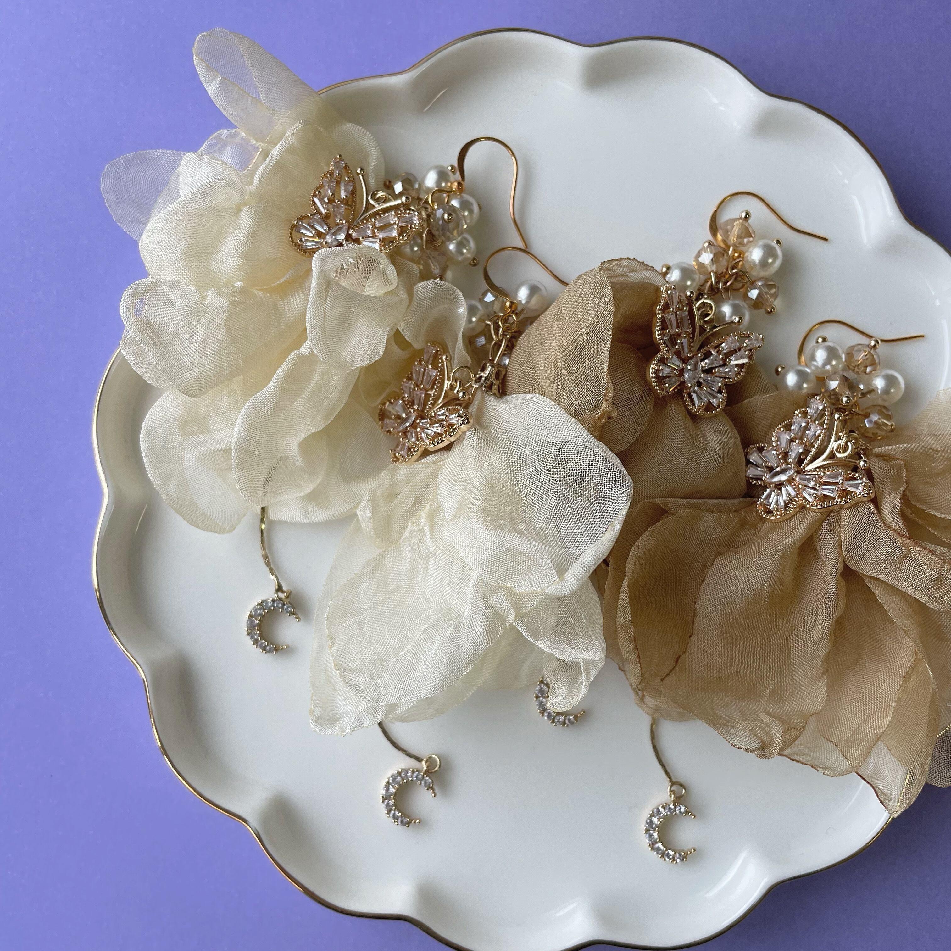 蝶×シフォンタッセルピアス