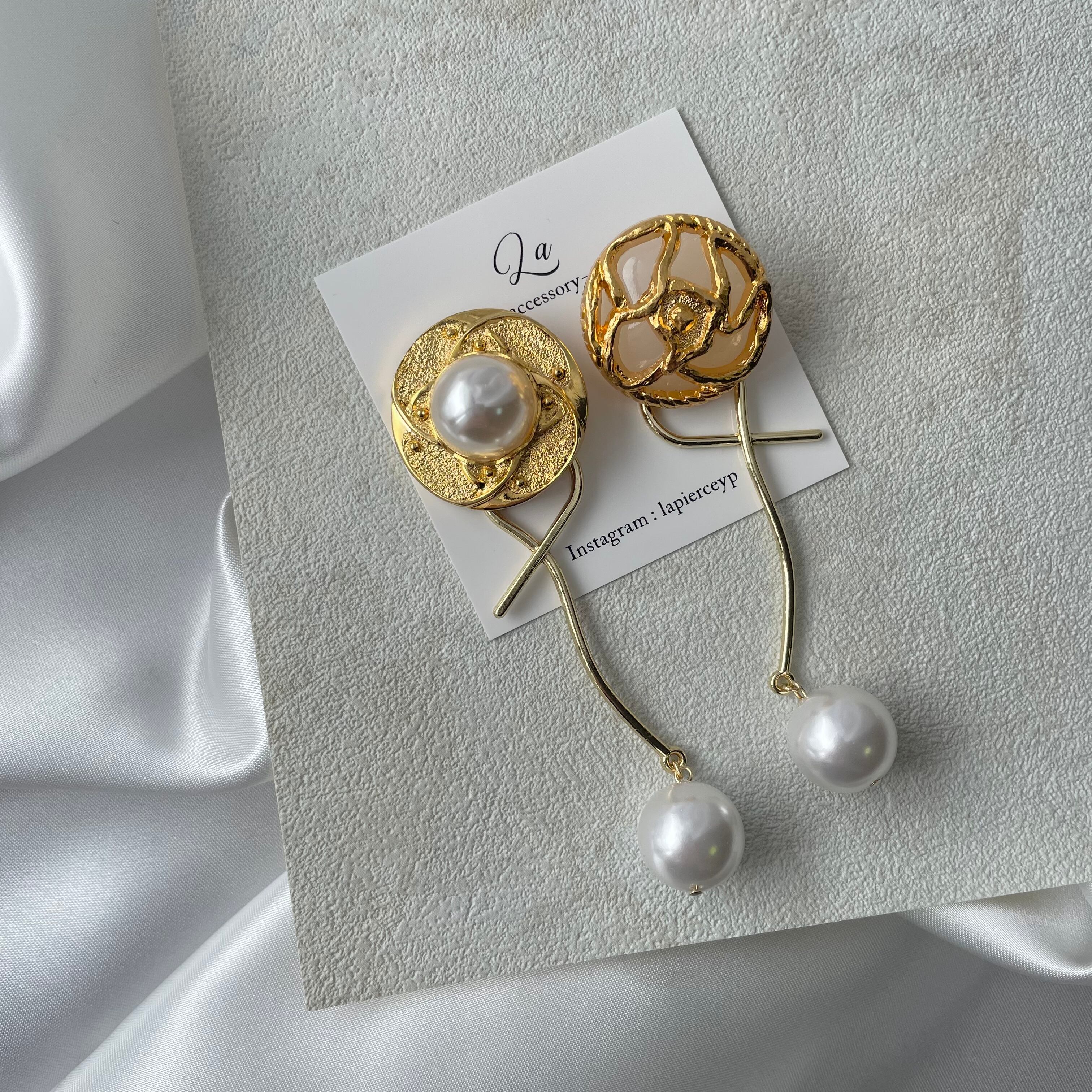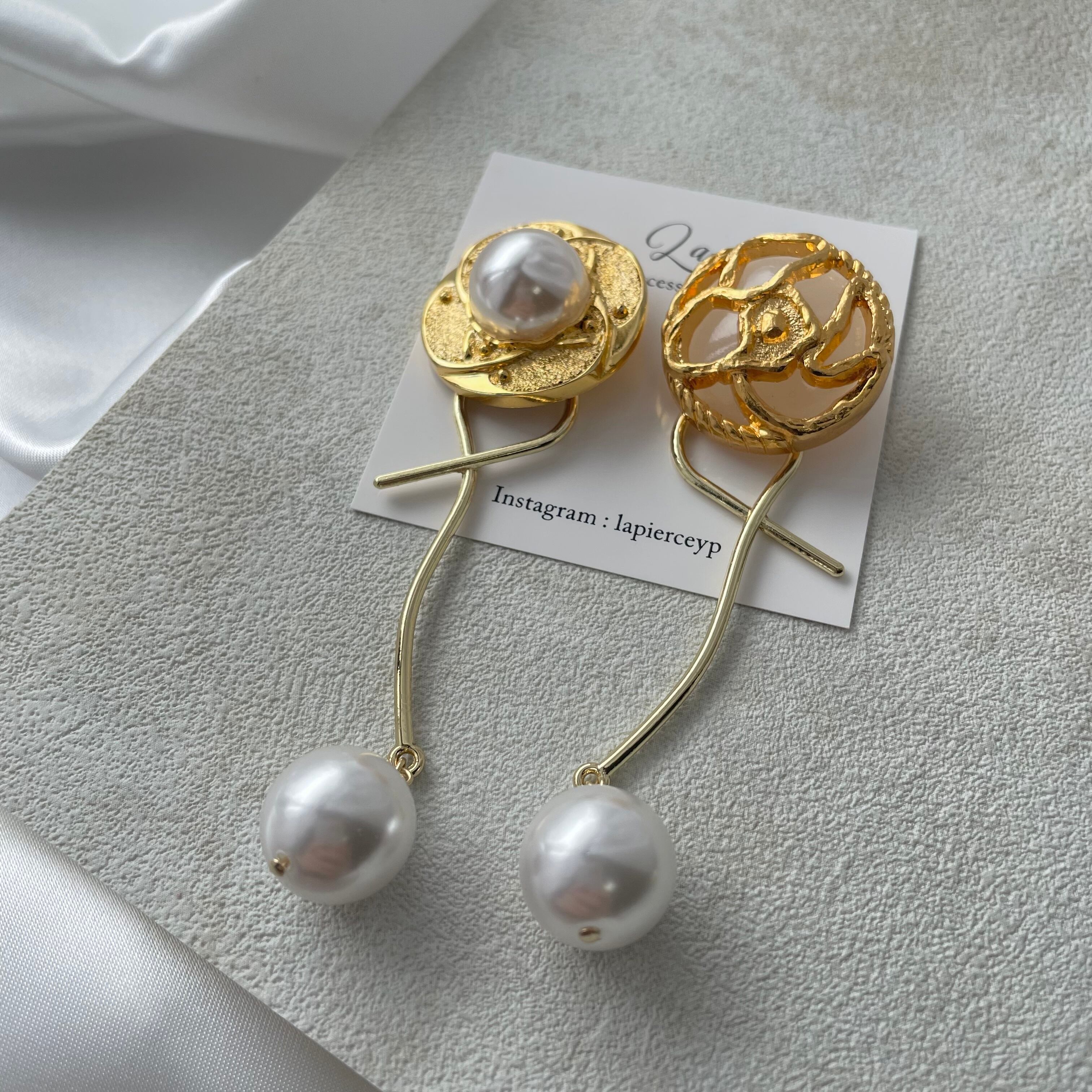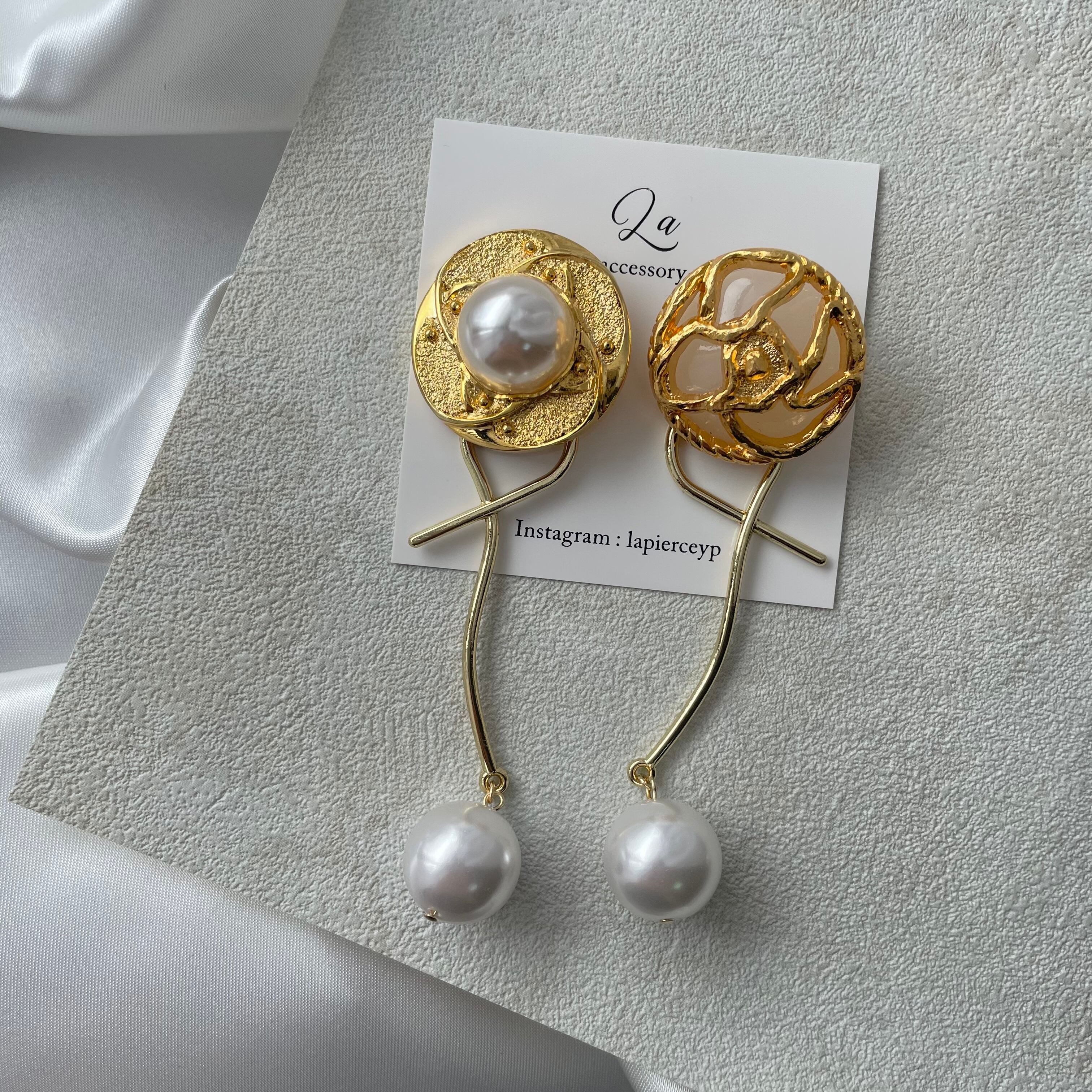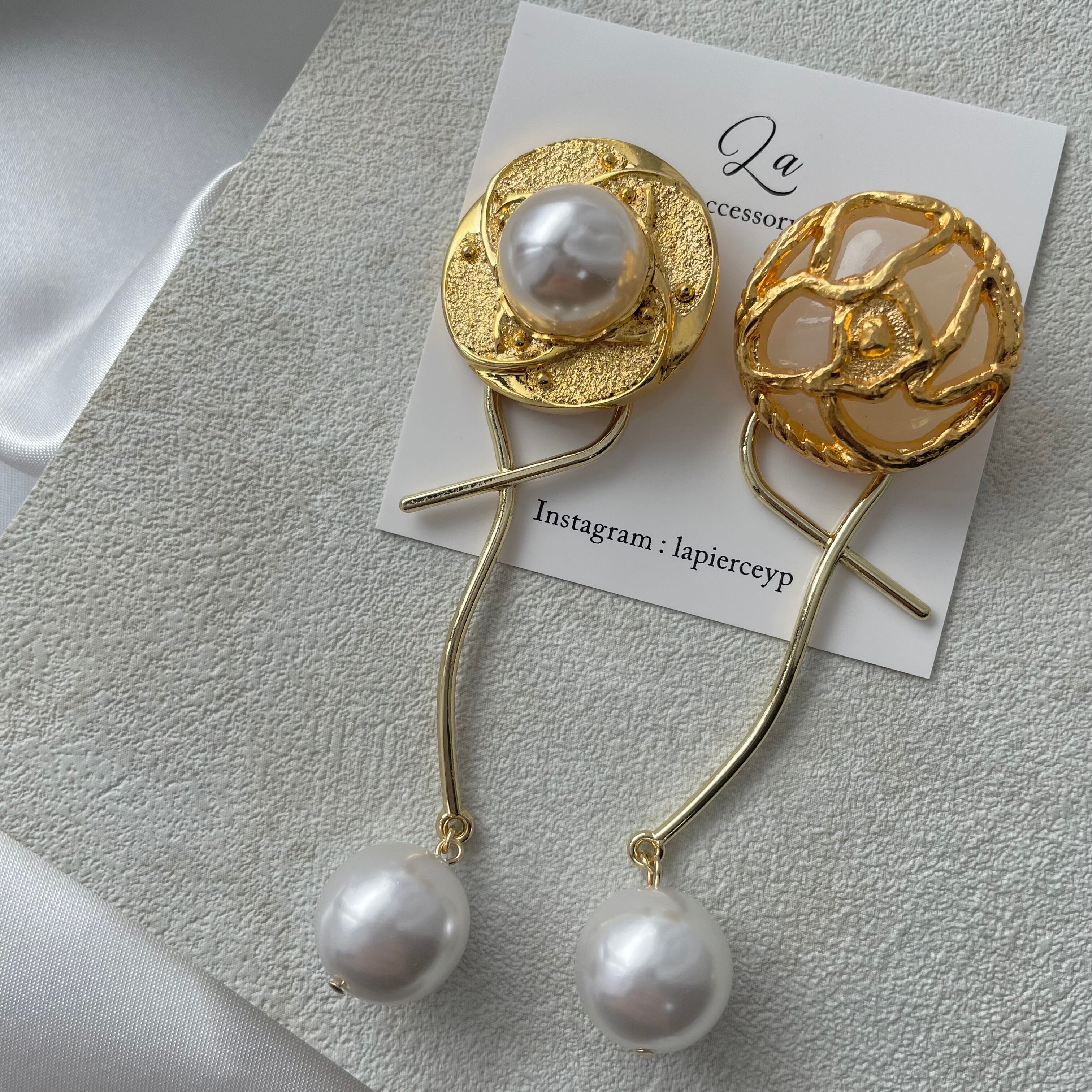 【1点物*】ヴィンテージボタン×くるりんぱピアス