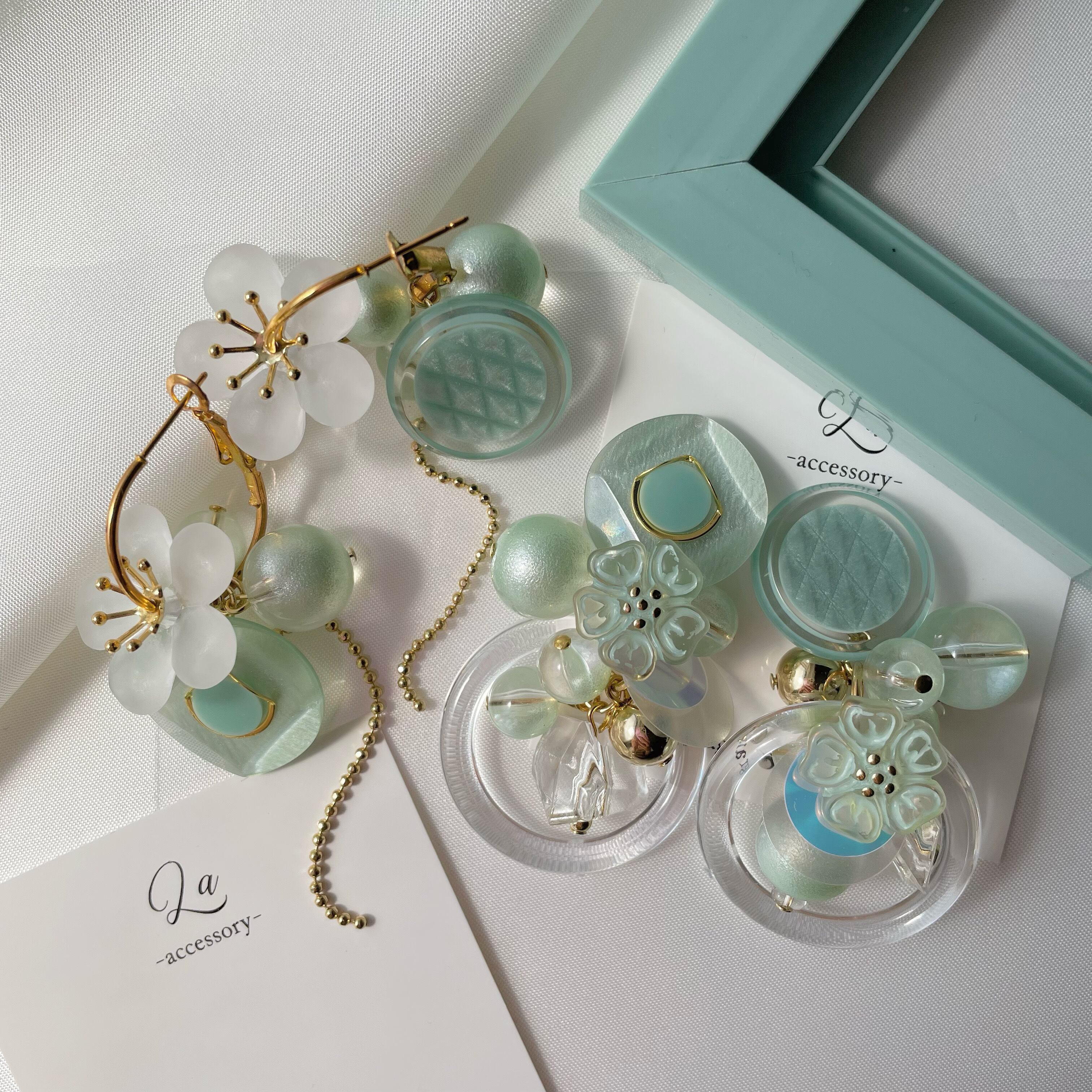 【1点物ピアスのみ*】 アシメエアロブルー×じゃらじゃらピアス