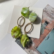 【1点物*】黄緑ガラスパーツ2点使いピアス