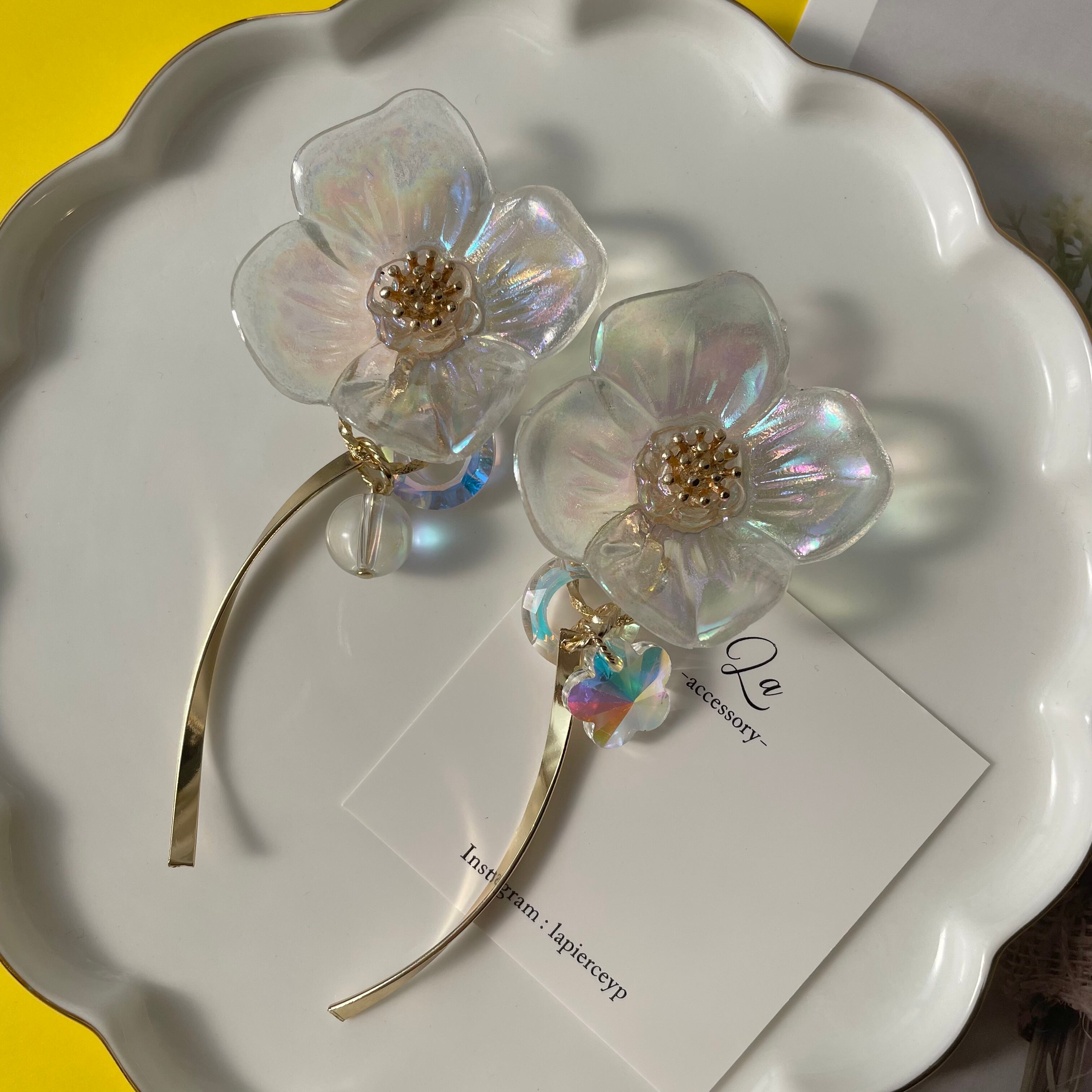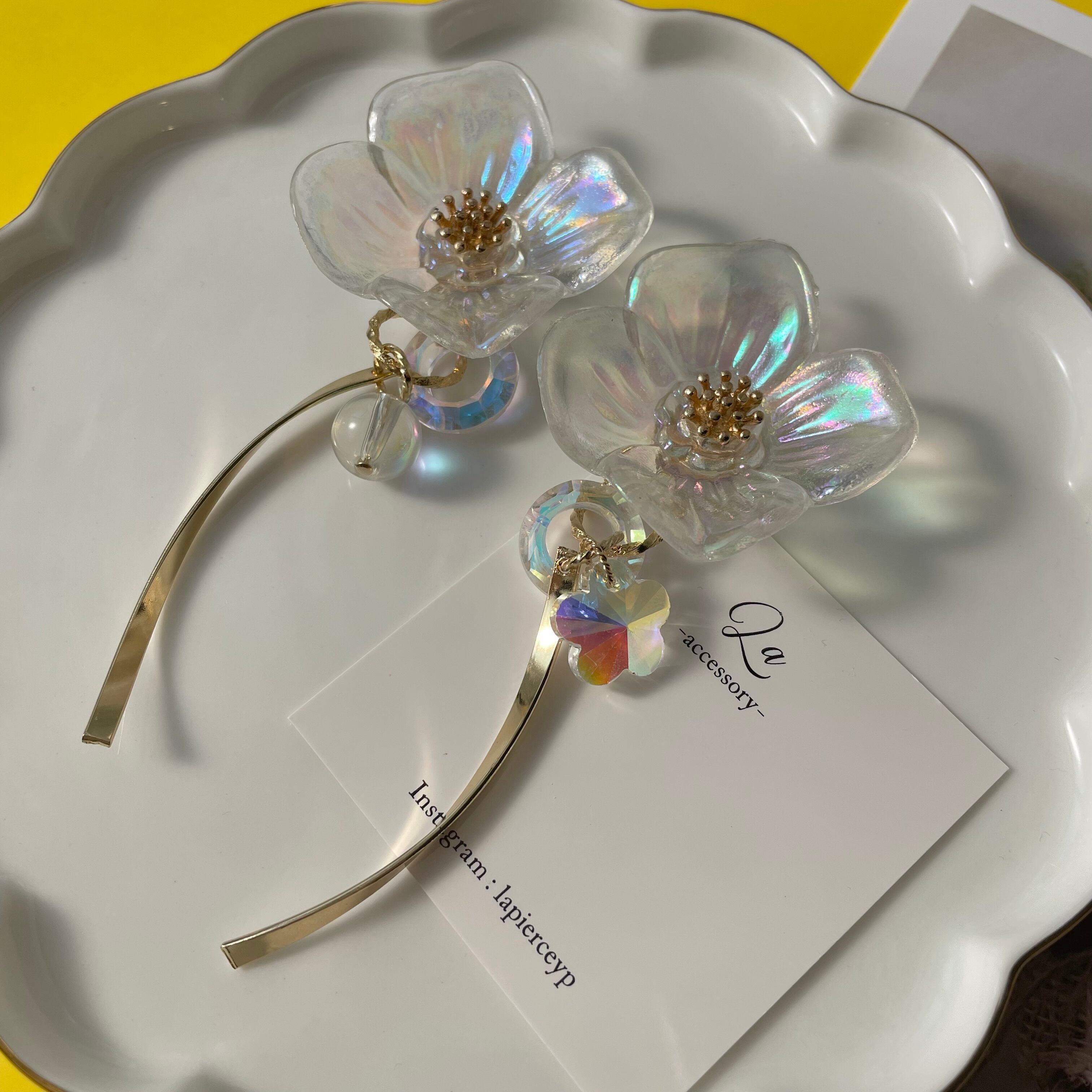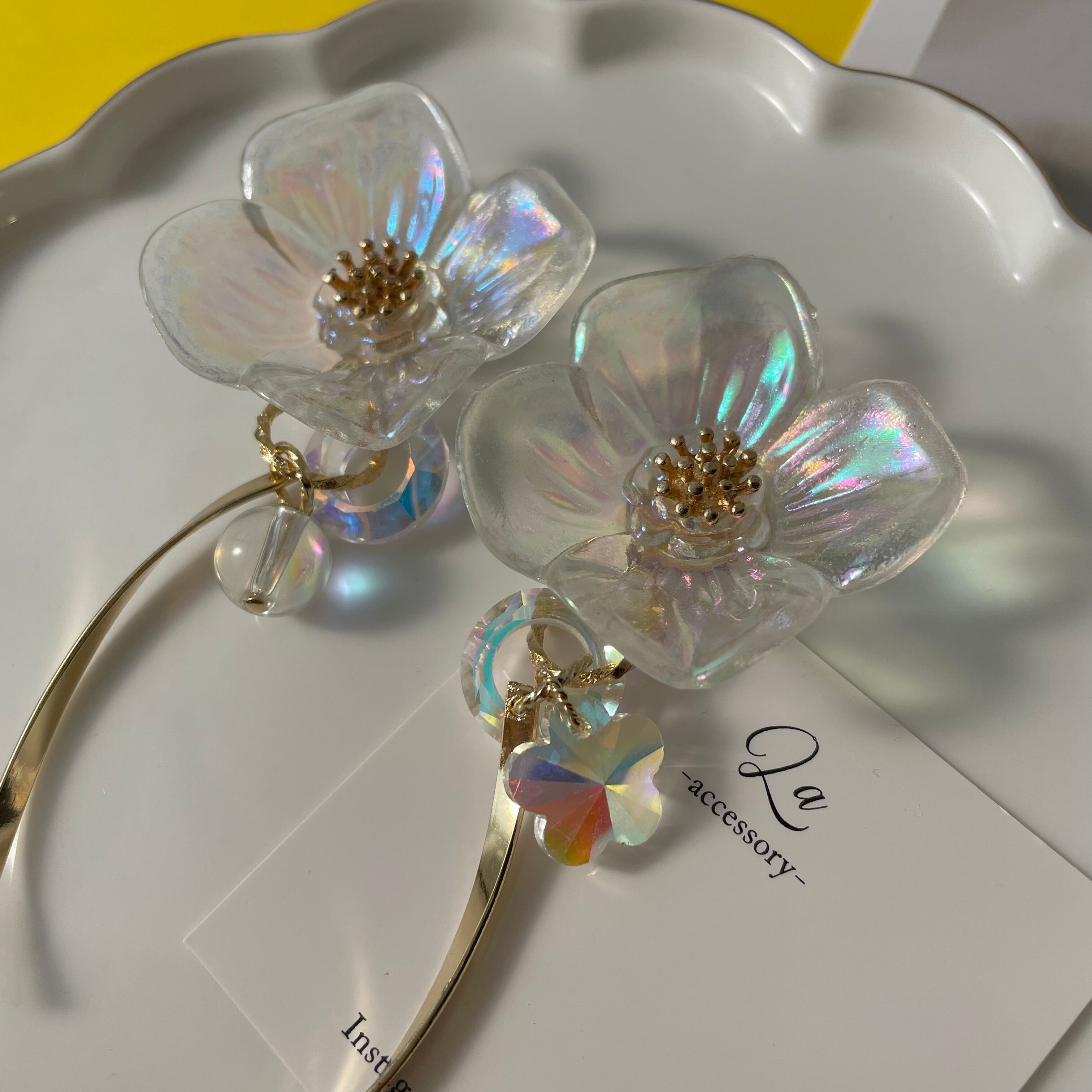 【1点物*】オーロラbigフラワー×アシメひねりピアス