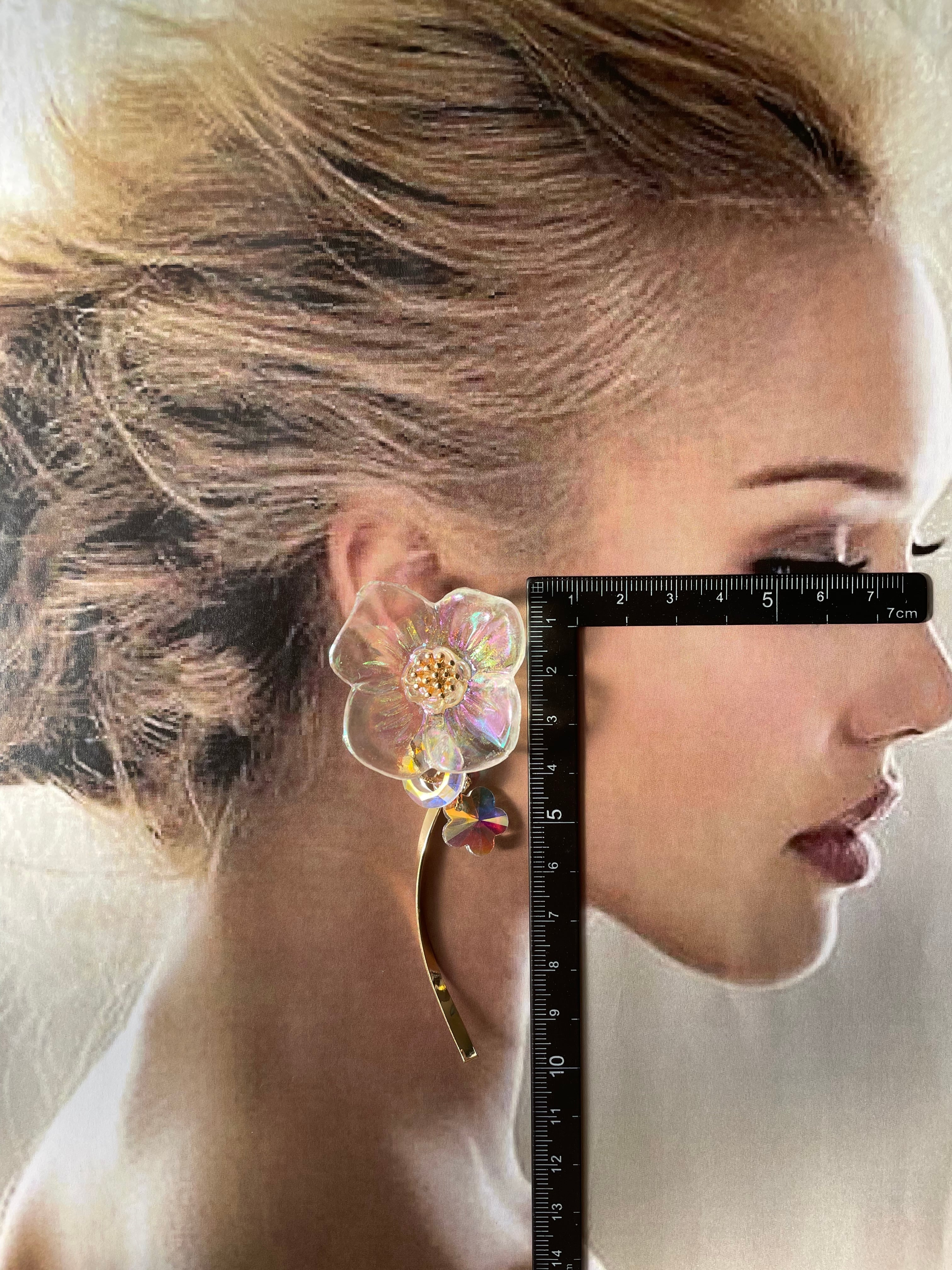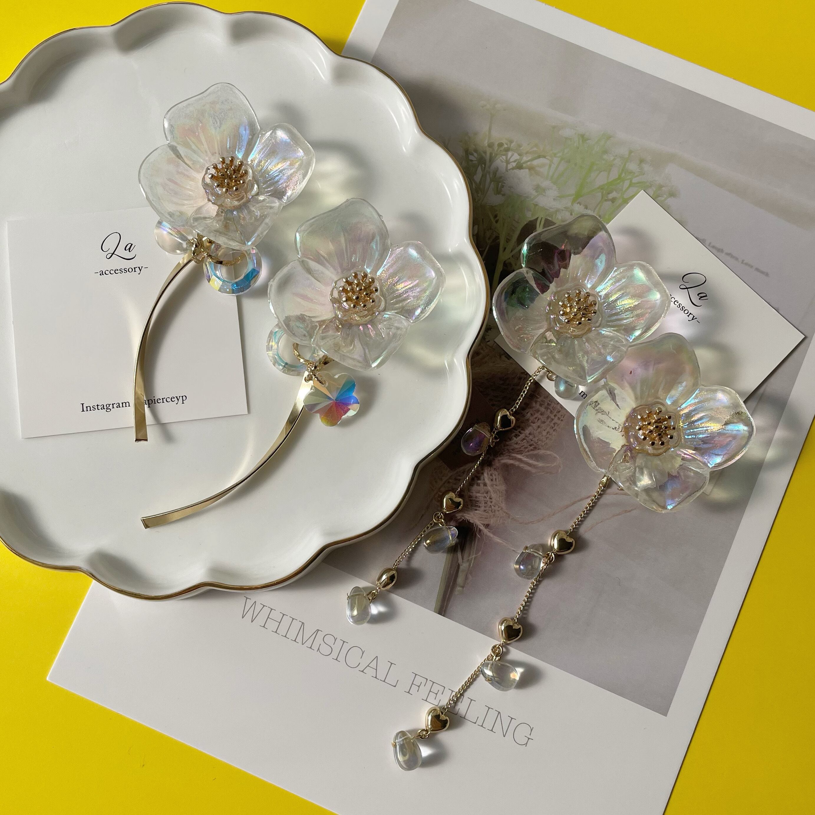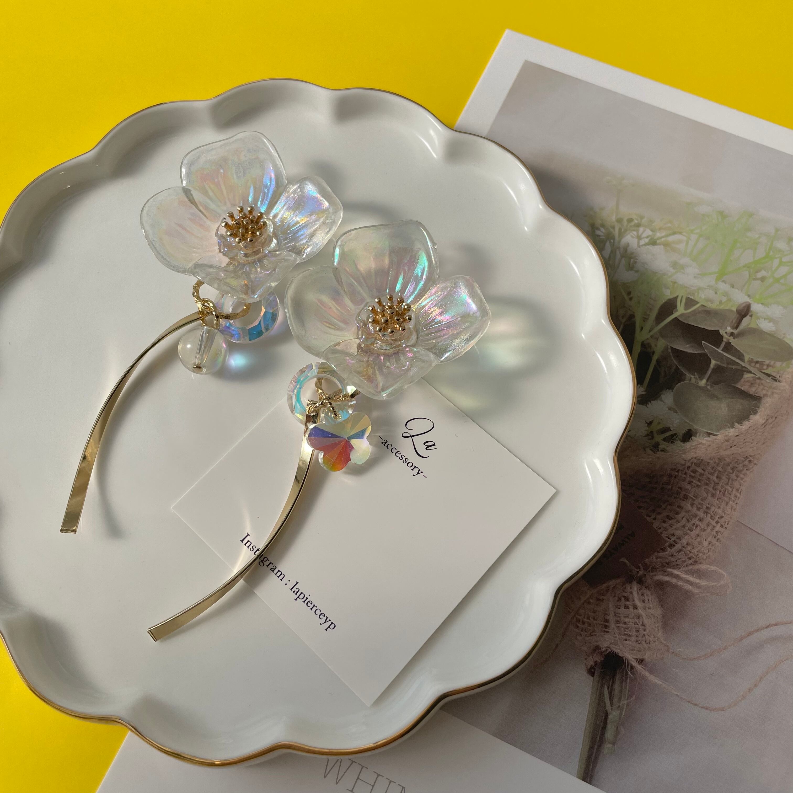 【1点物*】オーロラbigフラワー×アシメひねりピアス