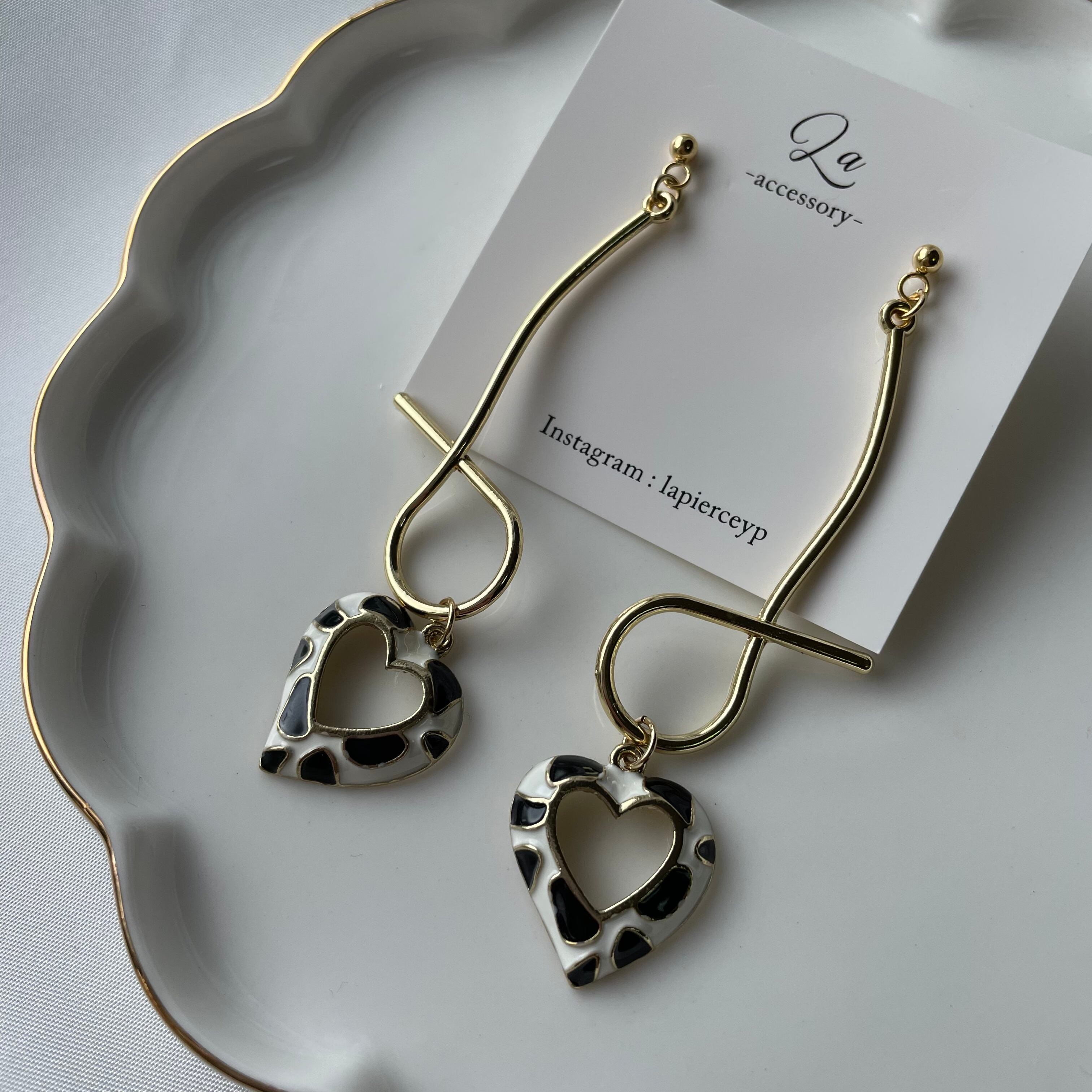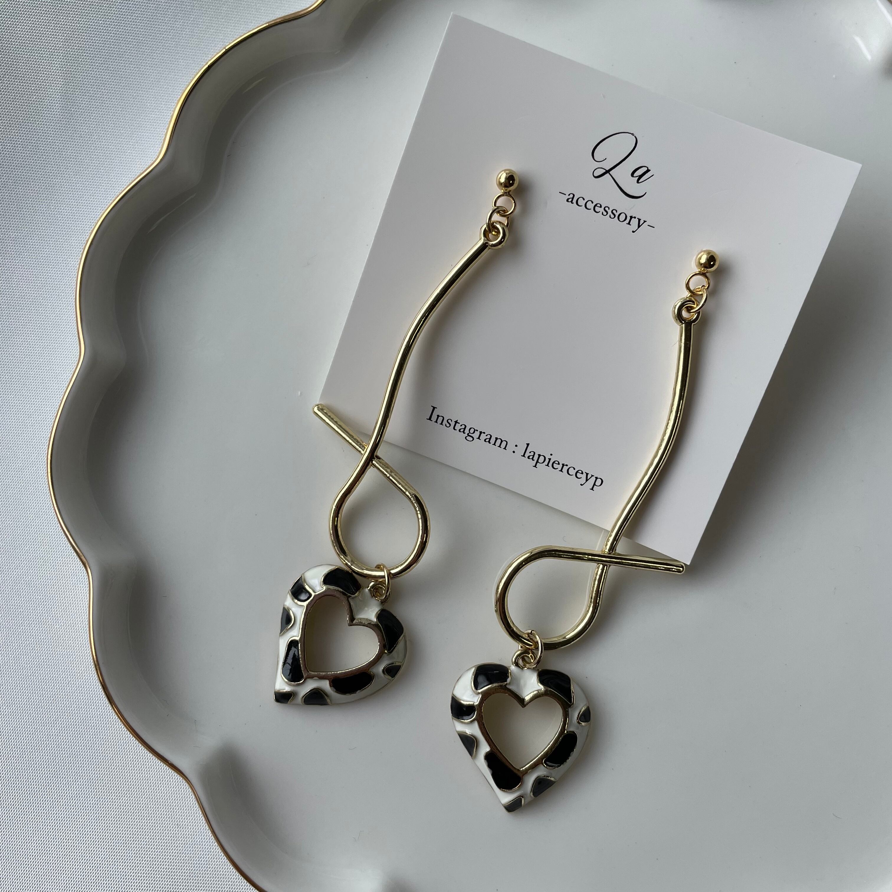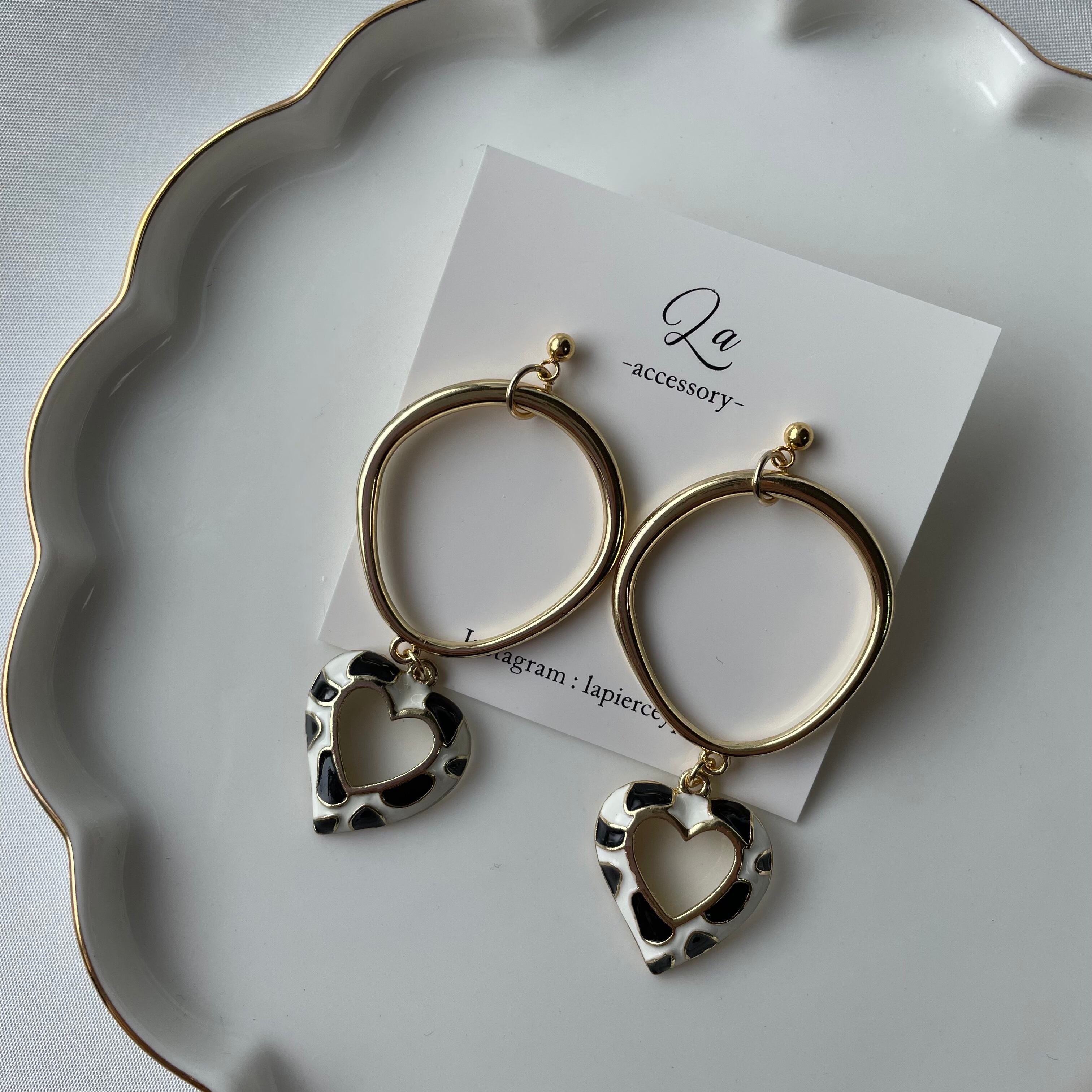 ダルメシアン中抜きハートピアス
