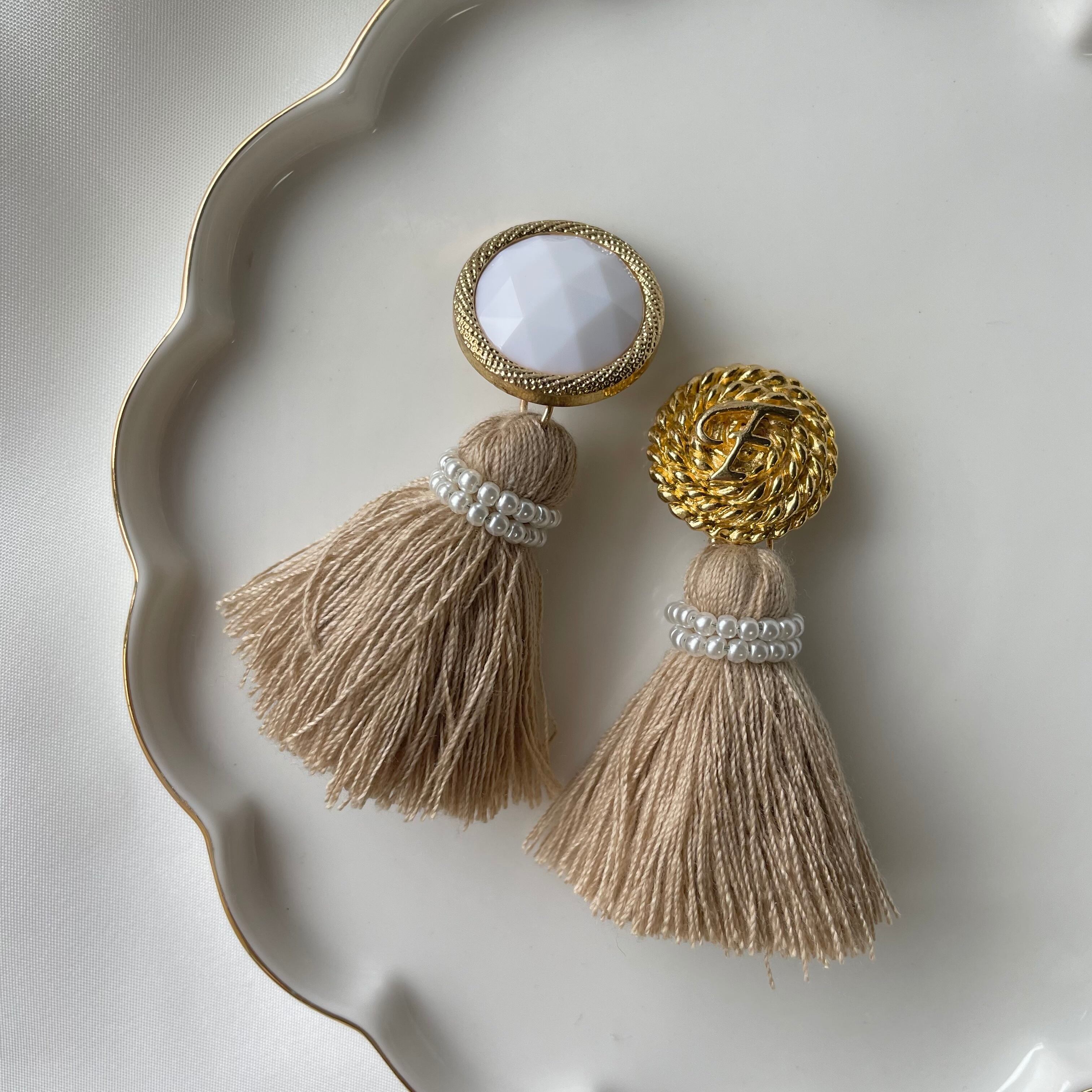 【1点物ピアスのみ*】アシメボタン×ふわっとタッセルピアスA