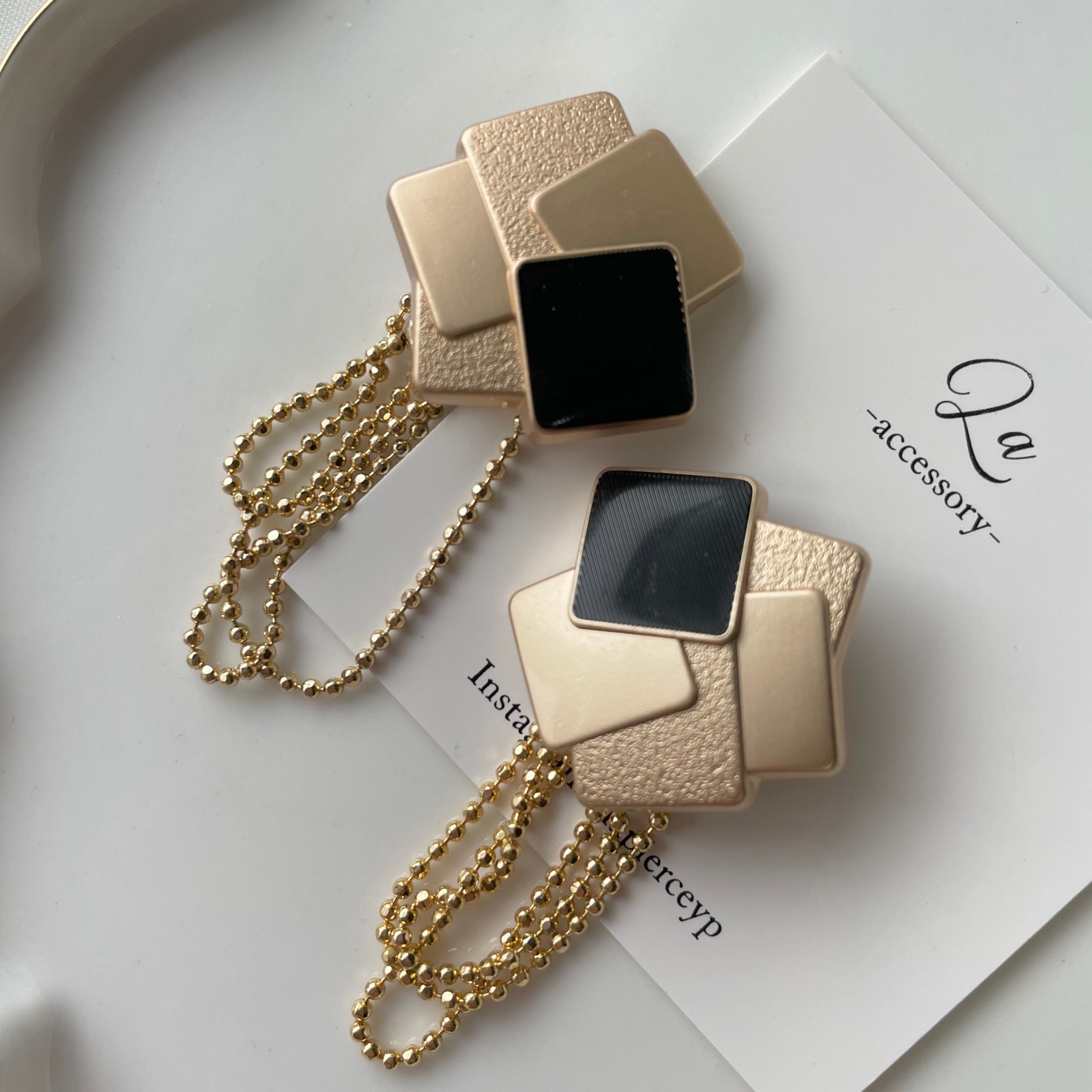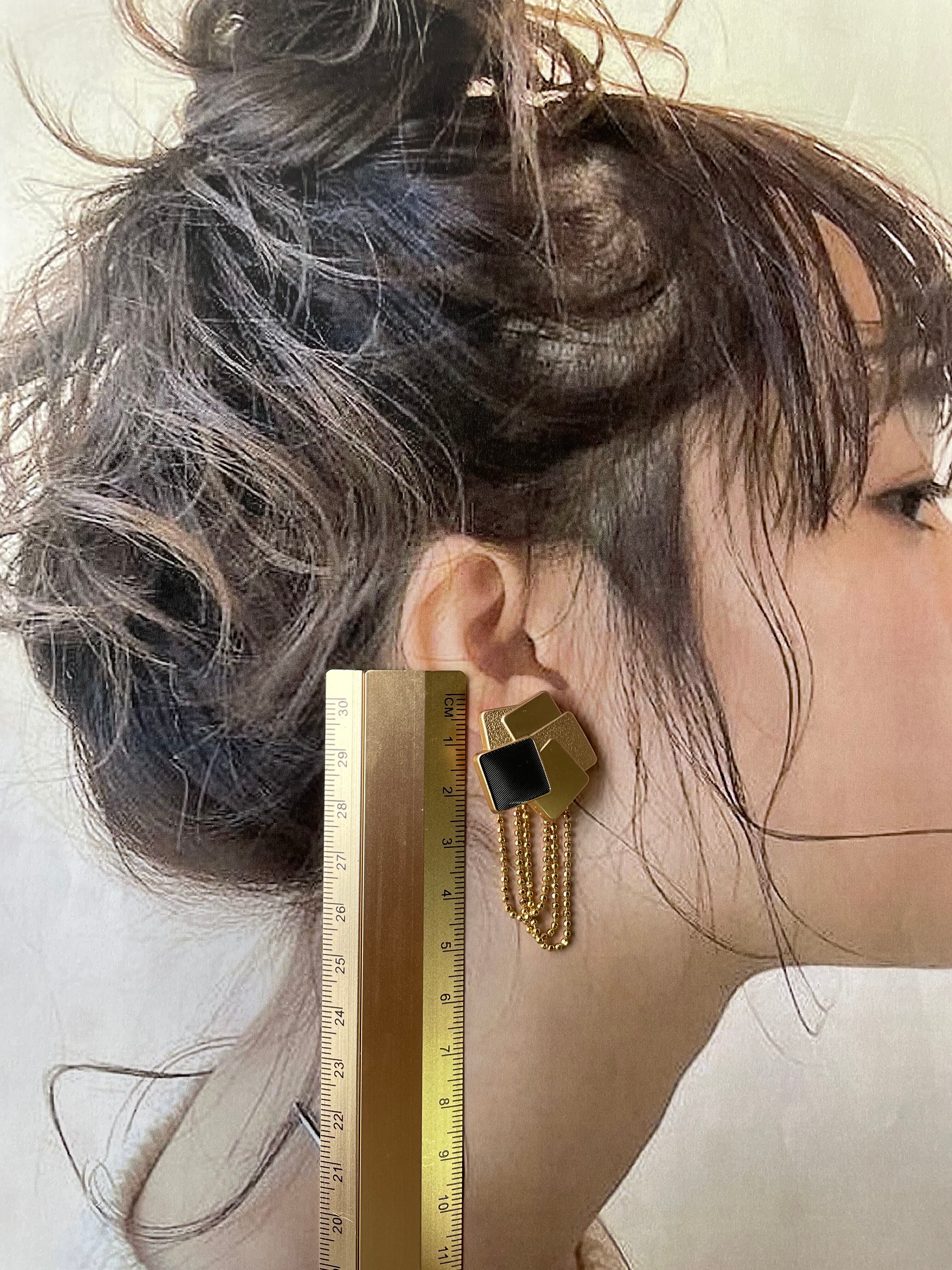 【1点物*】アンティークボタン×ダイスカットチェーンピアス