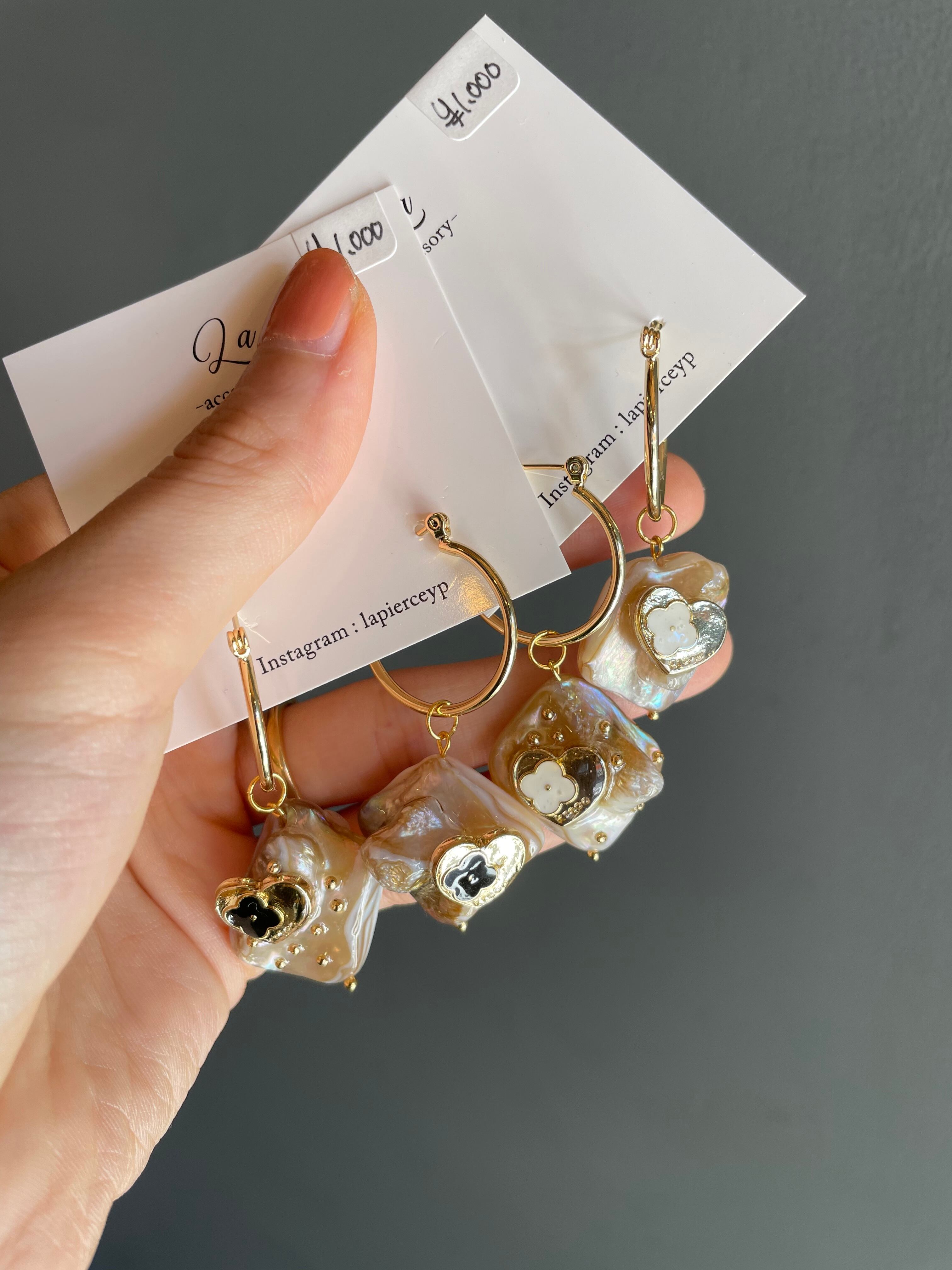 ヴィンテージハートボタン×シェルピアス サージカルステンレスフープ