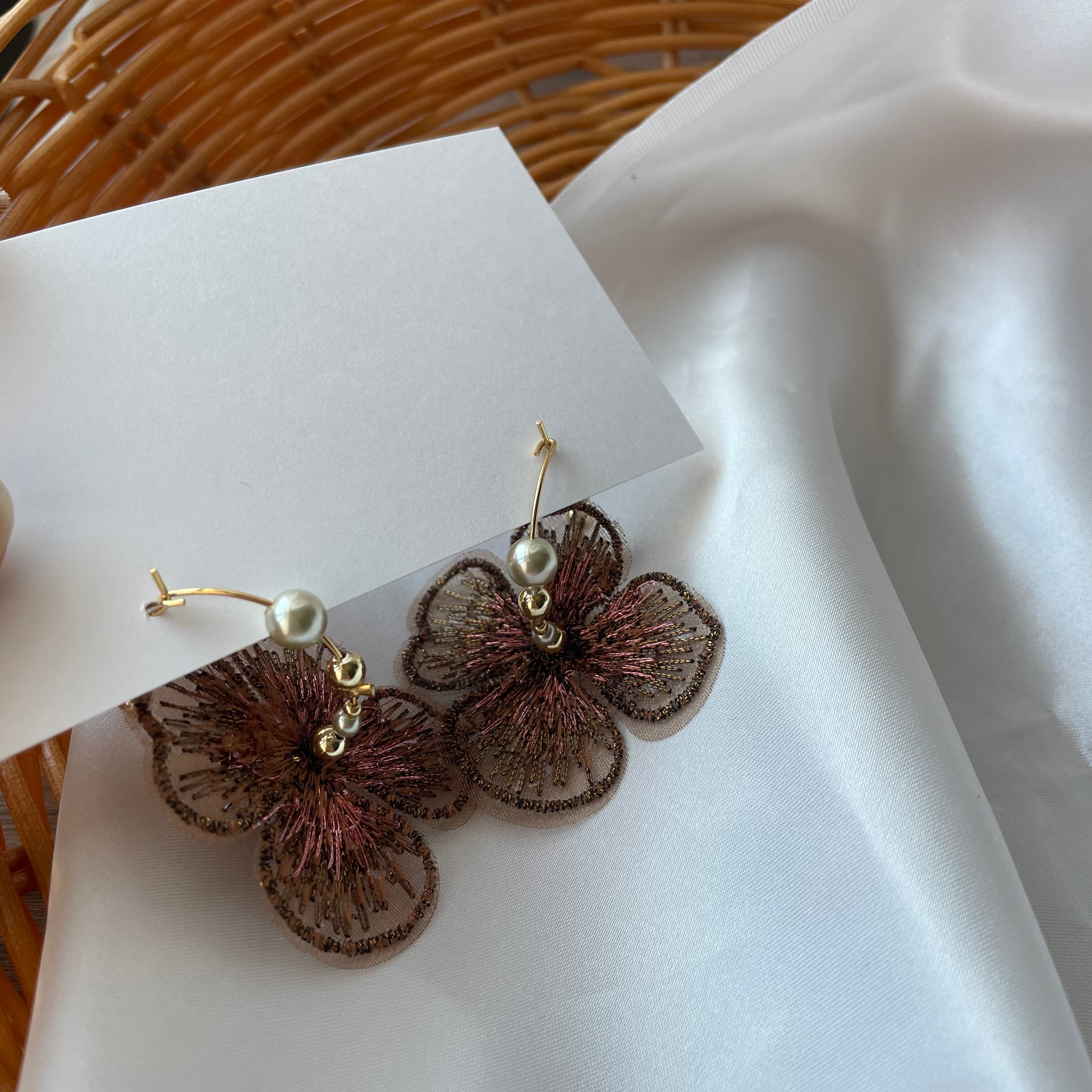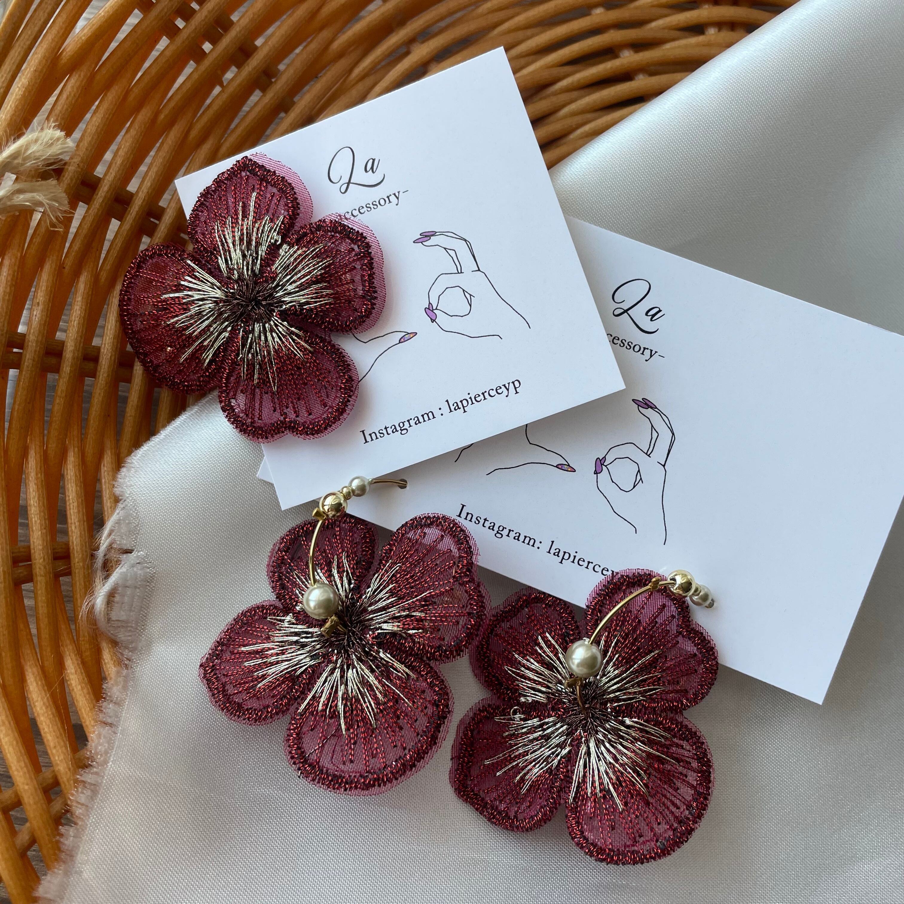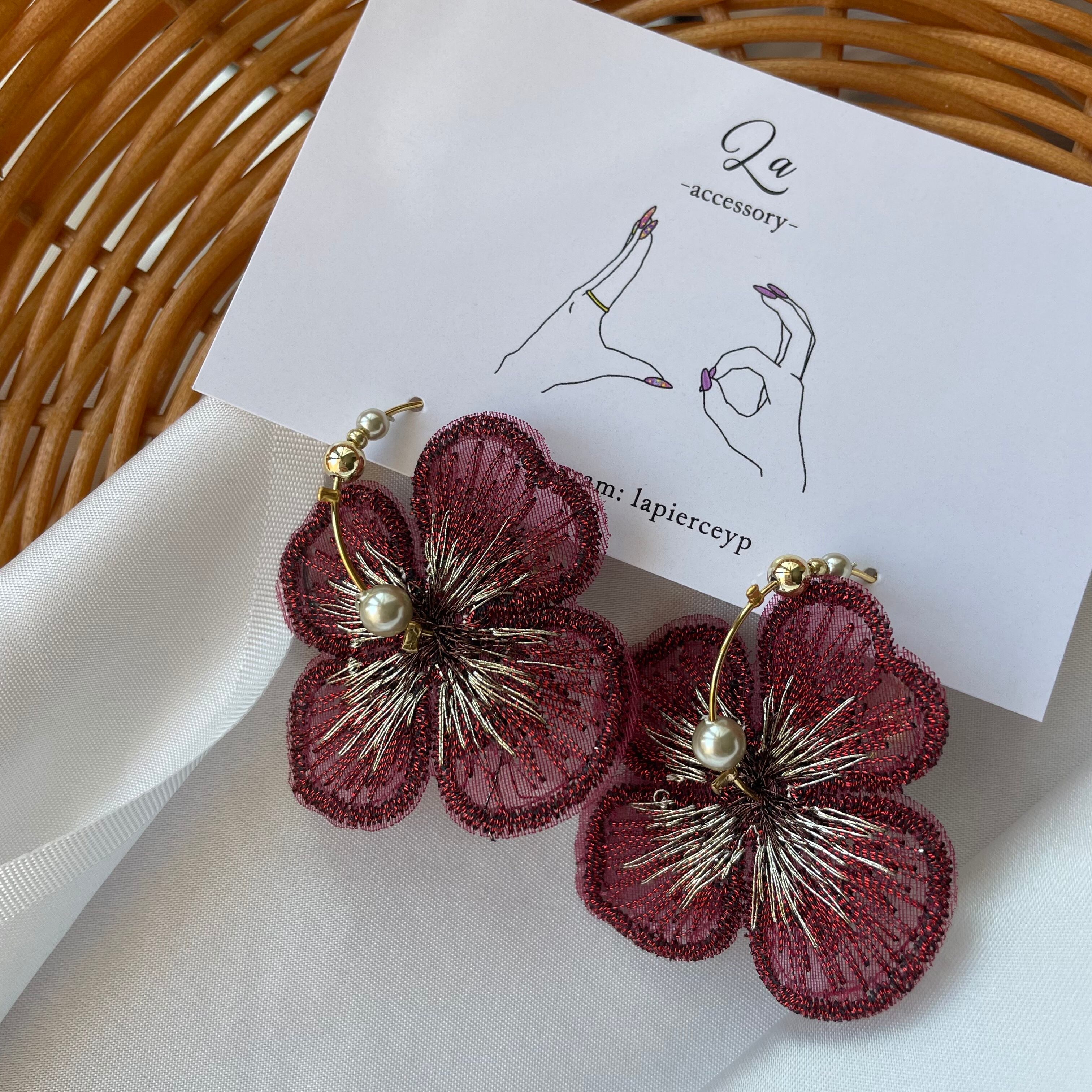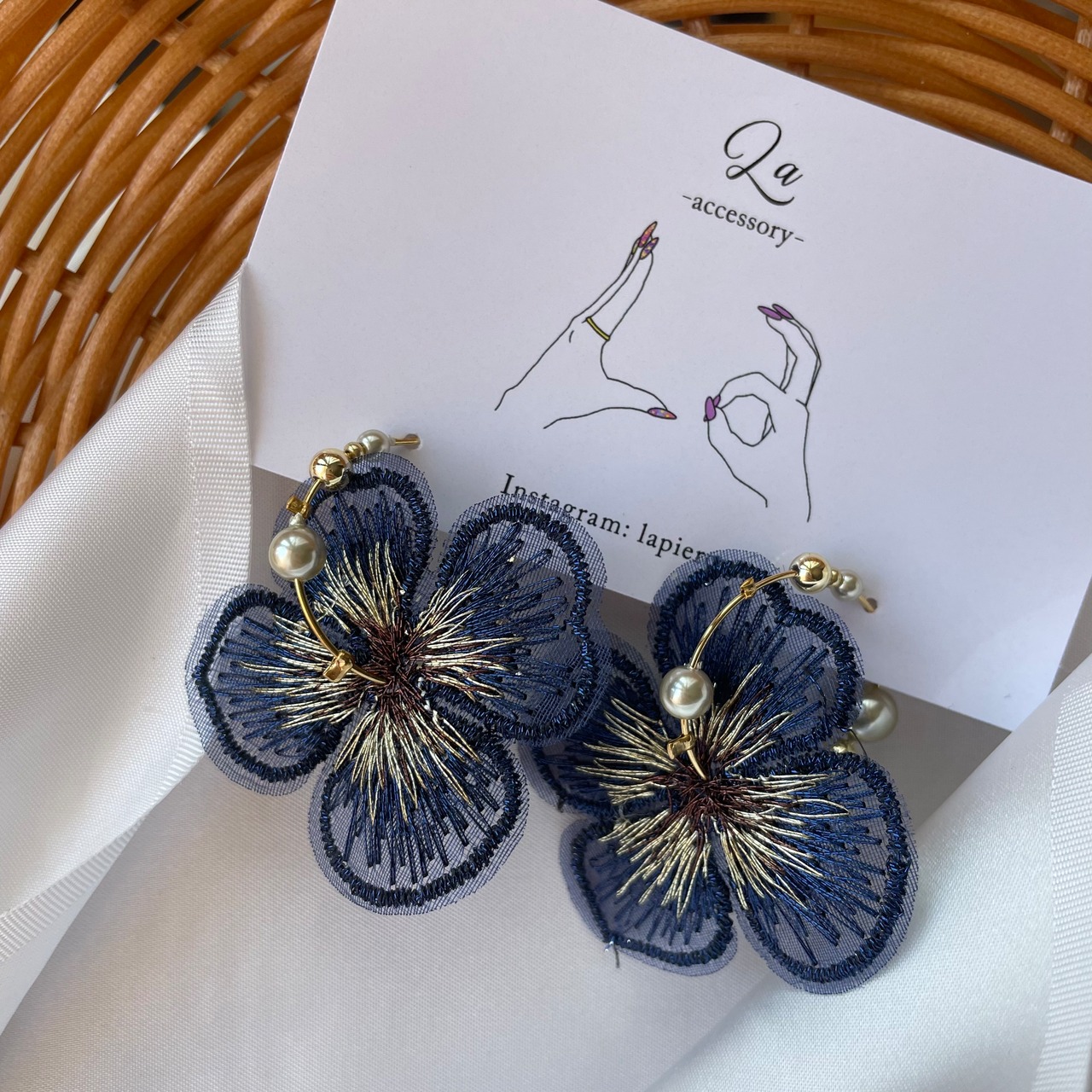 【ピアスのみ*】 サージカルフープ×オーガンジーフラワーピアス