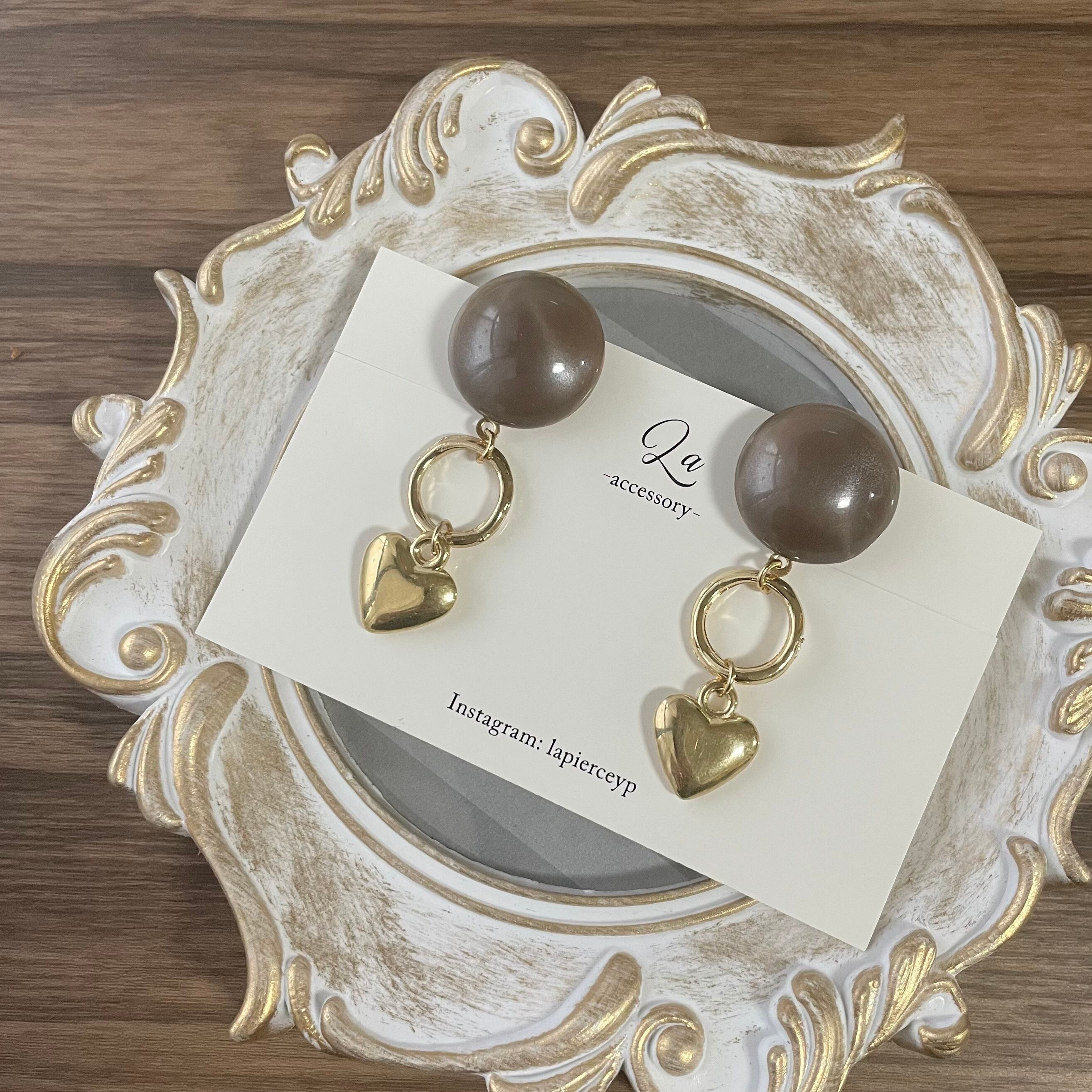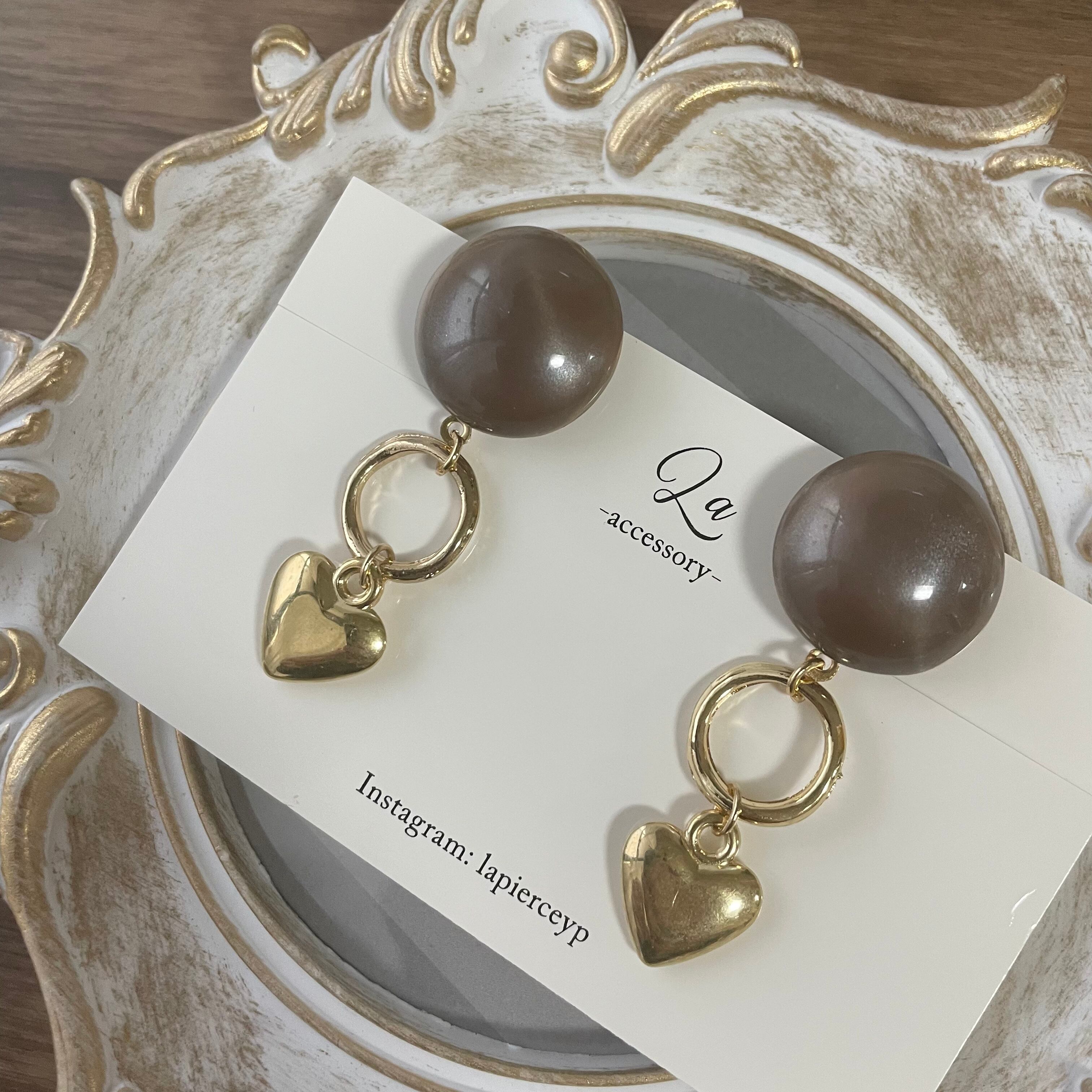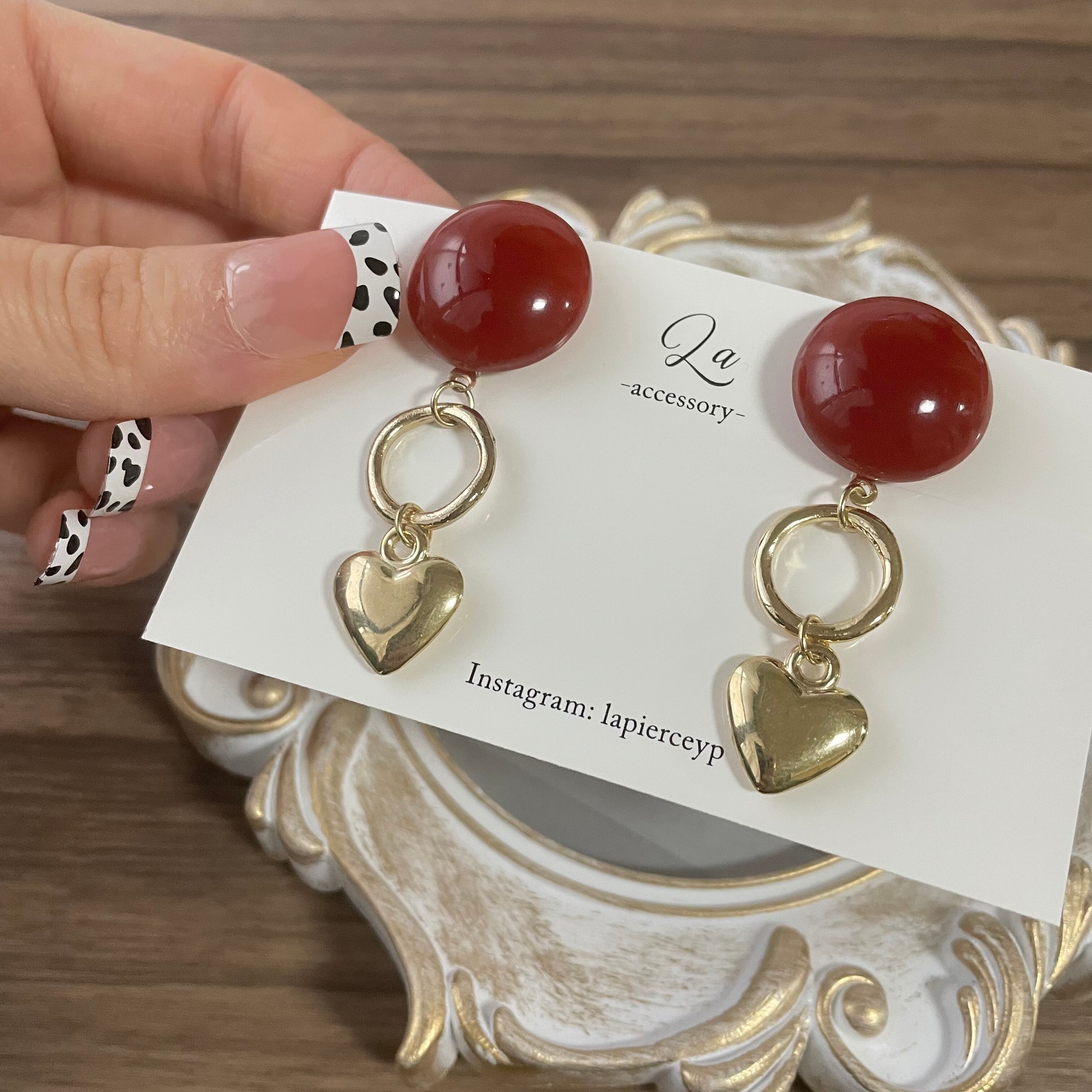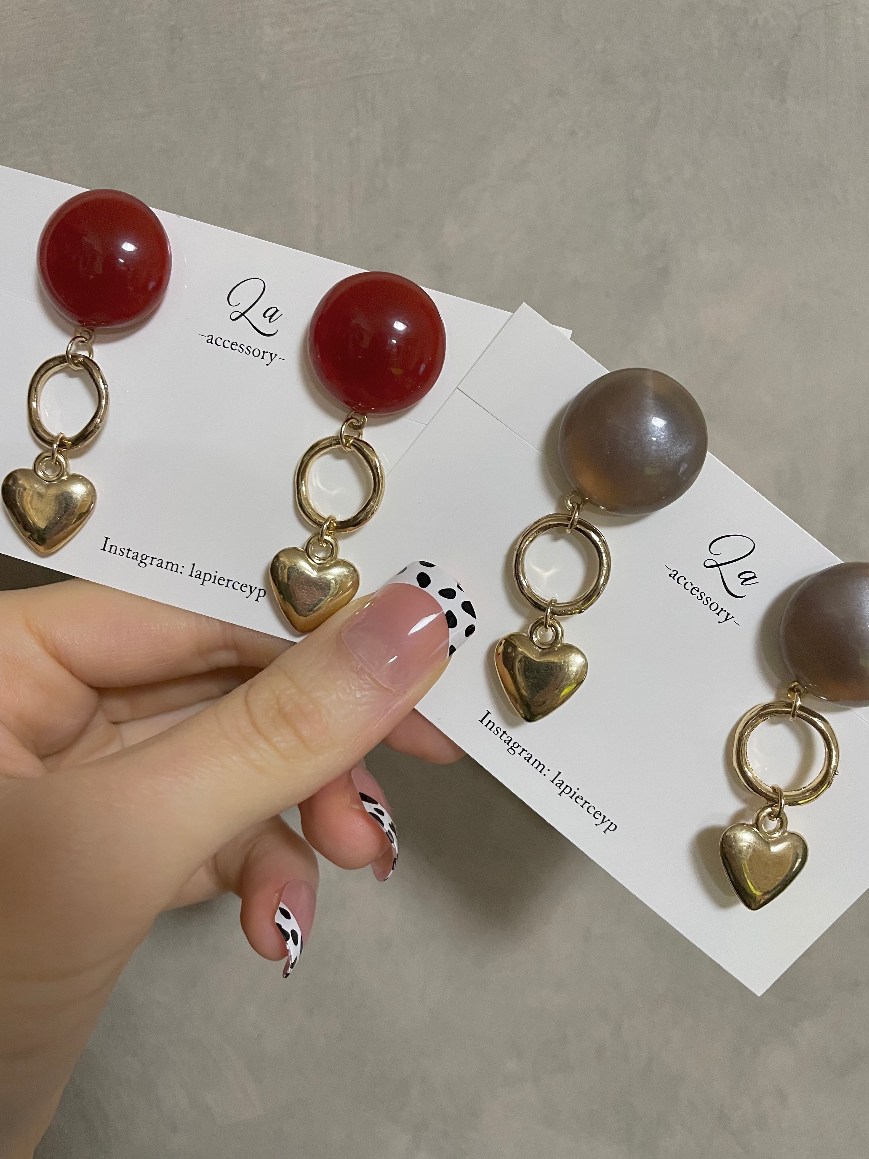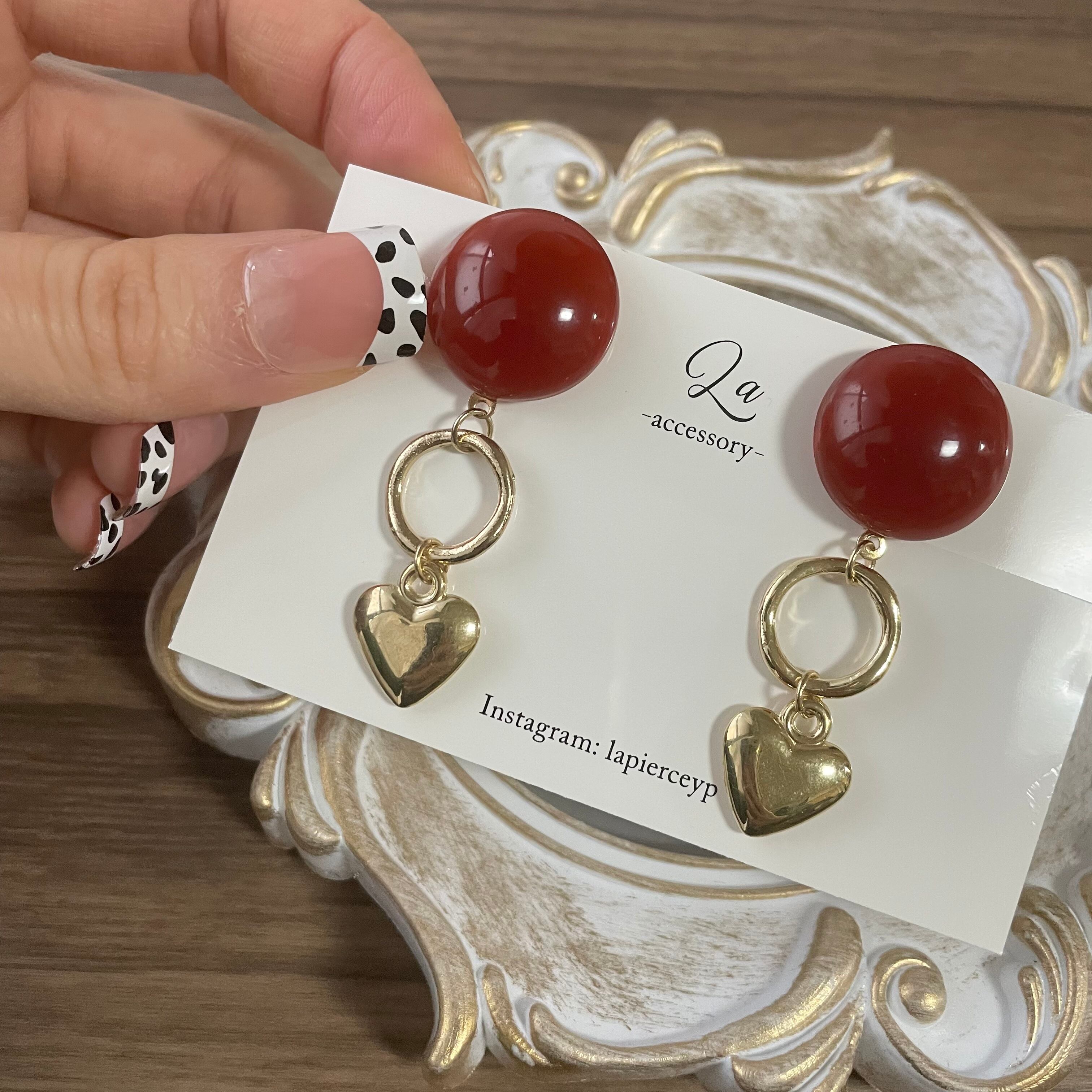 【イヤリングのみ*】 カラーカボション×ぷっくりハート