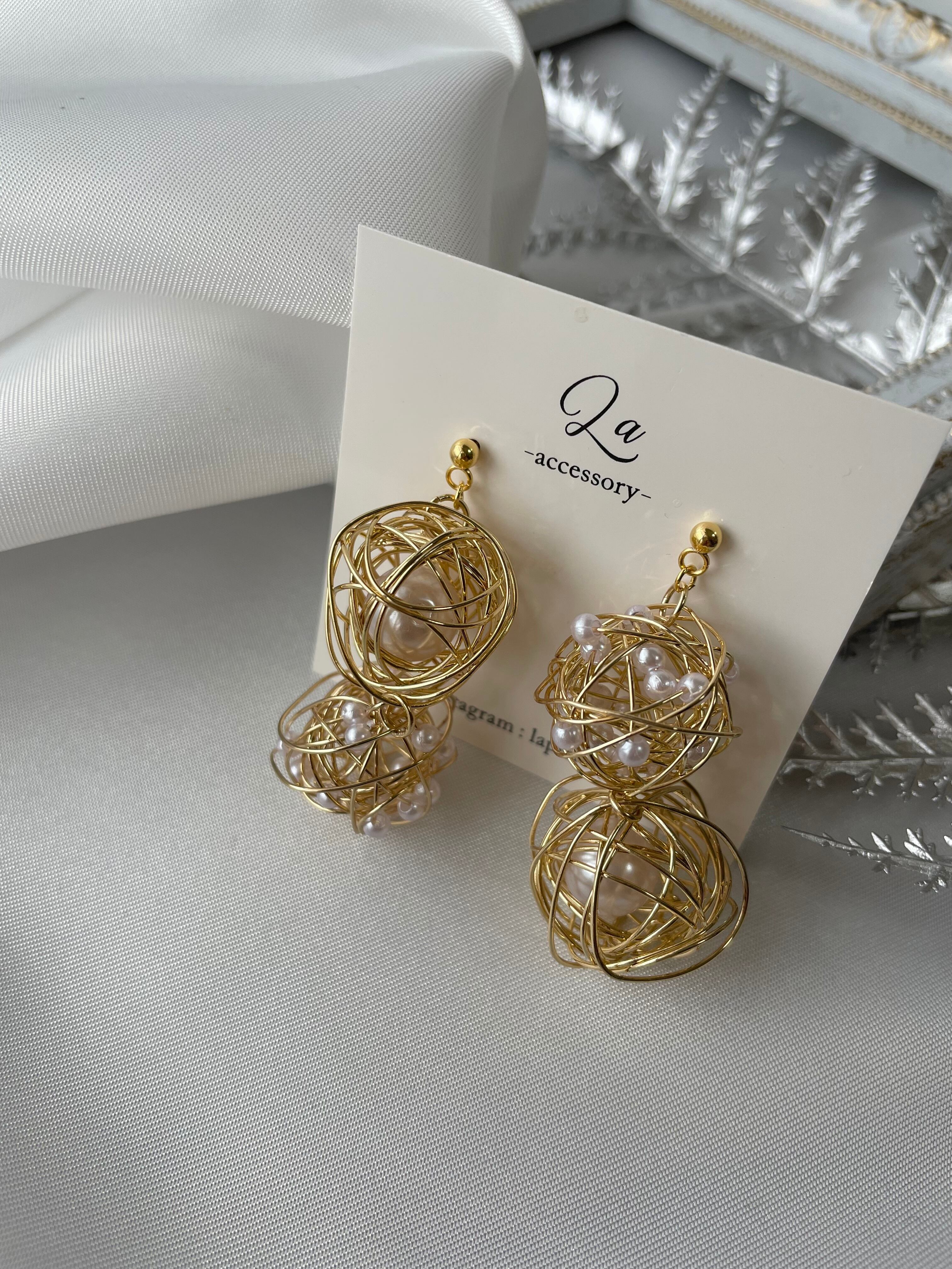 2種類のワイヤーボールをアシンメトリーに配置♡
