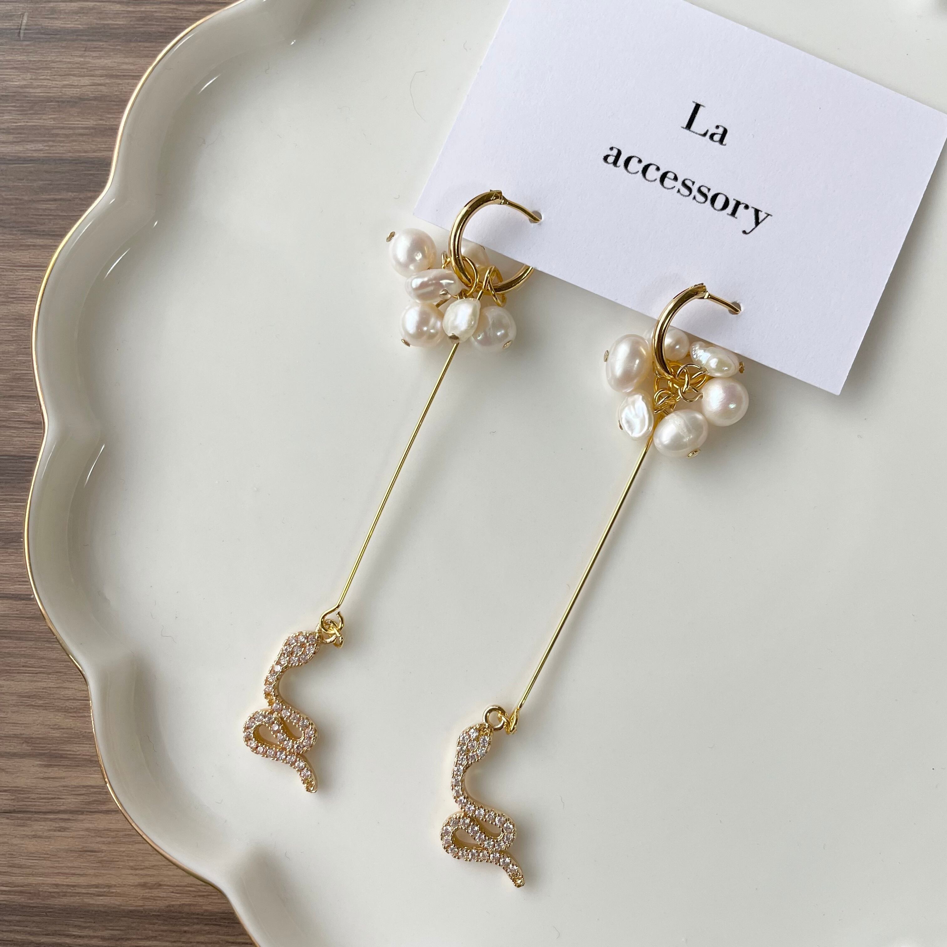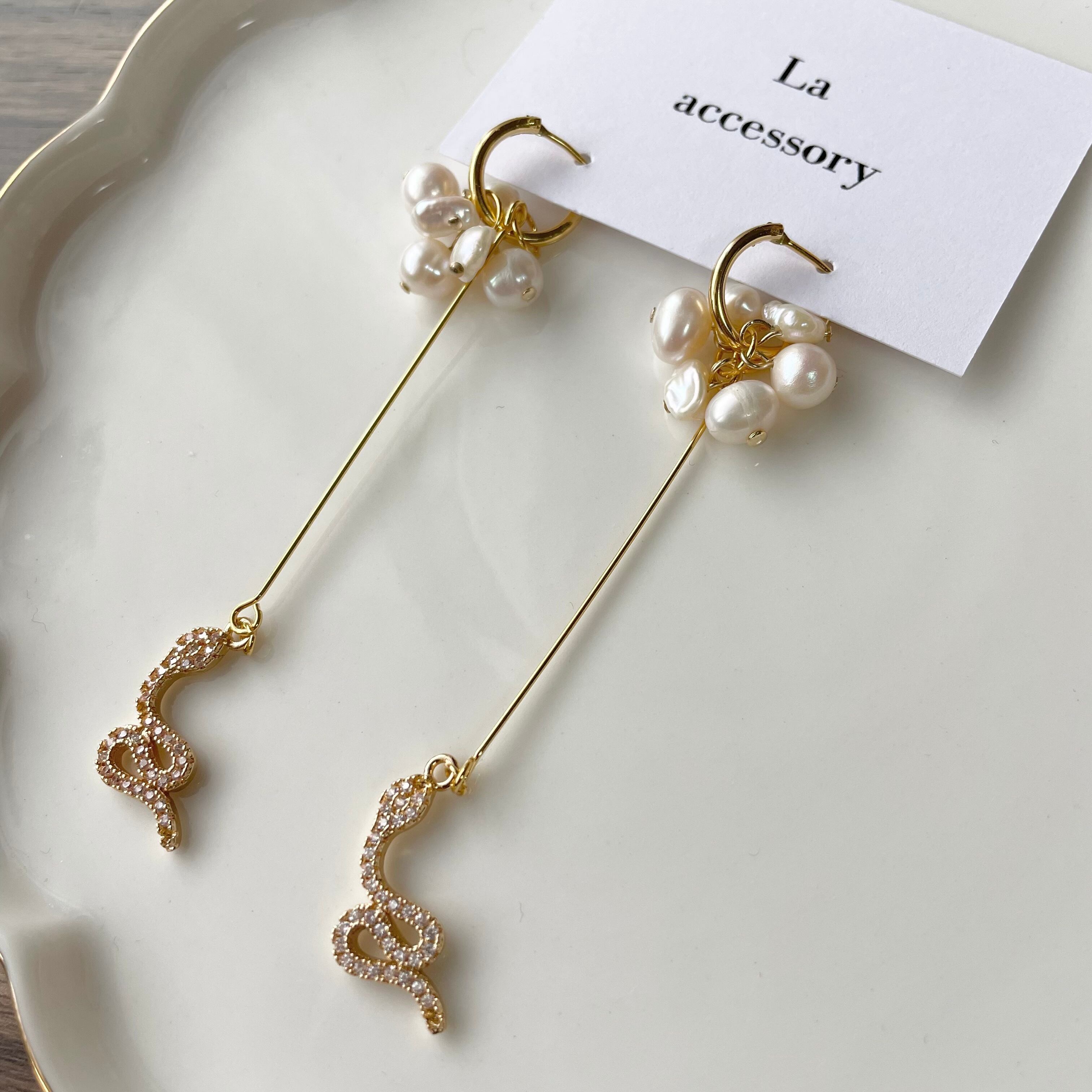 【ピアスのみ*】【取り外し可*】4wayジルコニアチャームピアス