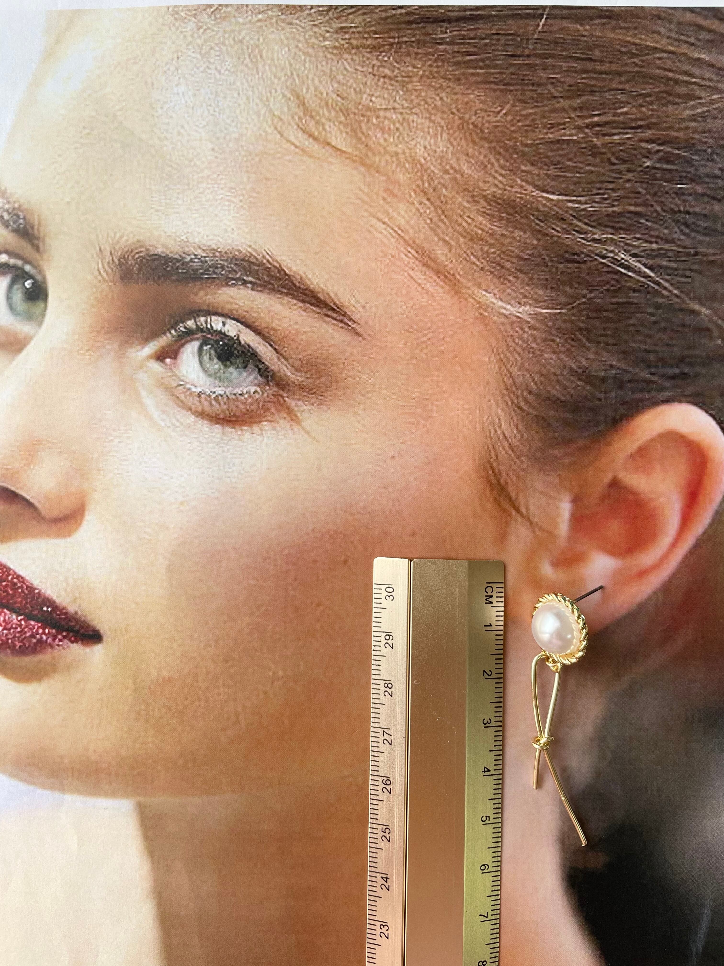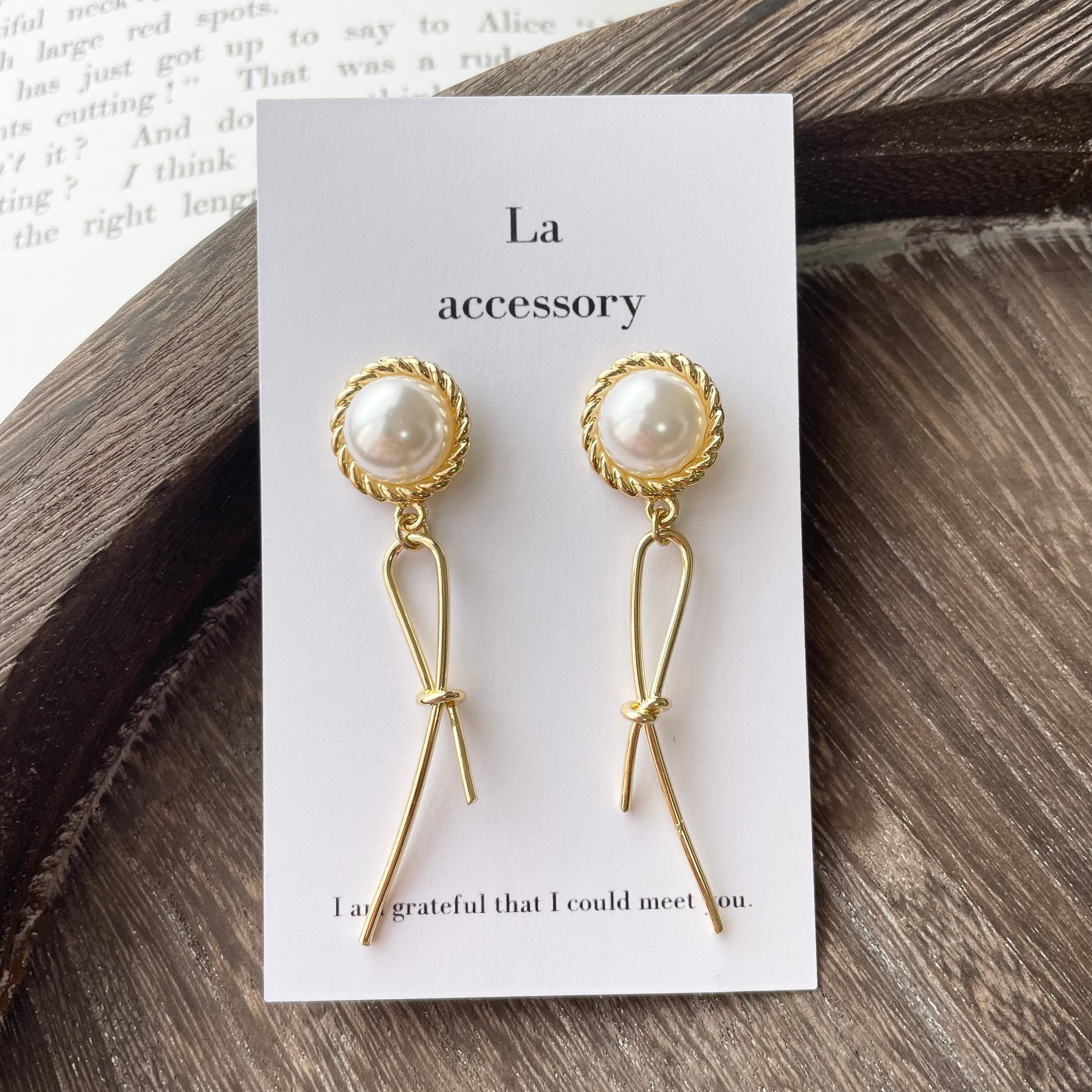 パールカボション×結び目ピアス