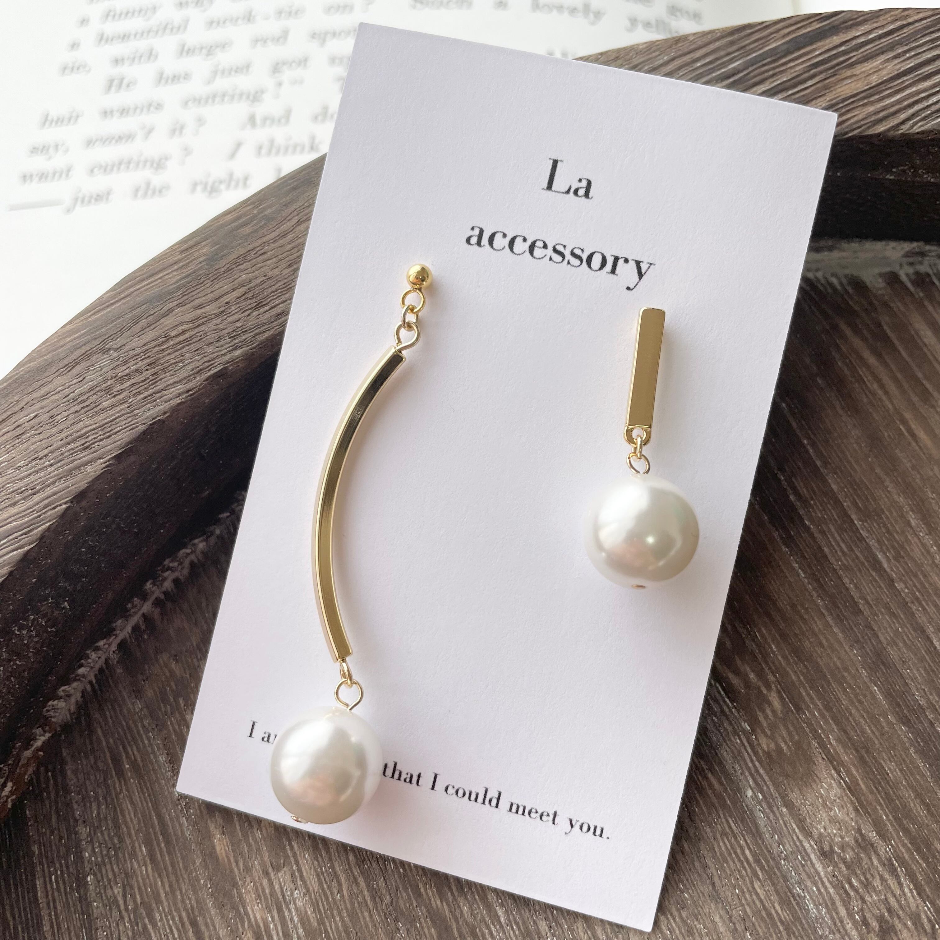 アシンメトリー中玉パールピアス