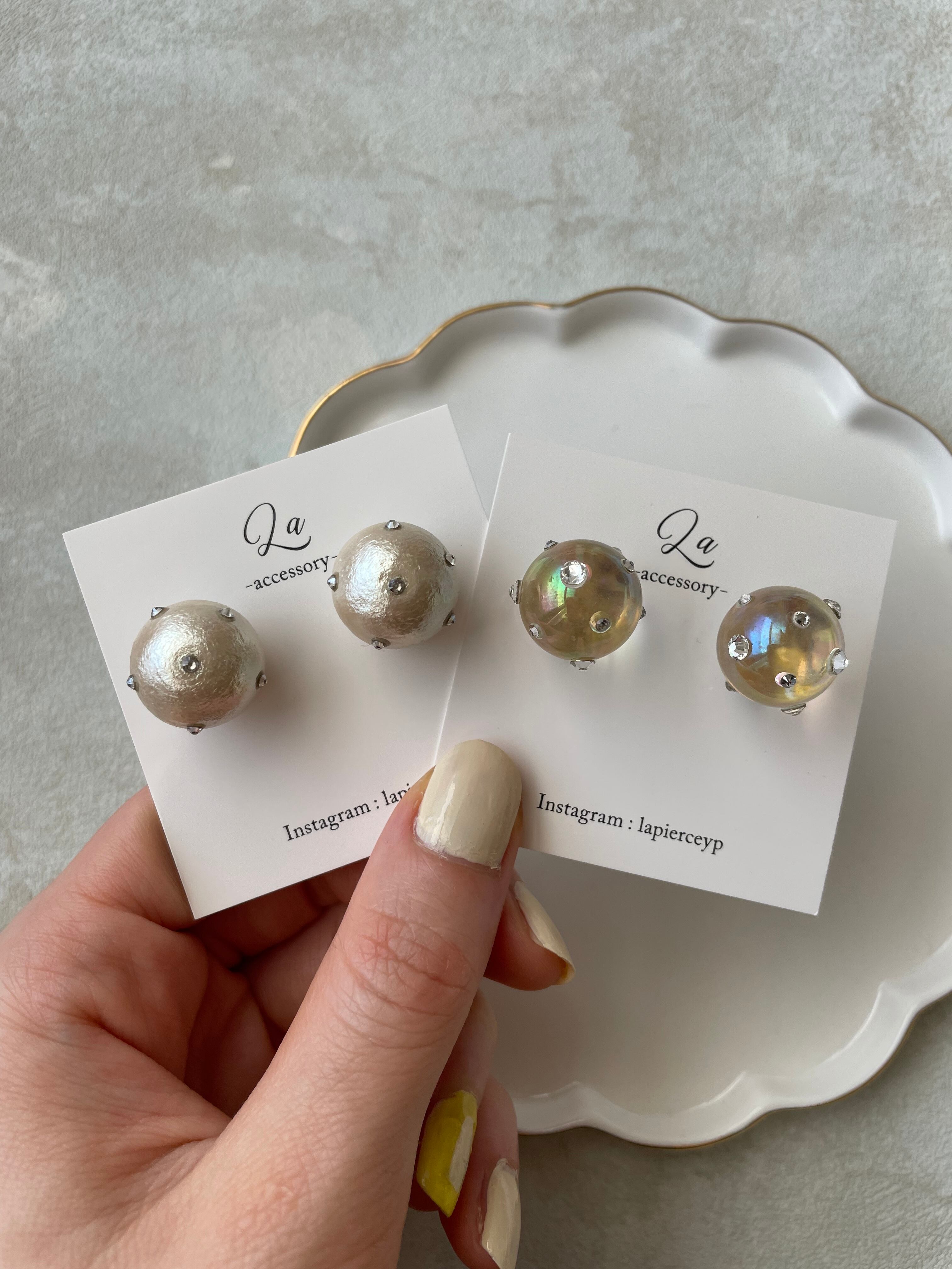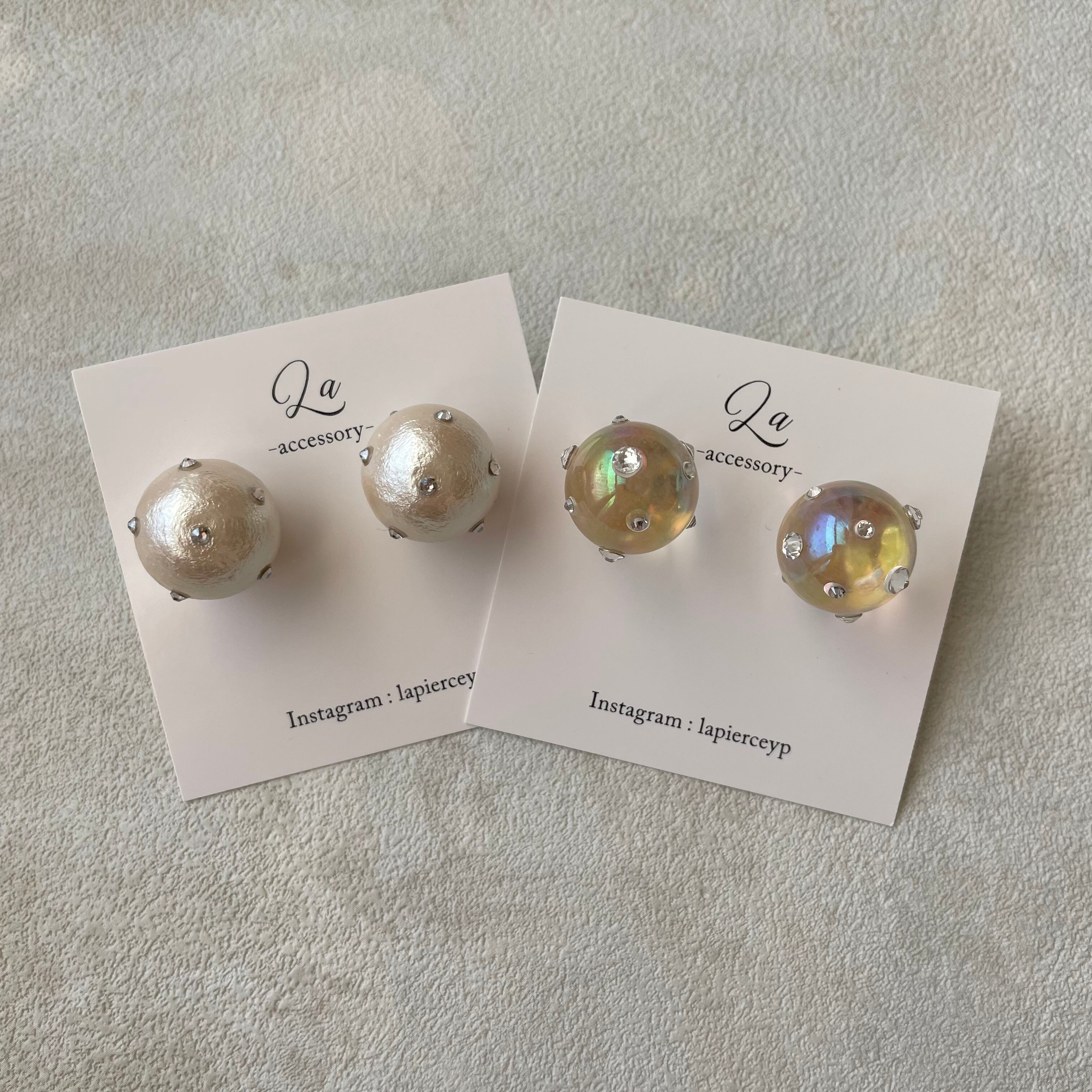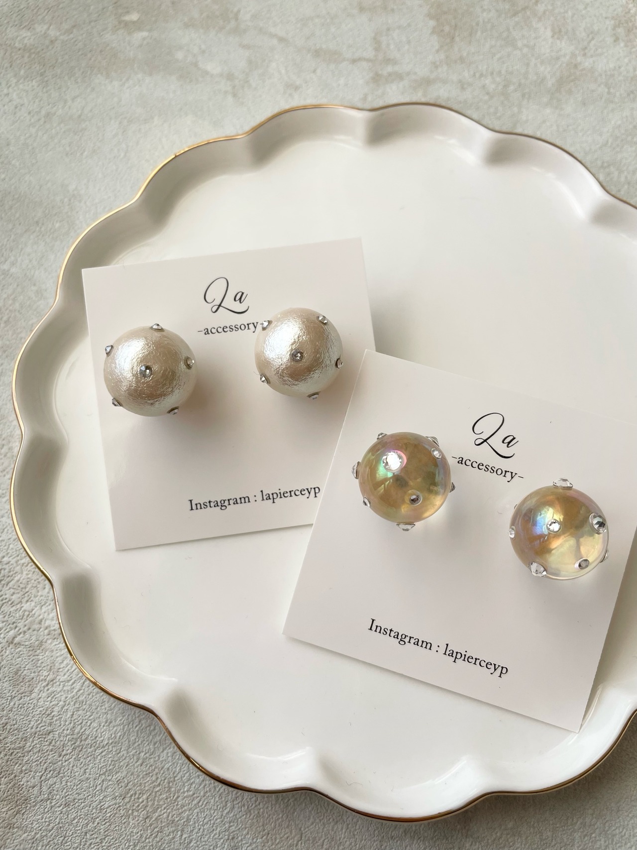 360度どこから見ても可愛い、スワロフスキーを全面にあしらったピアスです( ⁎ᵕᴗᵕ⁎ )