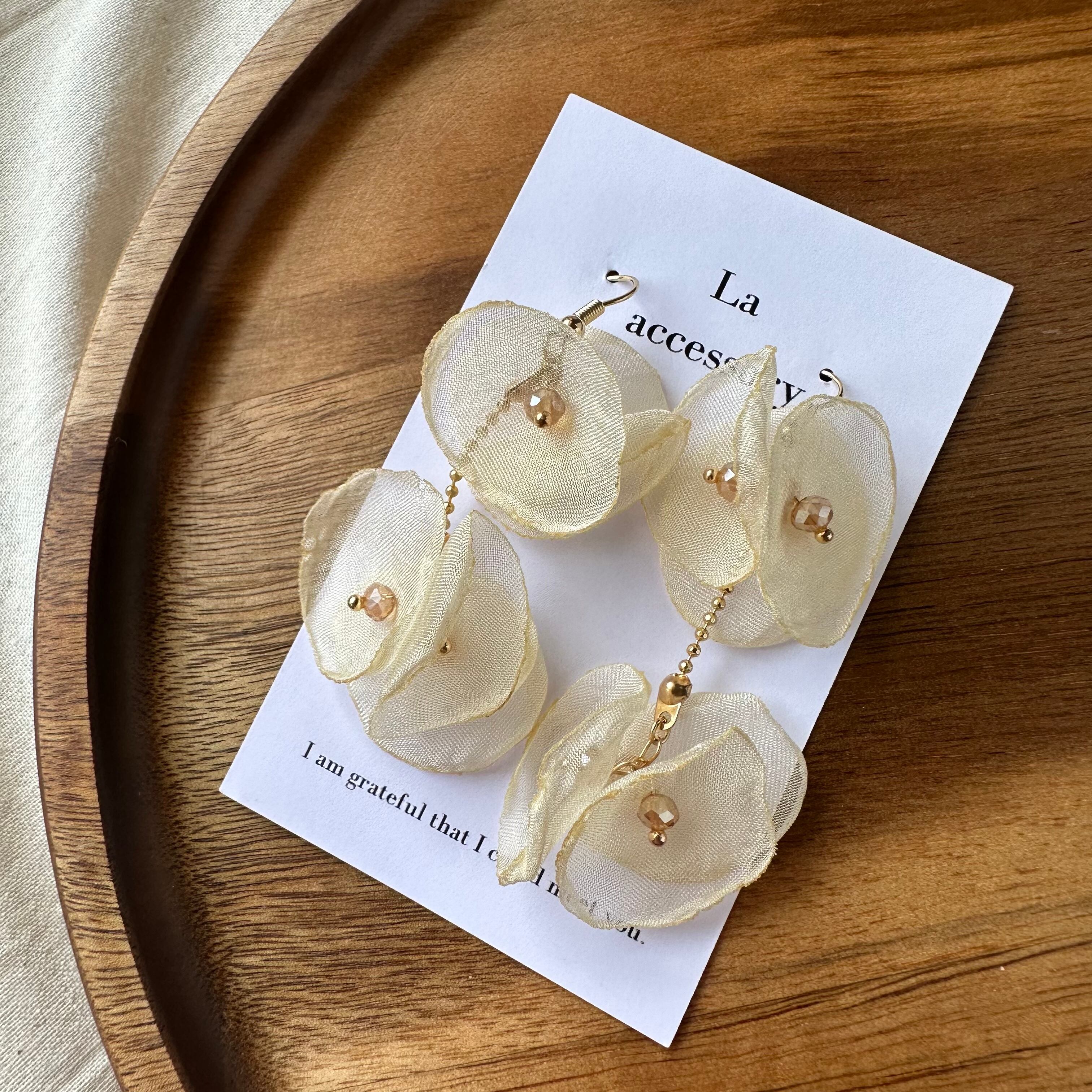 ふわふわのとっても軽いシフォンに上品なチェーンを合わせました♡