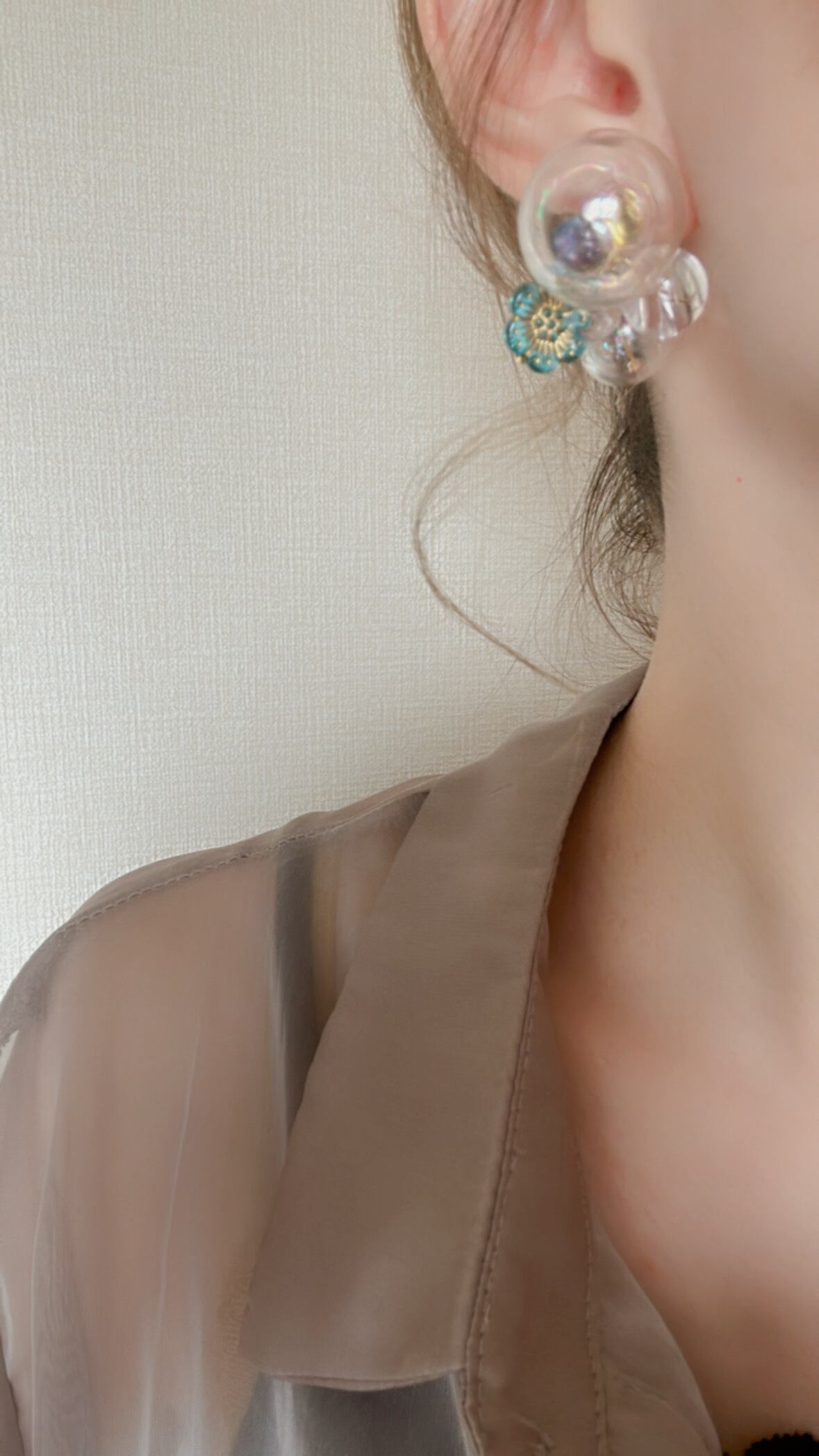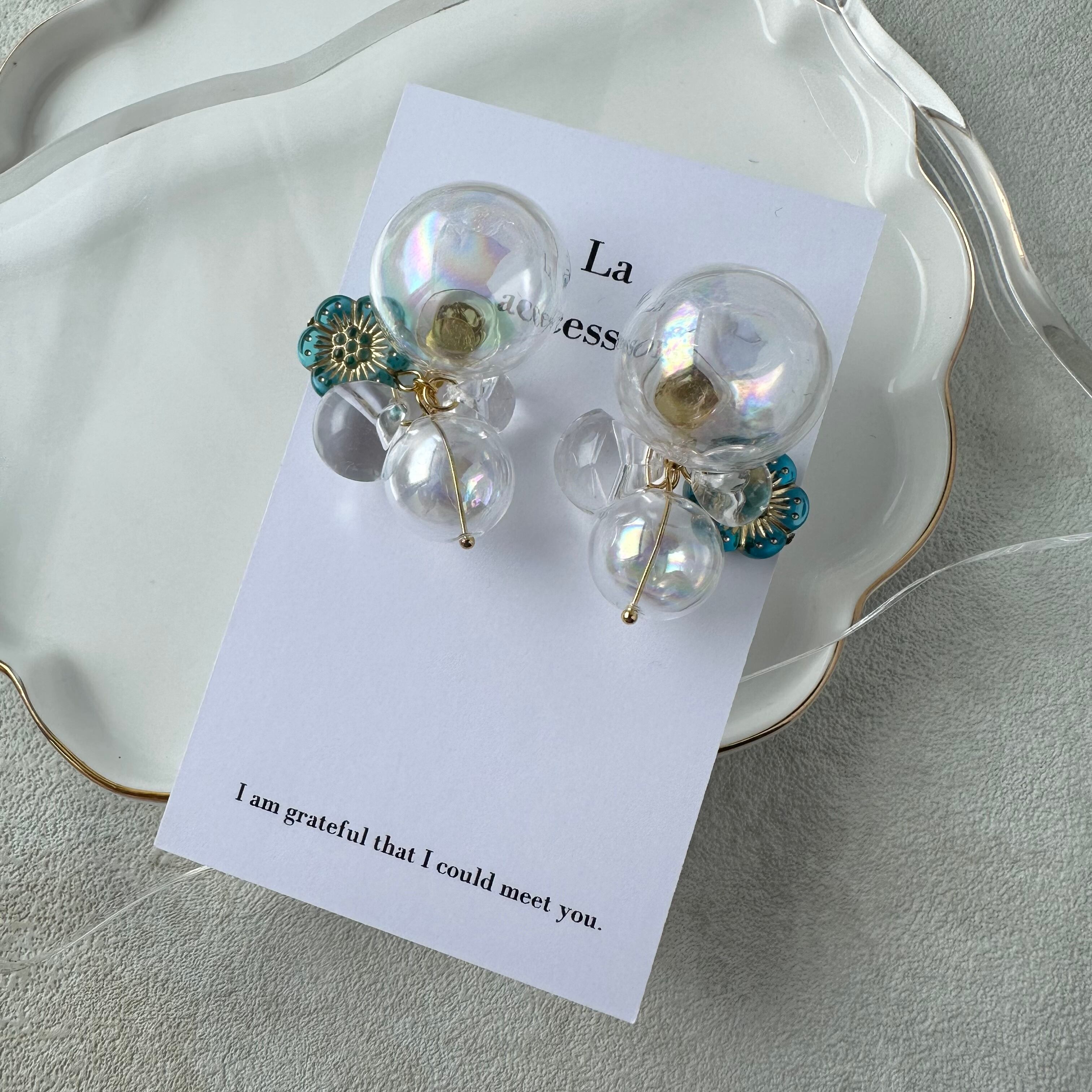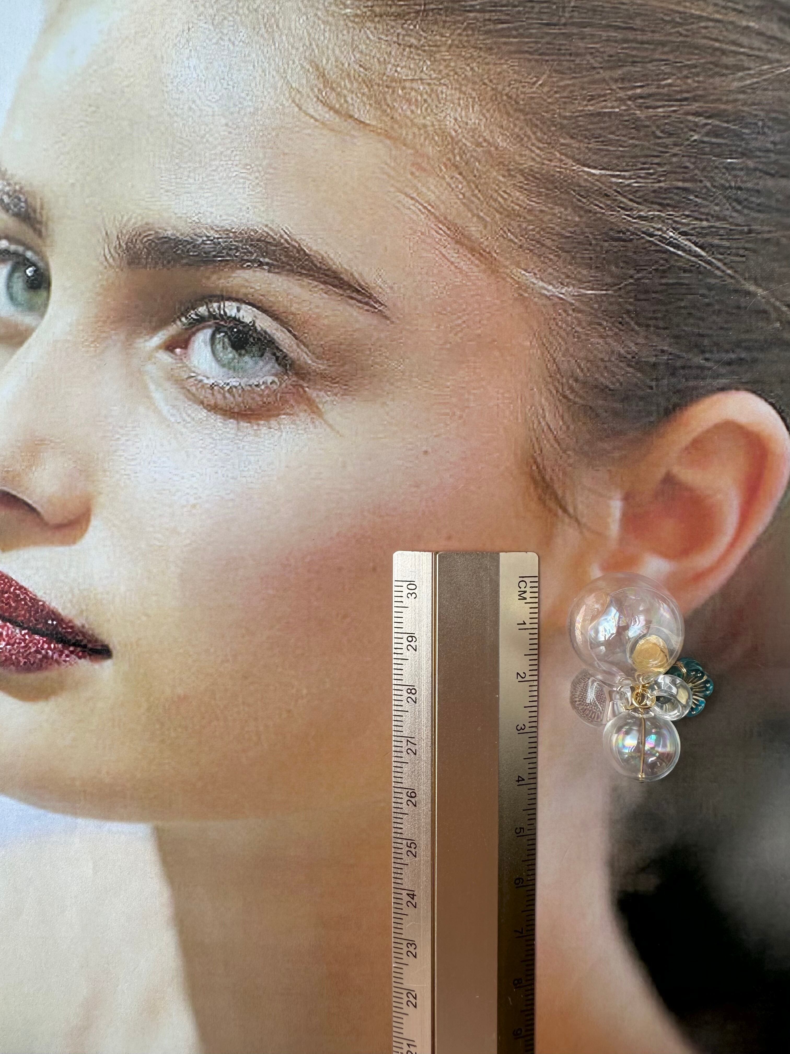 しゃぼんだまパーツは水なしで、とっても軽いです!しゃぼんだまパーツにピアス芯を接着しているため、強い力を与えないようお願い致します。