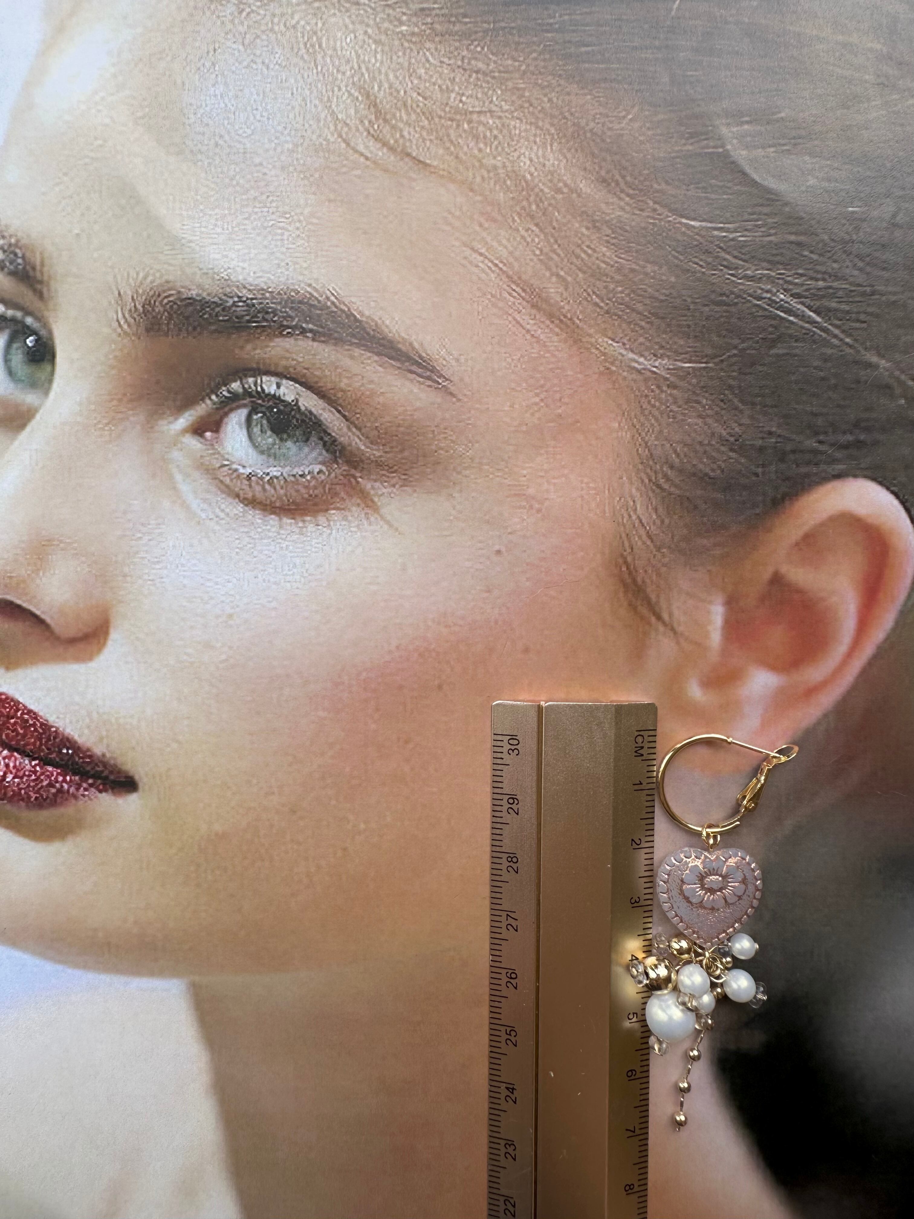 ︎【1点物*】アンティークハート×じゃらじゃらピアス ピンク