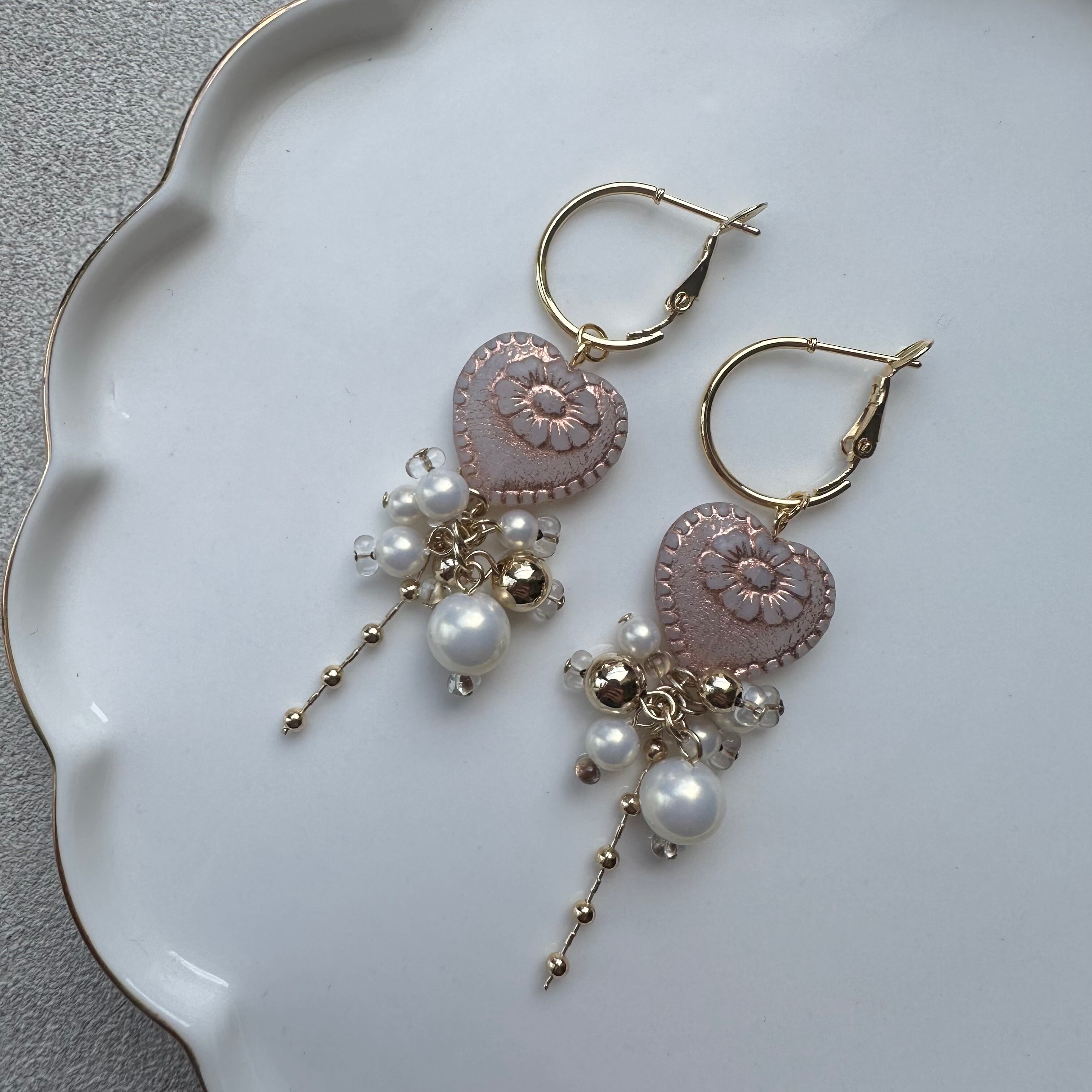 【1点物*】アンティークハート×じゃらじゃらピアス ピンク