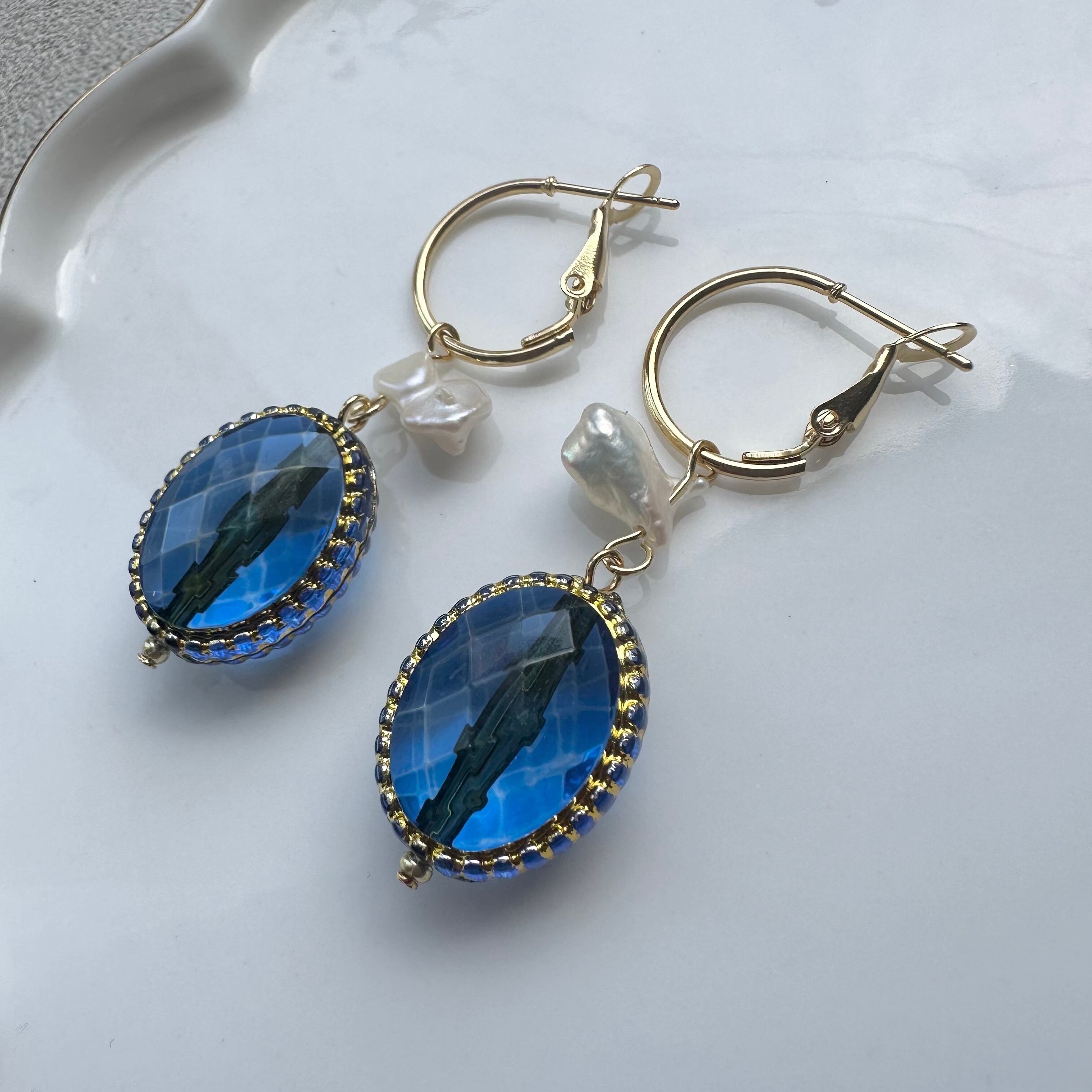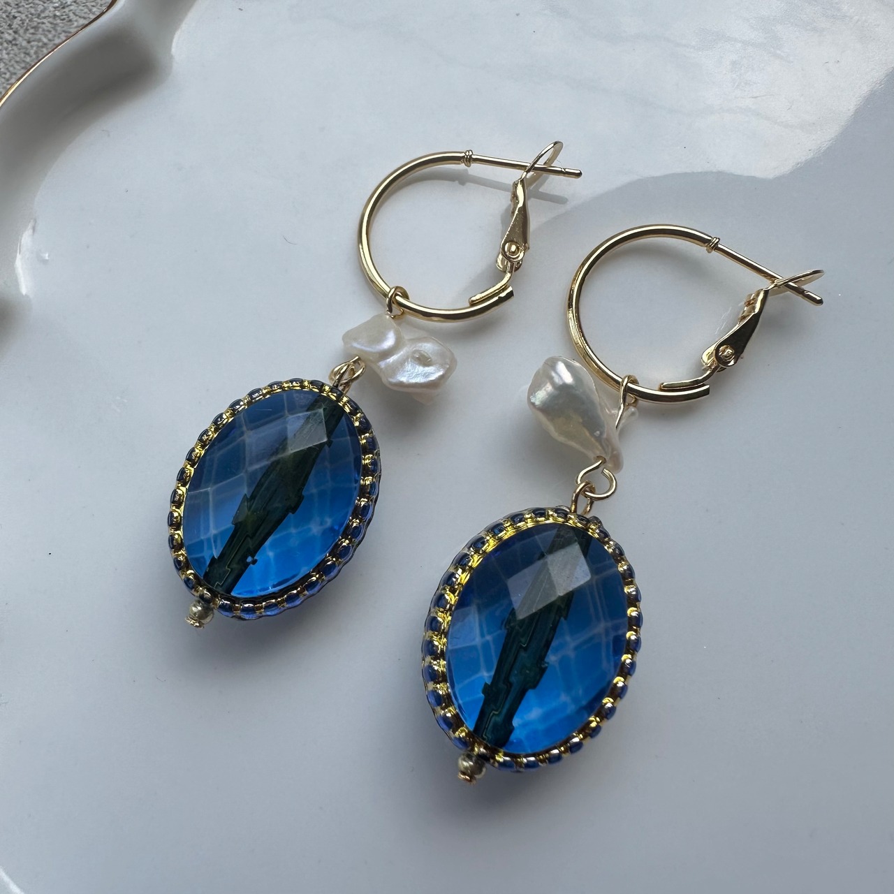︎【1点物*】アンティークブルー×天然淡水パールピアス