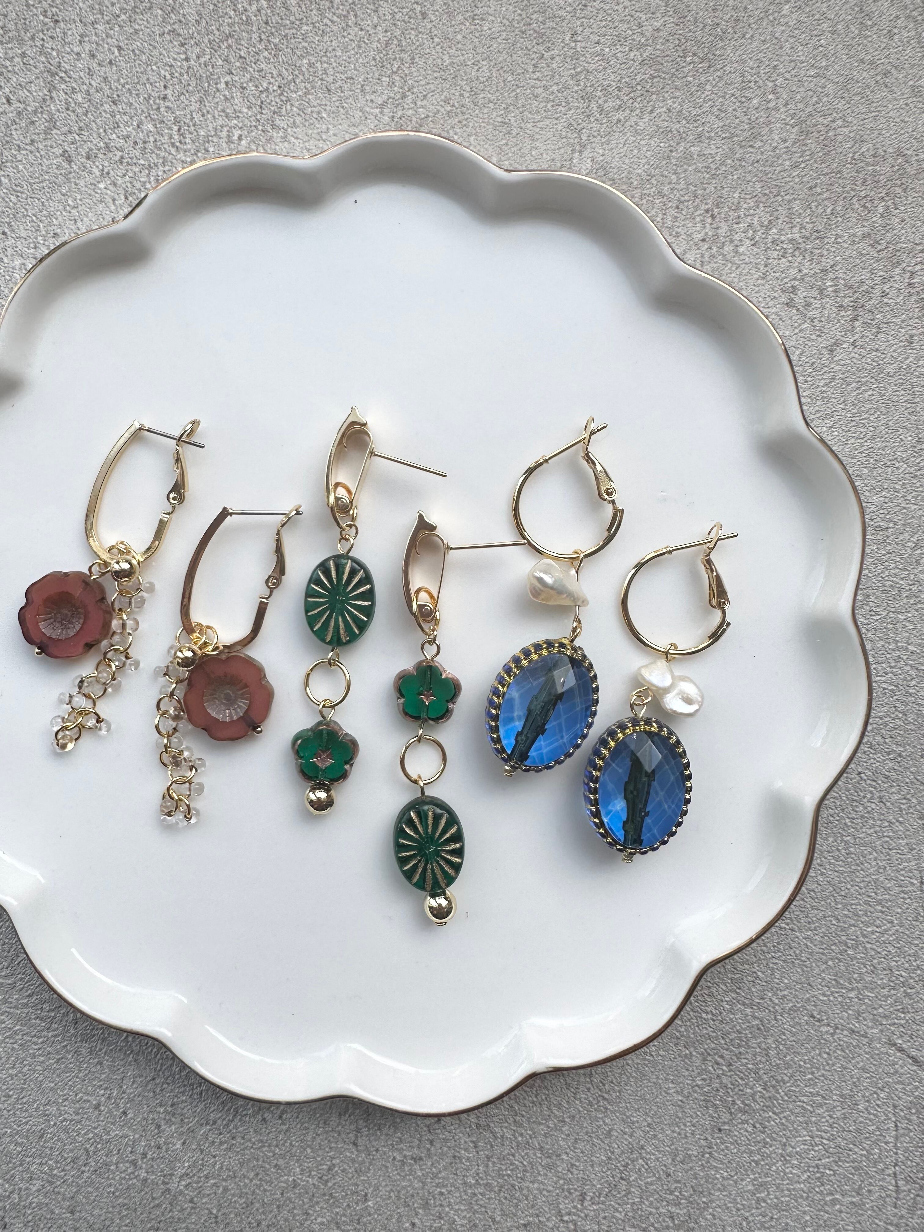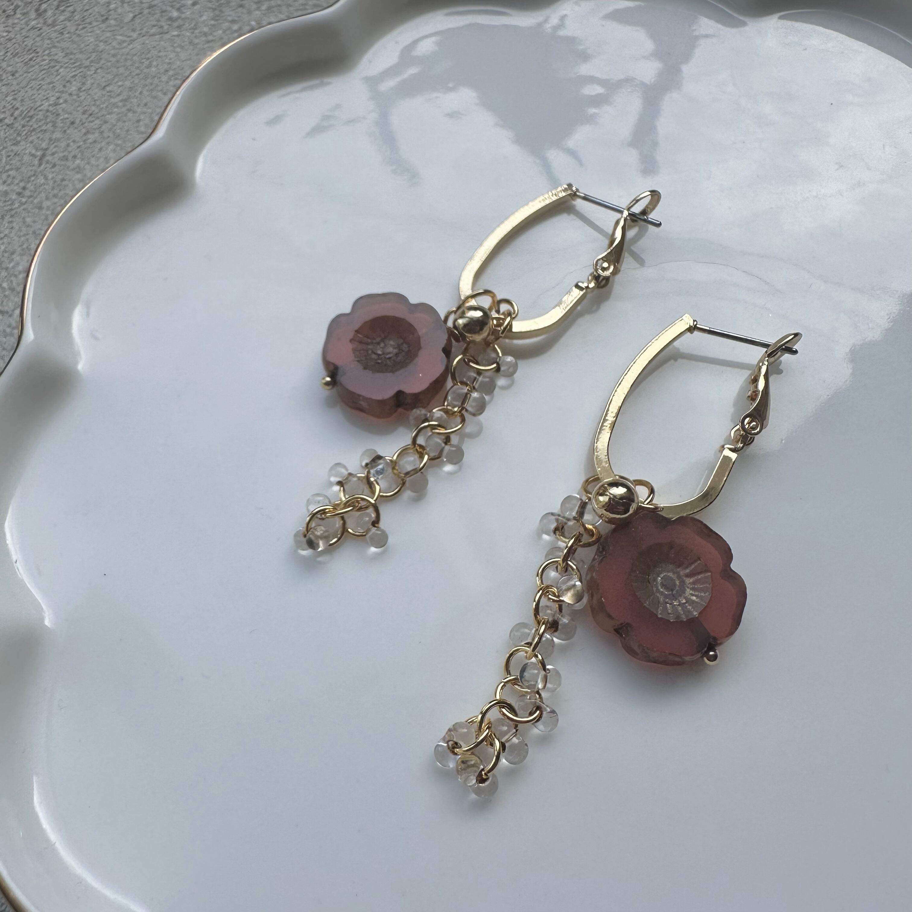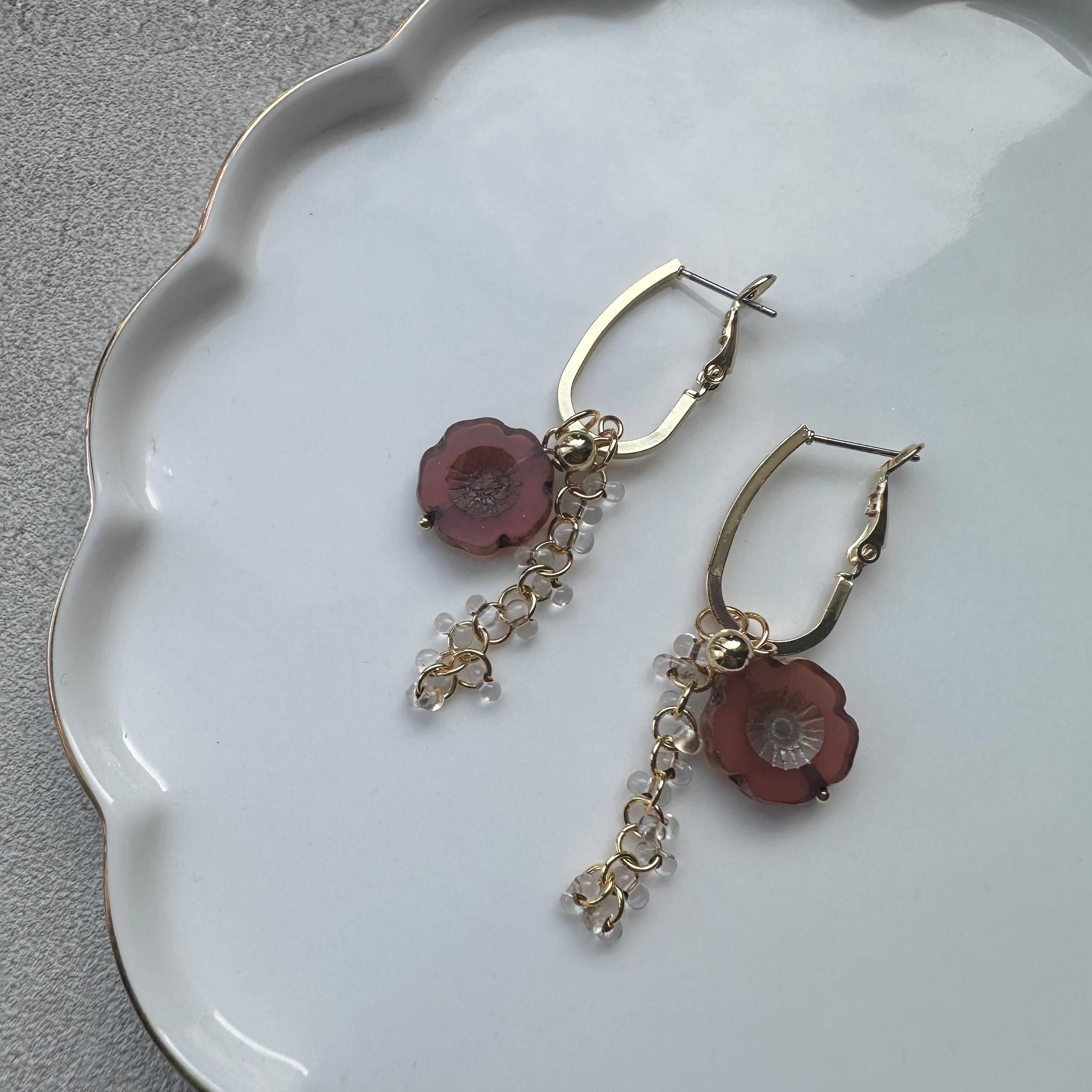 ︎【1点物*】ハワイアンピーチ×U字フープピアス