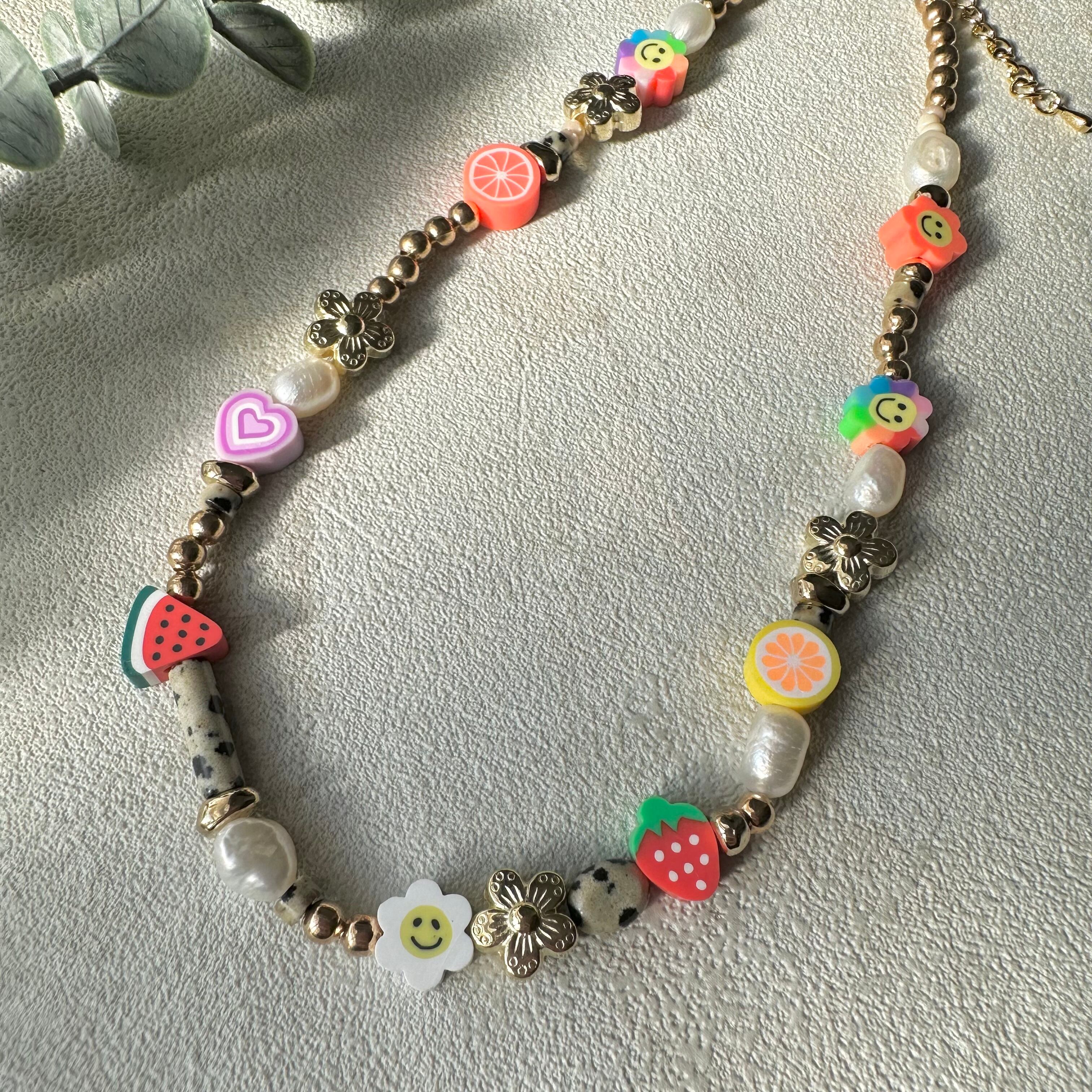 ポイントはカラフルなフルーツやハートなどの可愛いビーズと天然淡水パールを組み合わせたところ♡
