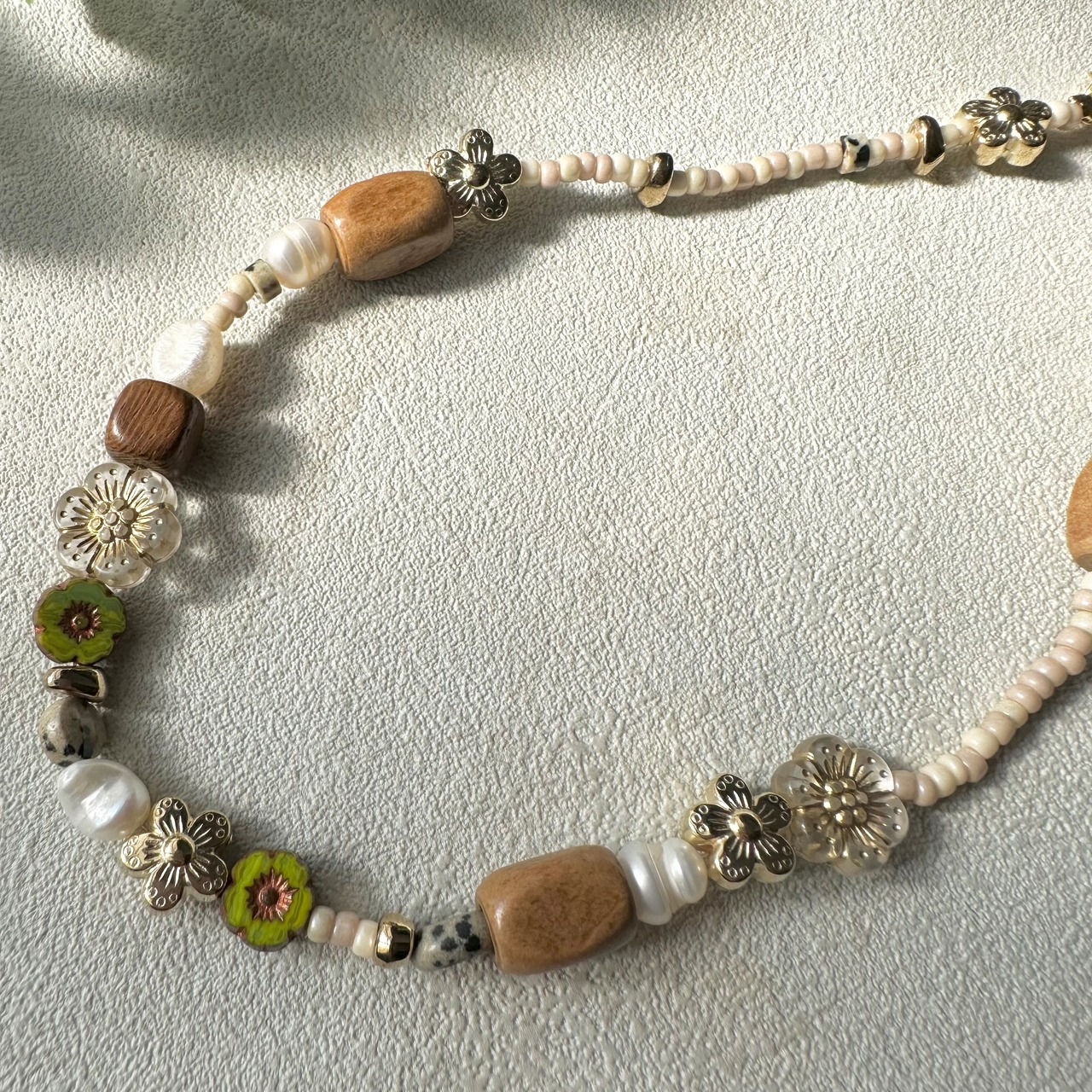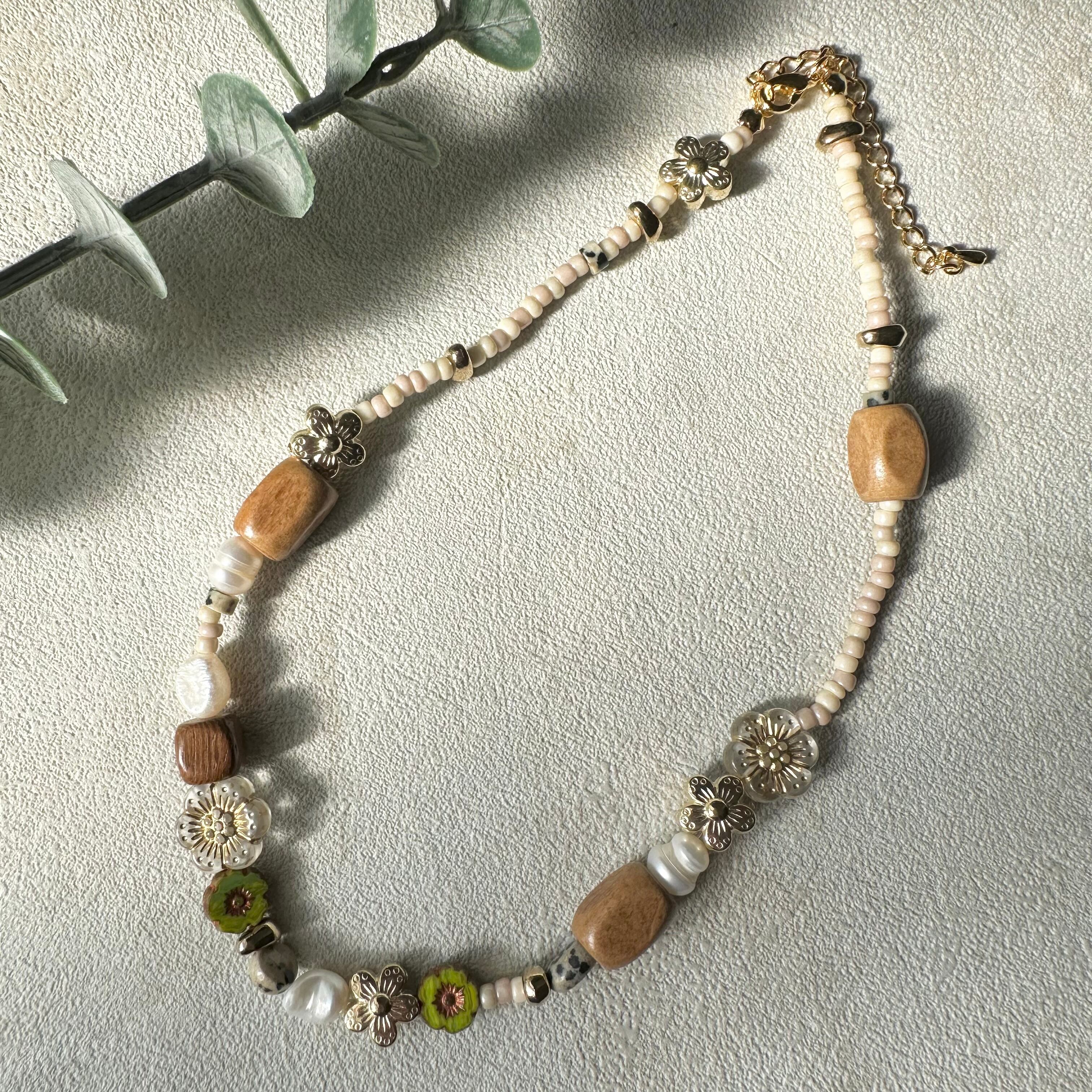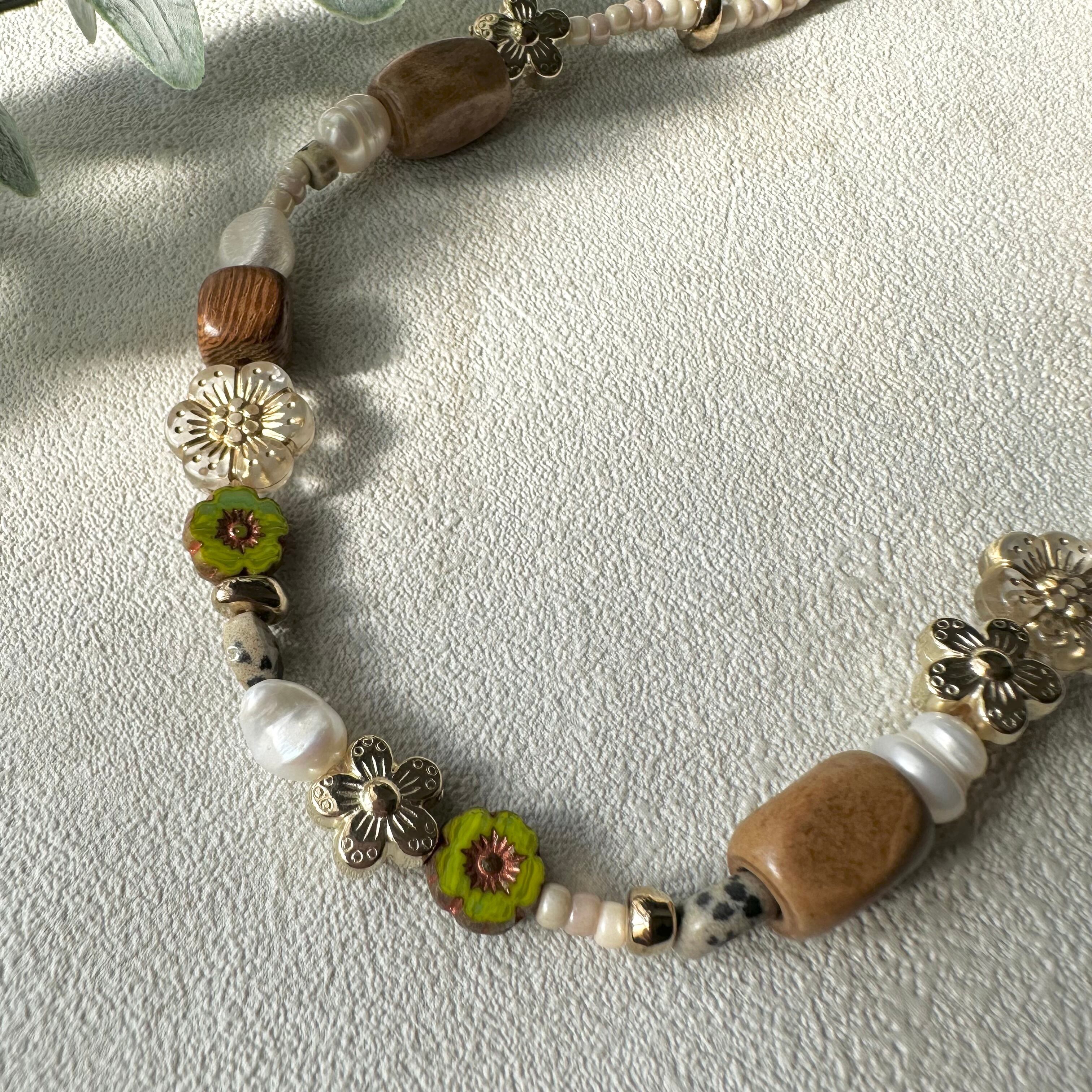 【1点物】Laオリジナルビーズネックレス ナチュラルグリーン