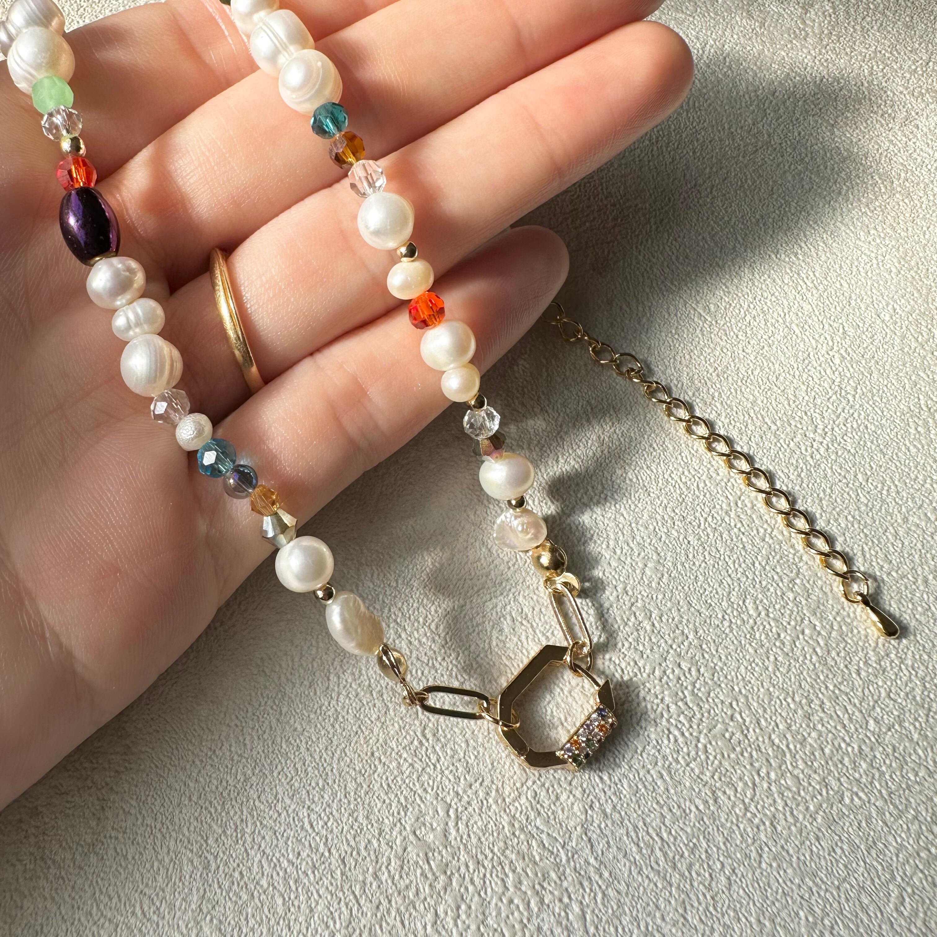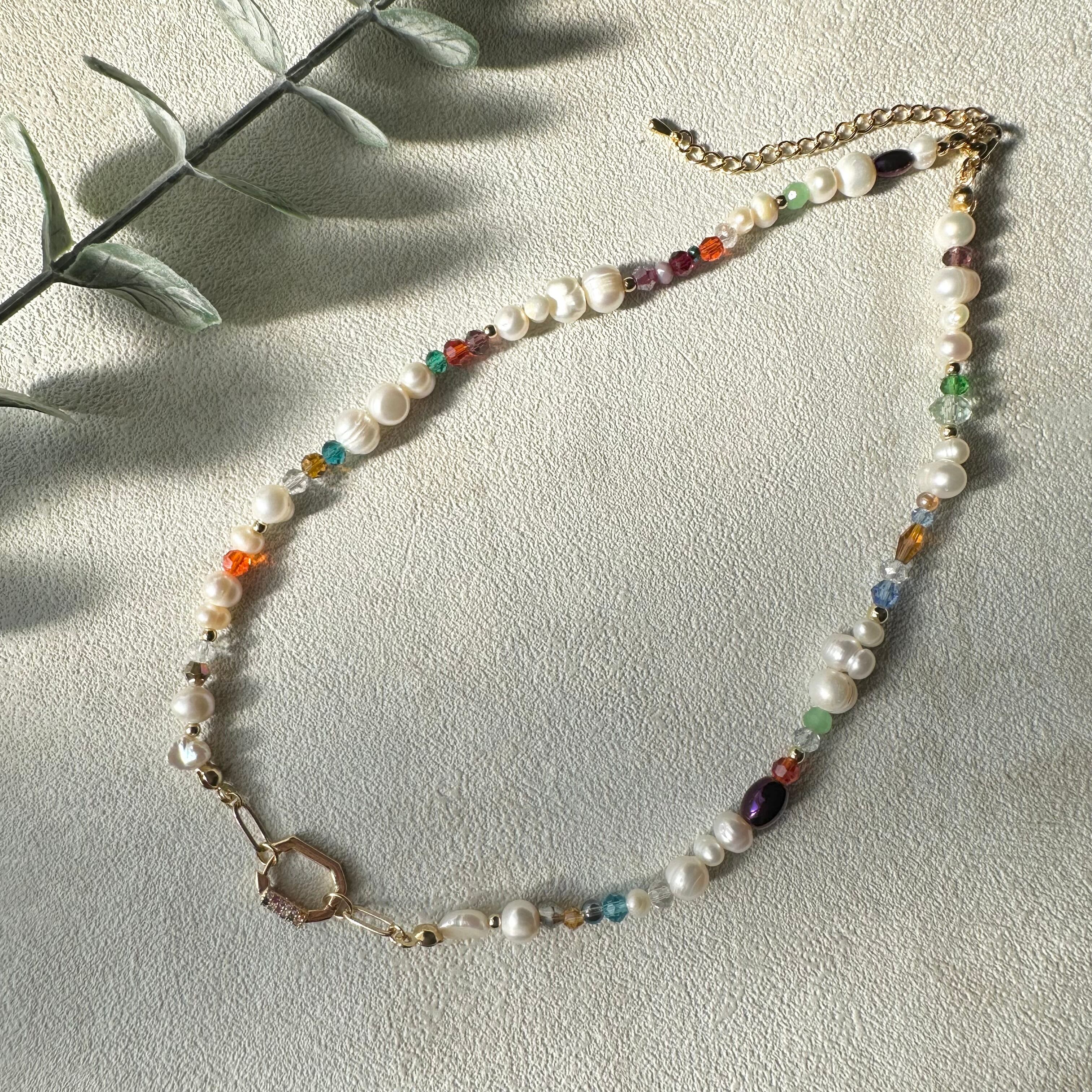【1点物】Laオリジナルビーズネックレス 淡水パール×カラフル