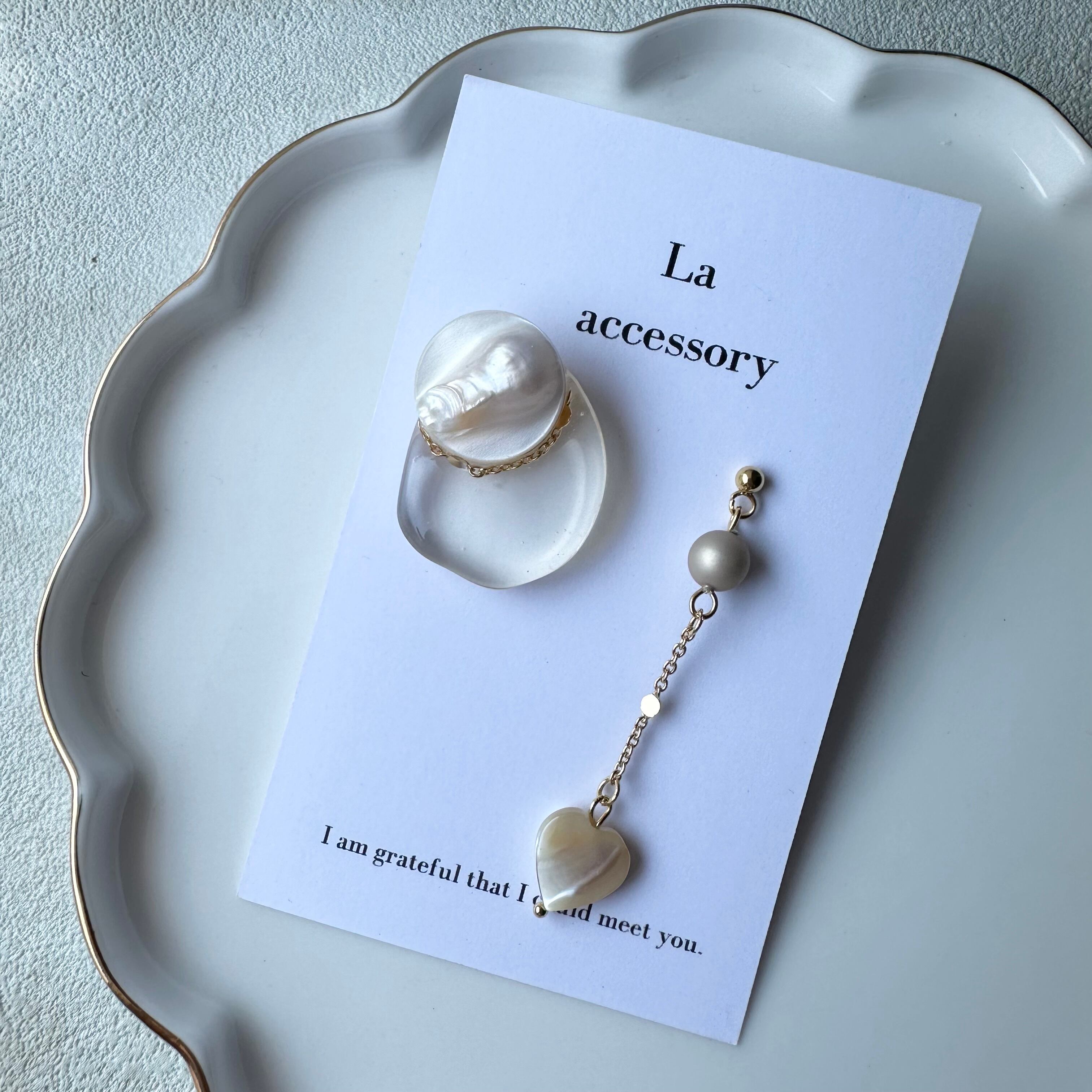 ︎マザーオブパールハートのアシメピアス