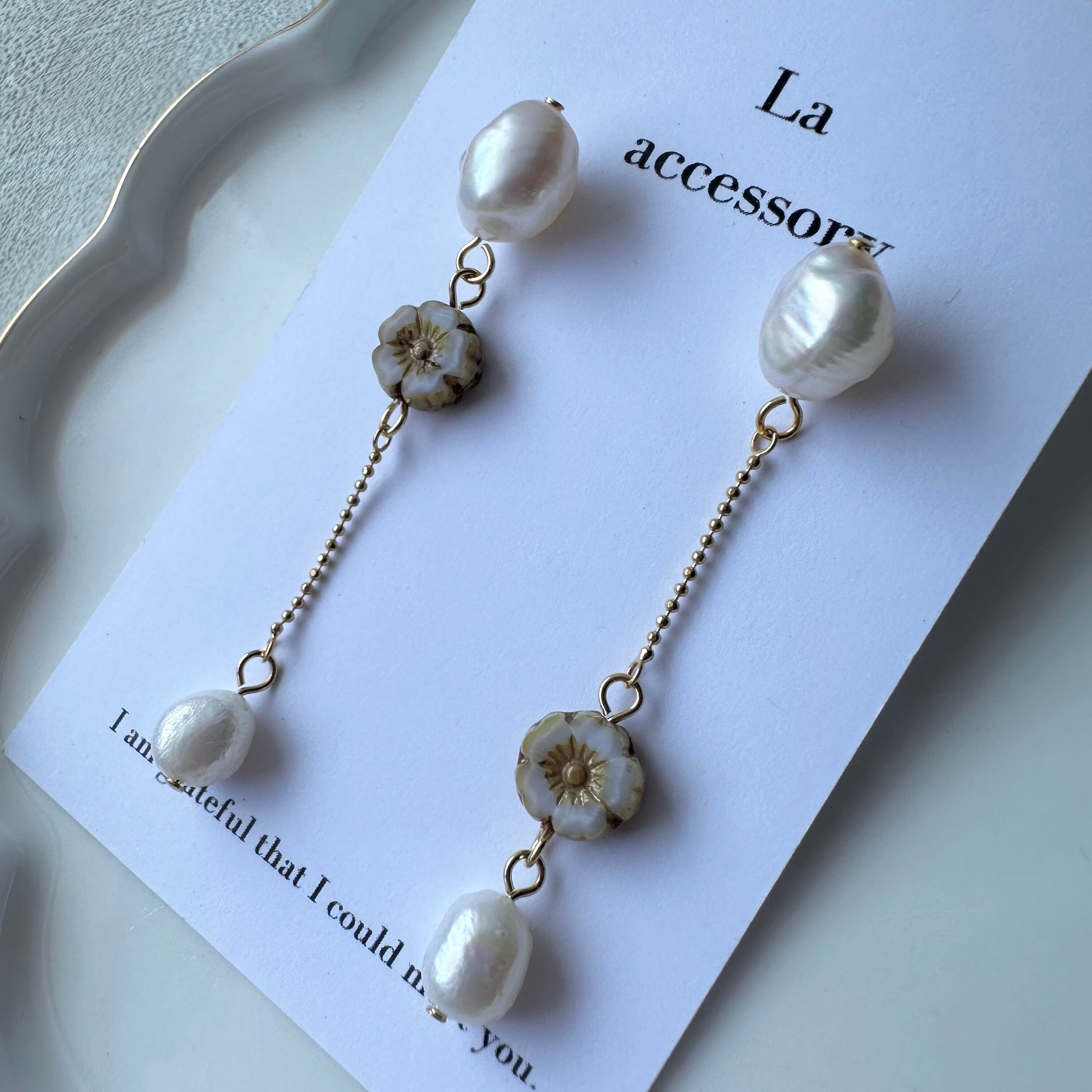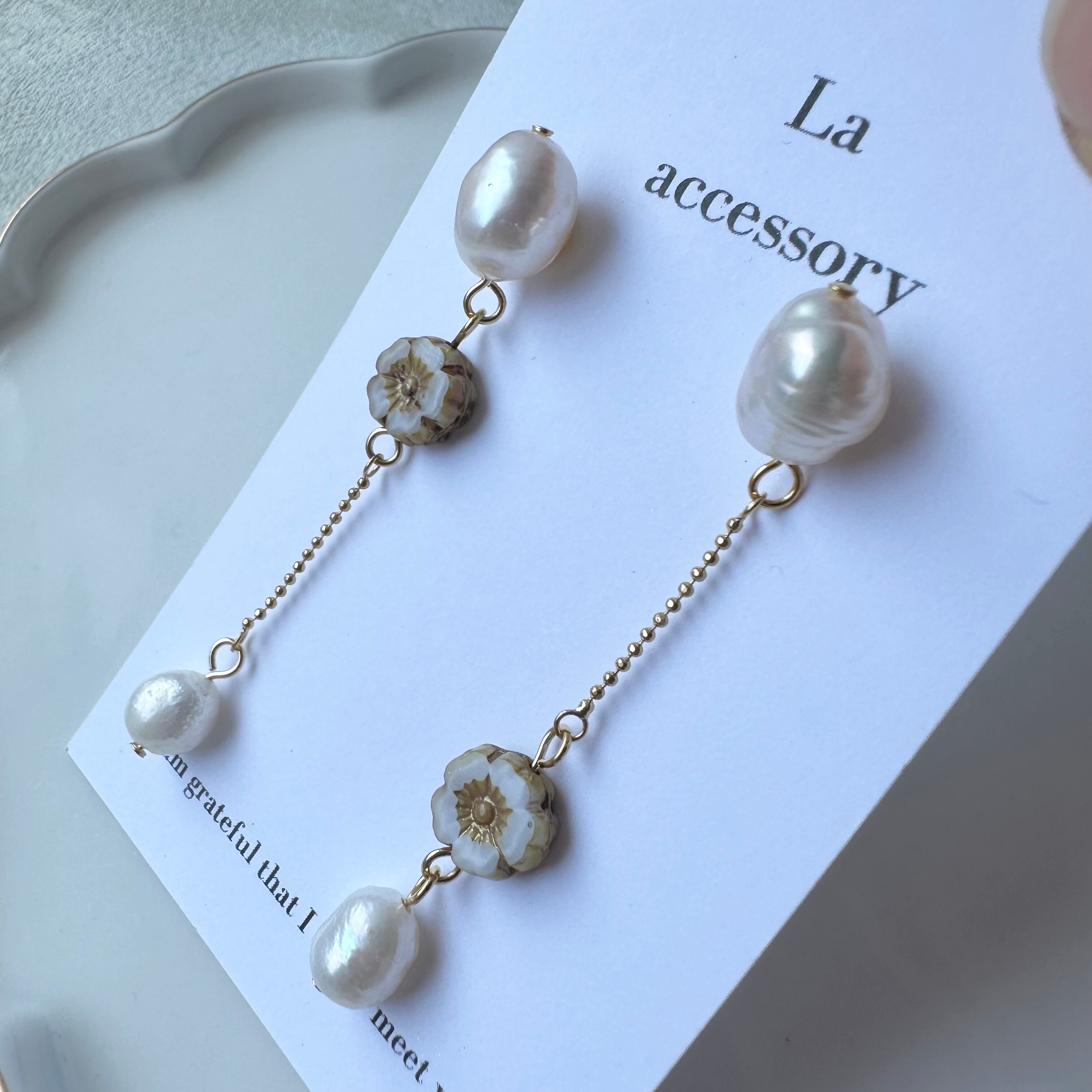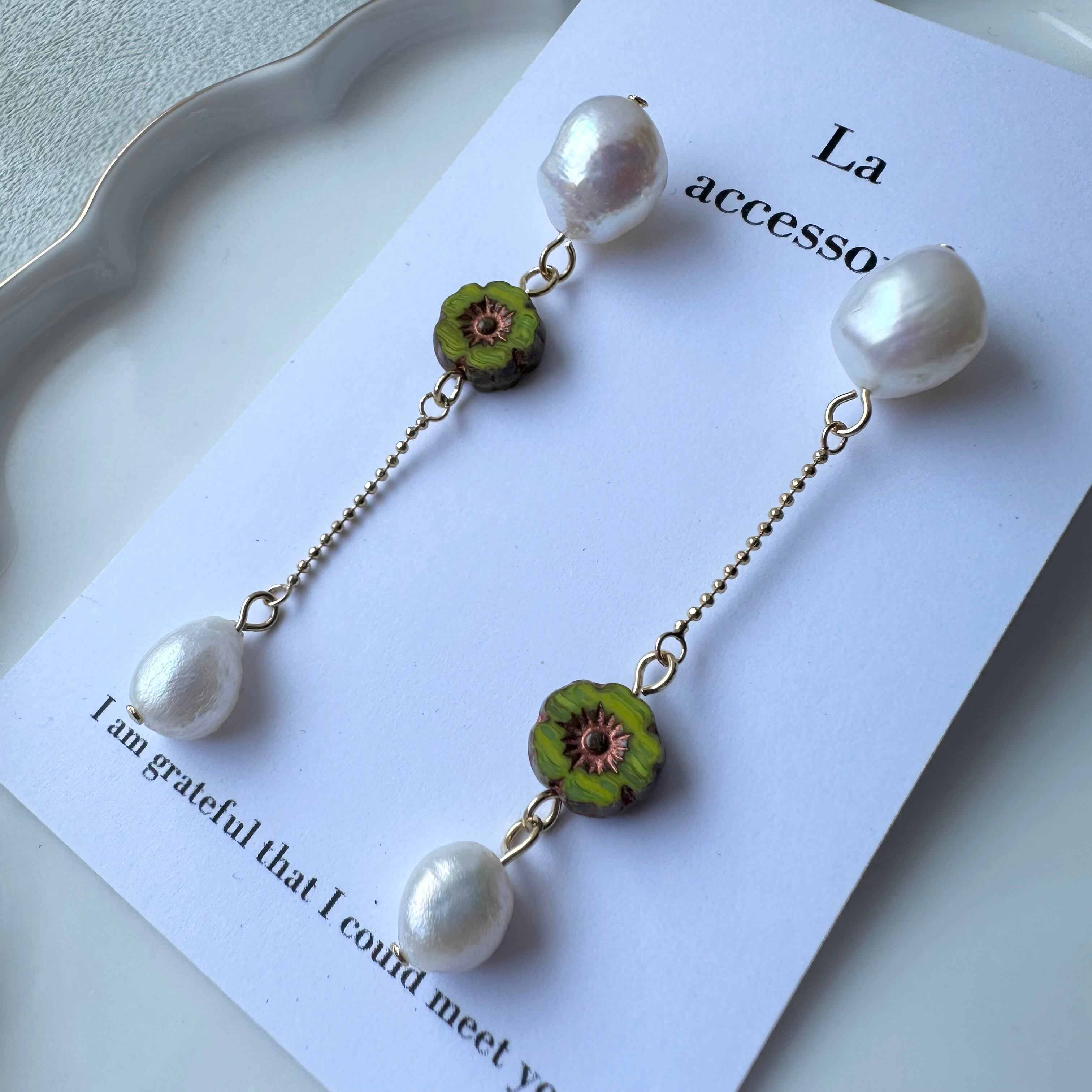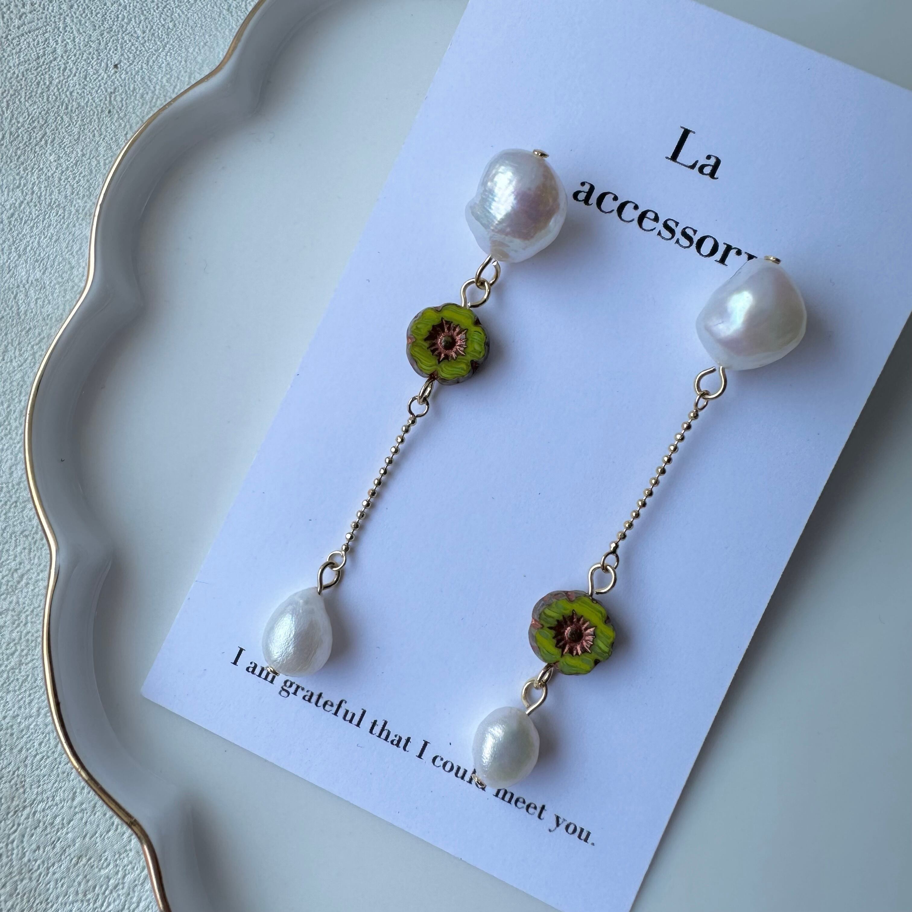 ︎【1点物*】天然淡水パール×ハワイアンビーズピアス
