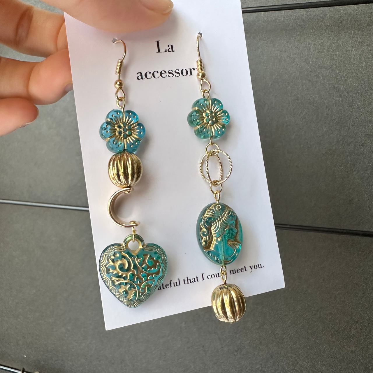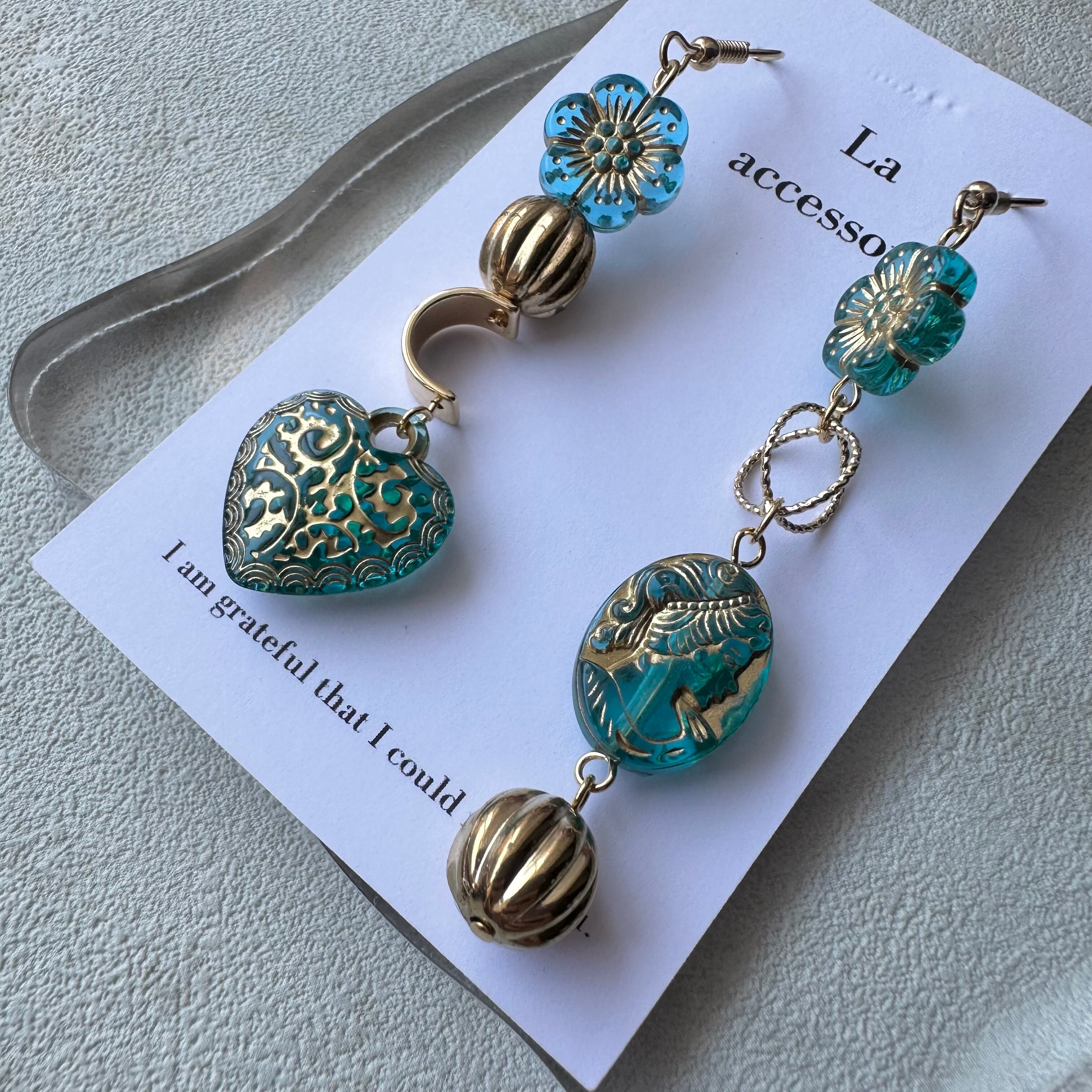 ︎【1点物*】アンティークアシメセルリアンブルーピアス