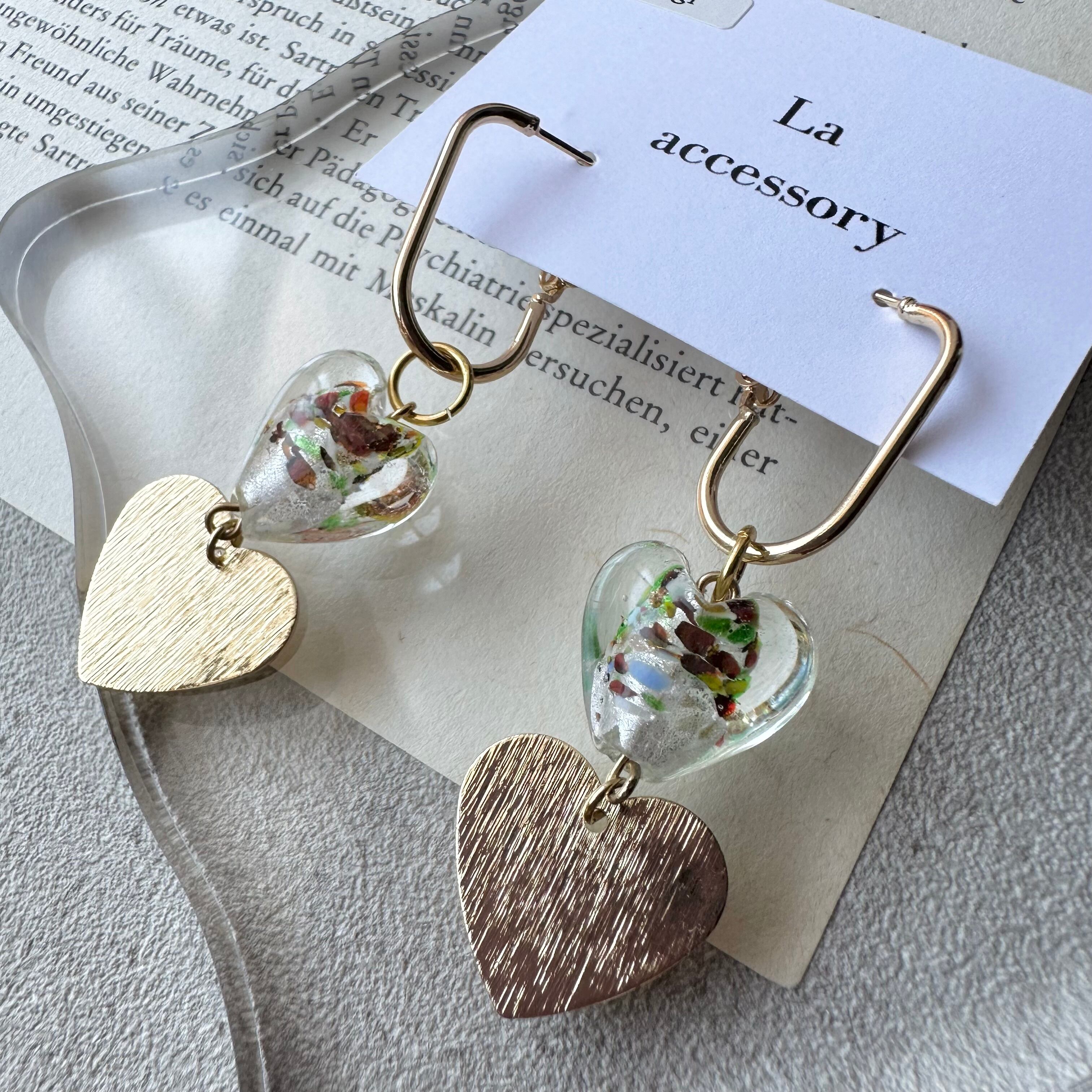 【1点物*】ガラスハート×U字ピアス