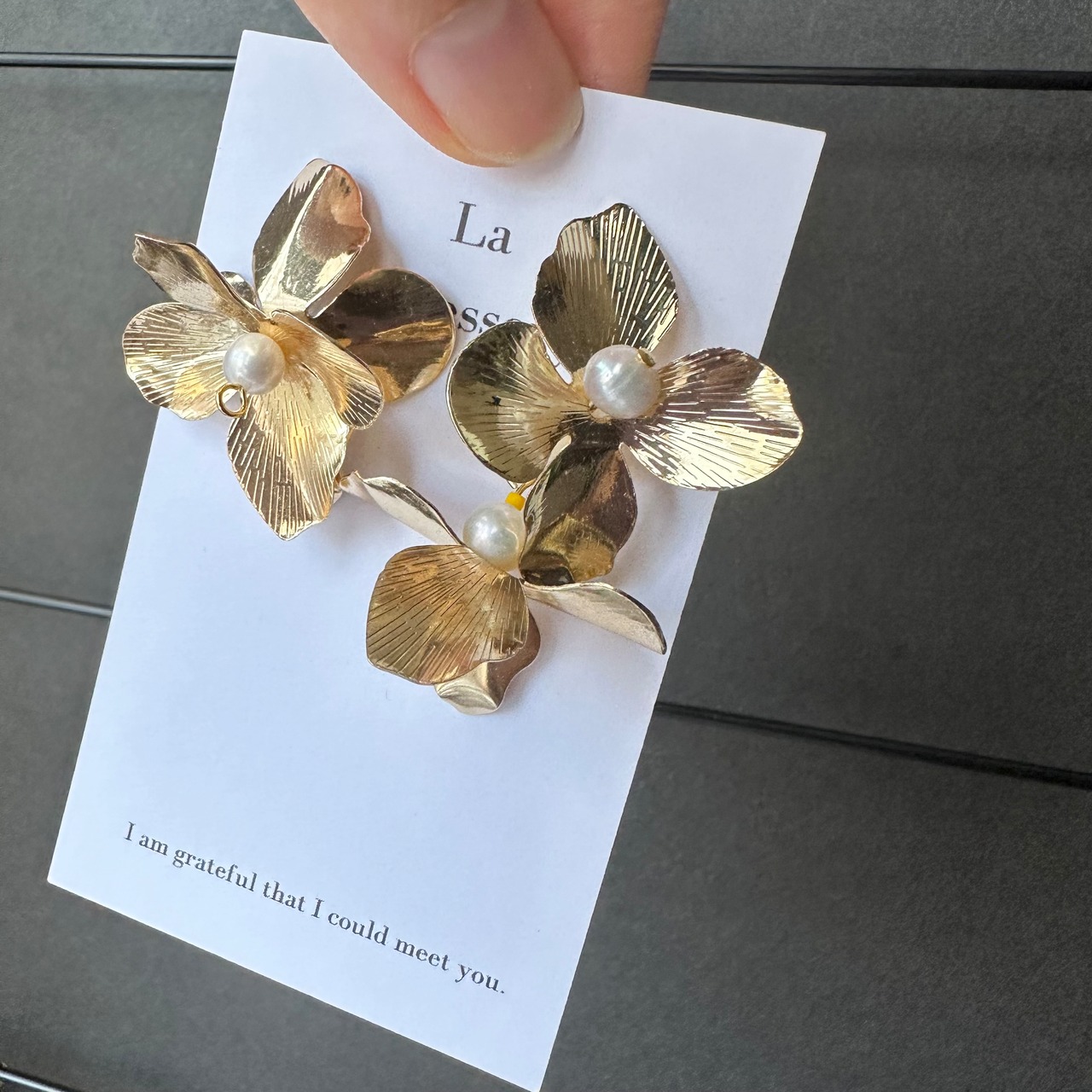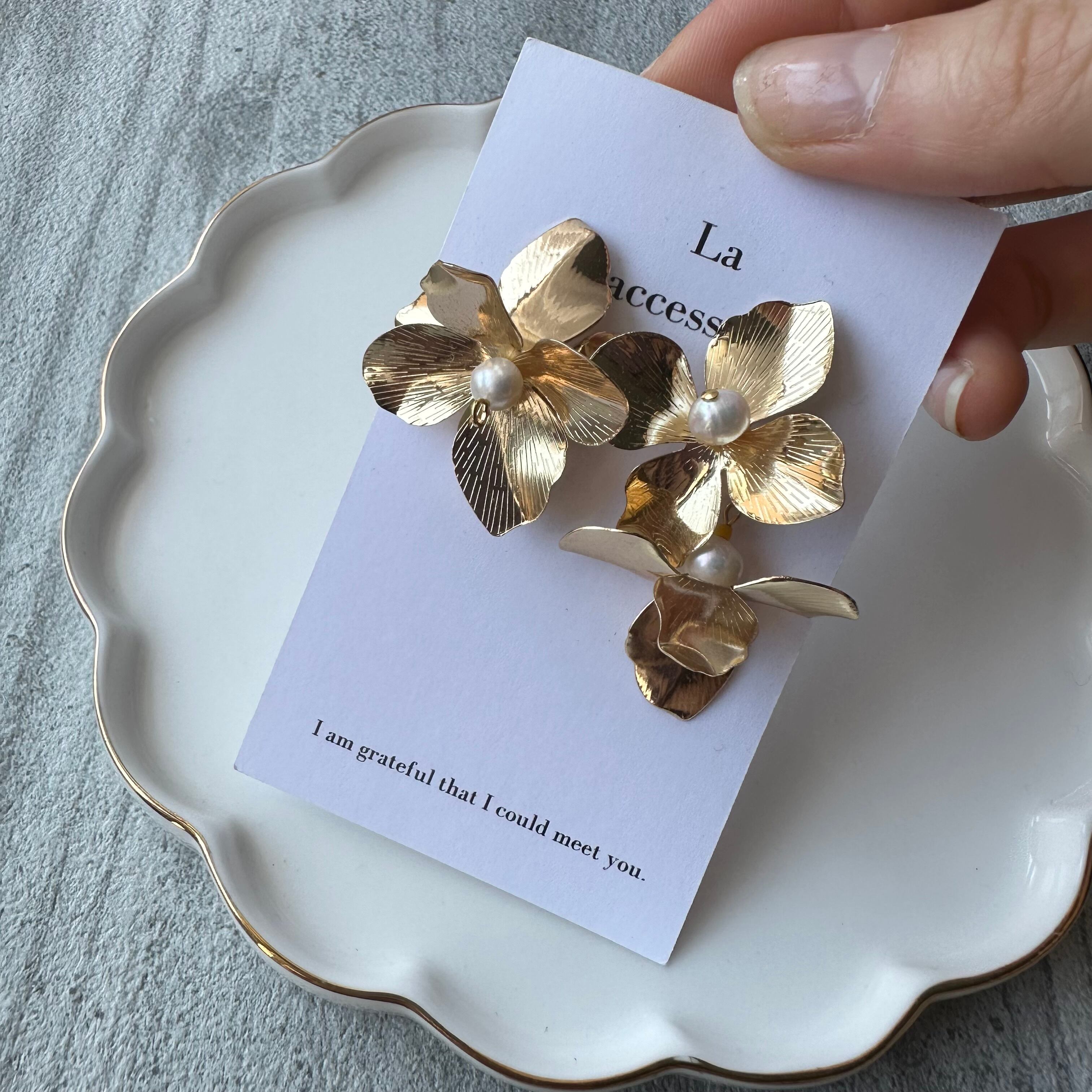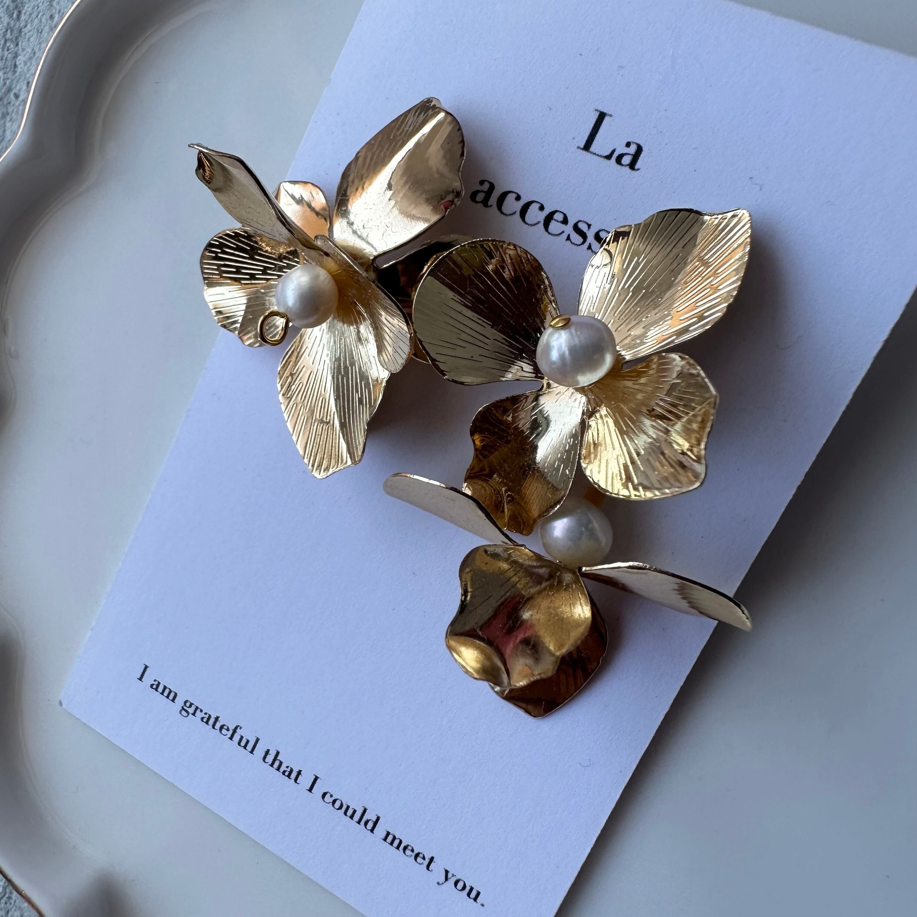 【1点物*ピアス】ゴールドフラワーアシメピアス