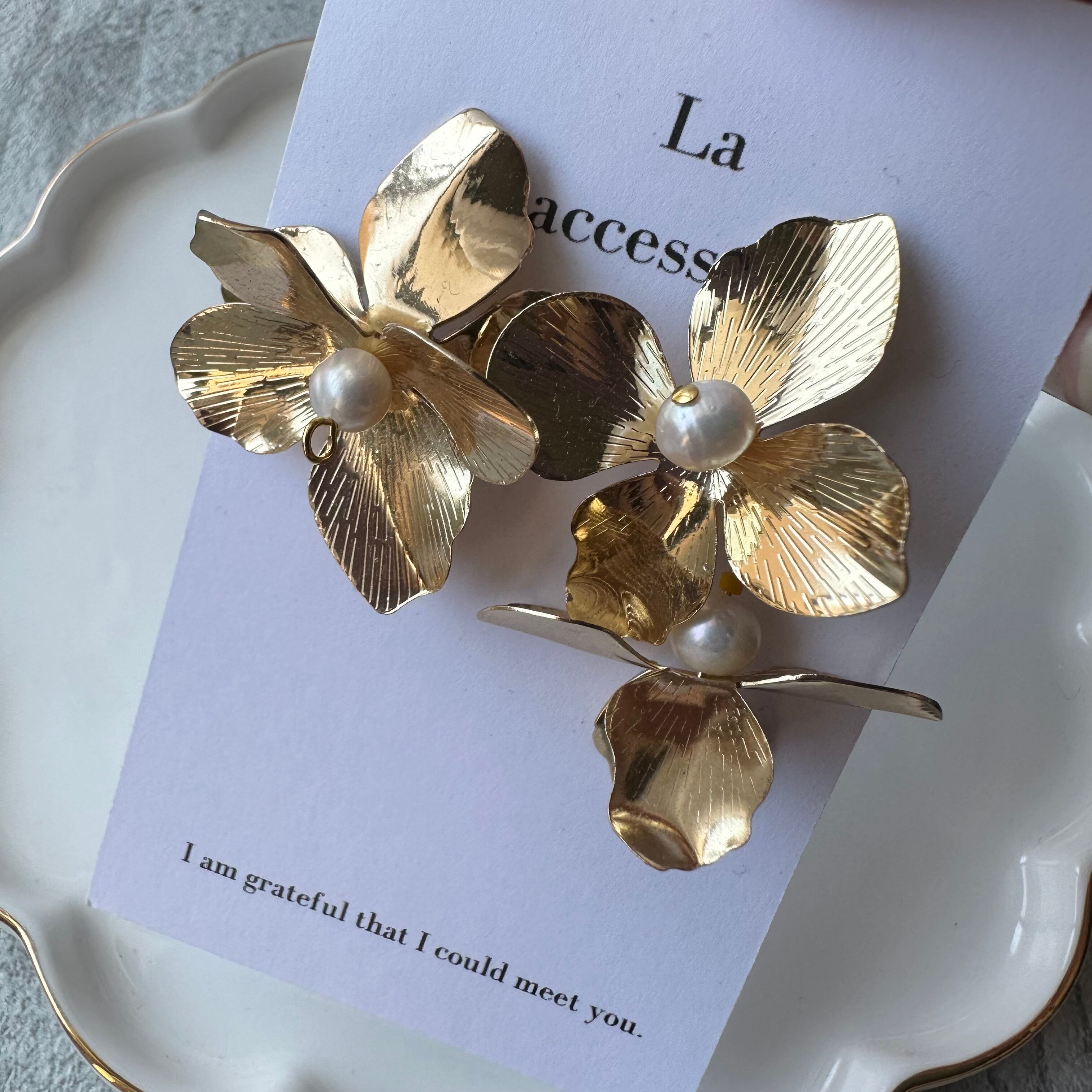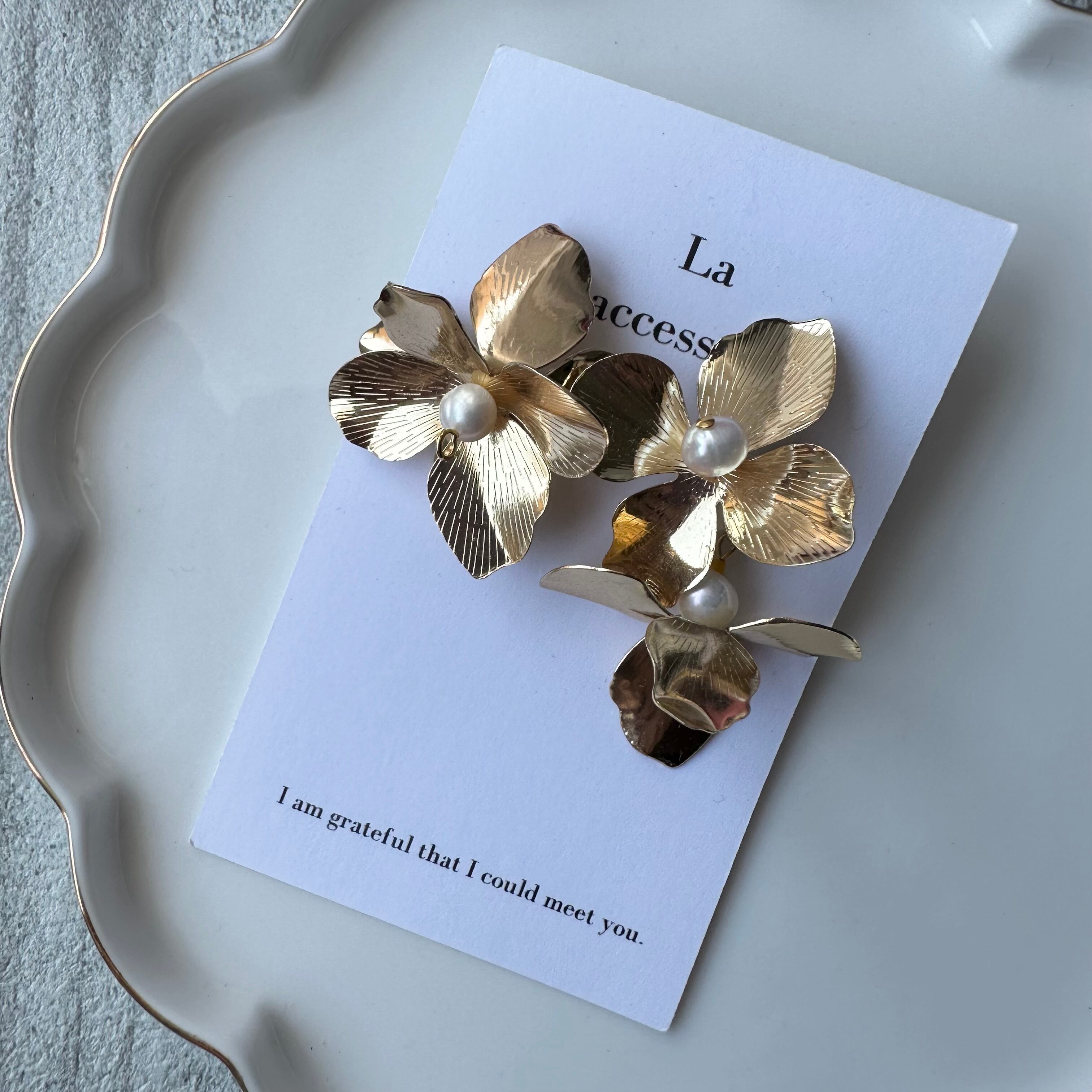 【1点物*イヤリング】ゴールドフラワーアシメイヤリング
