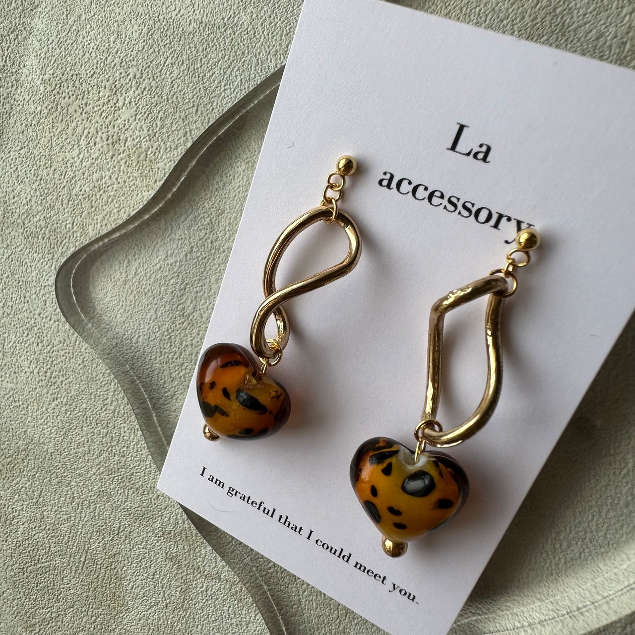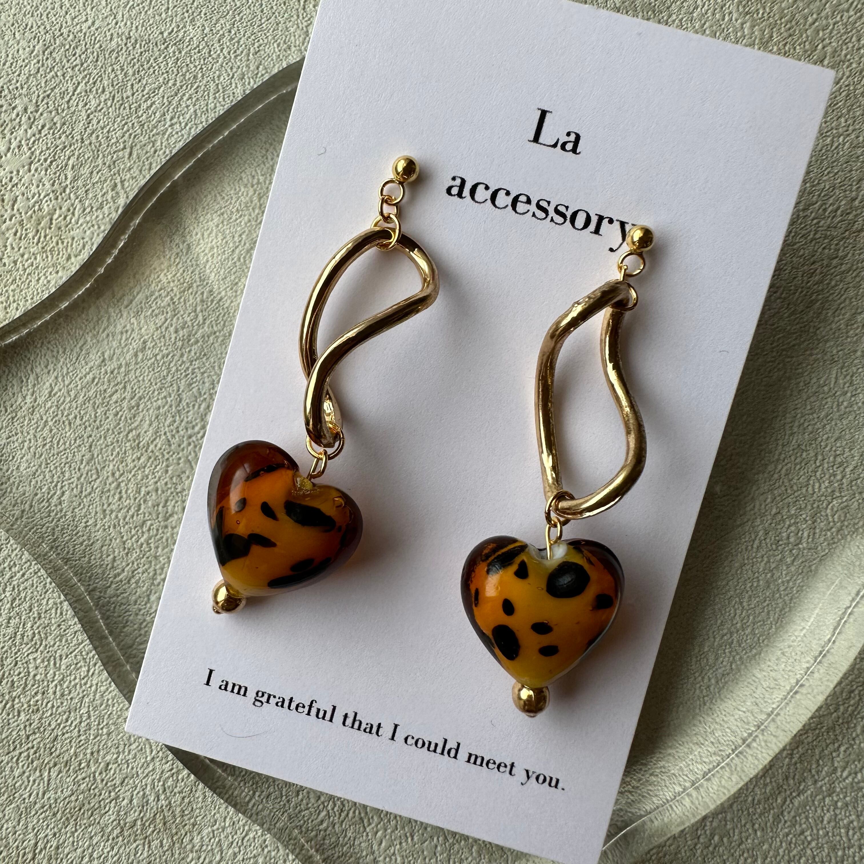 ︎【1点物*】変則ひねり×レオパハートピアス