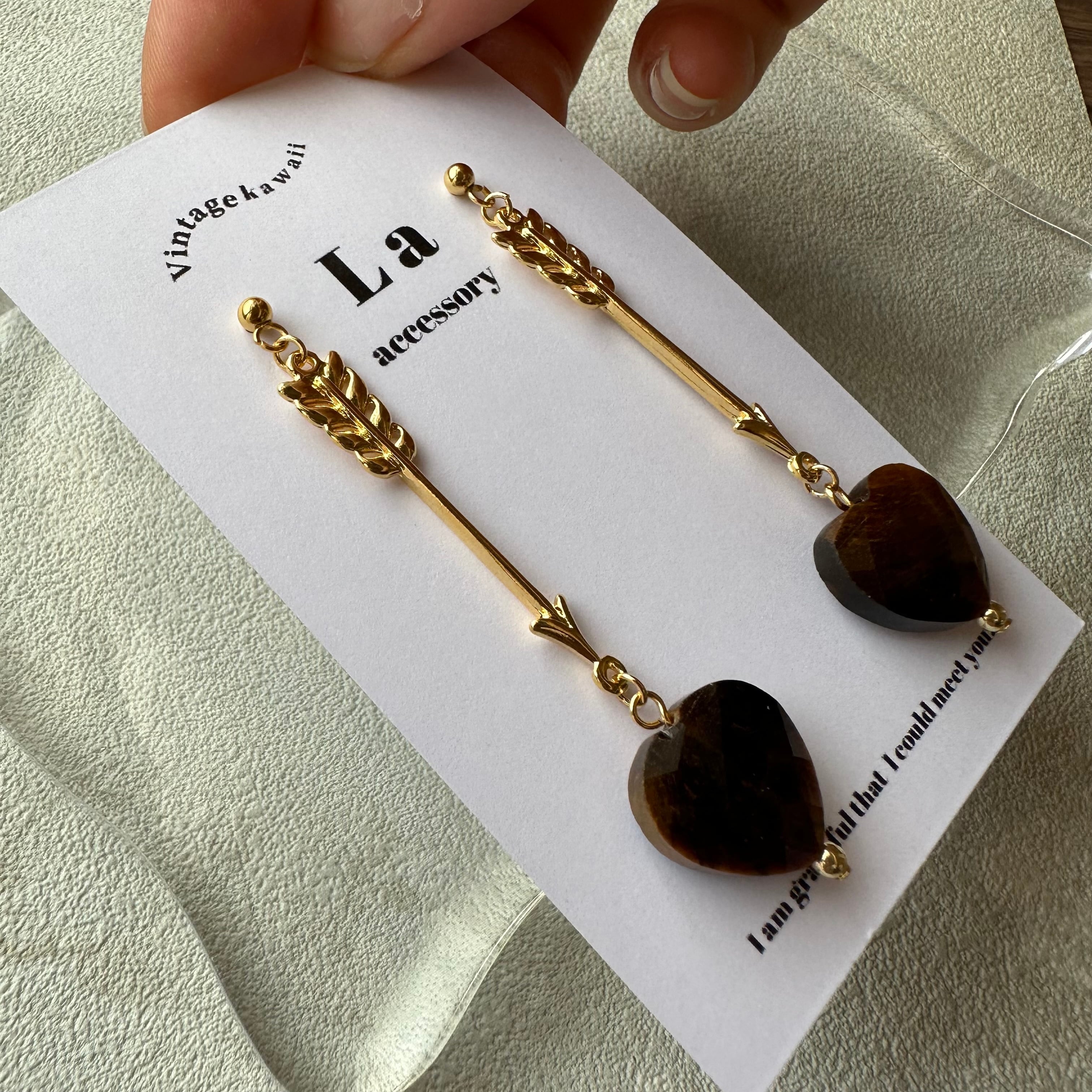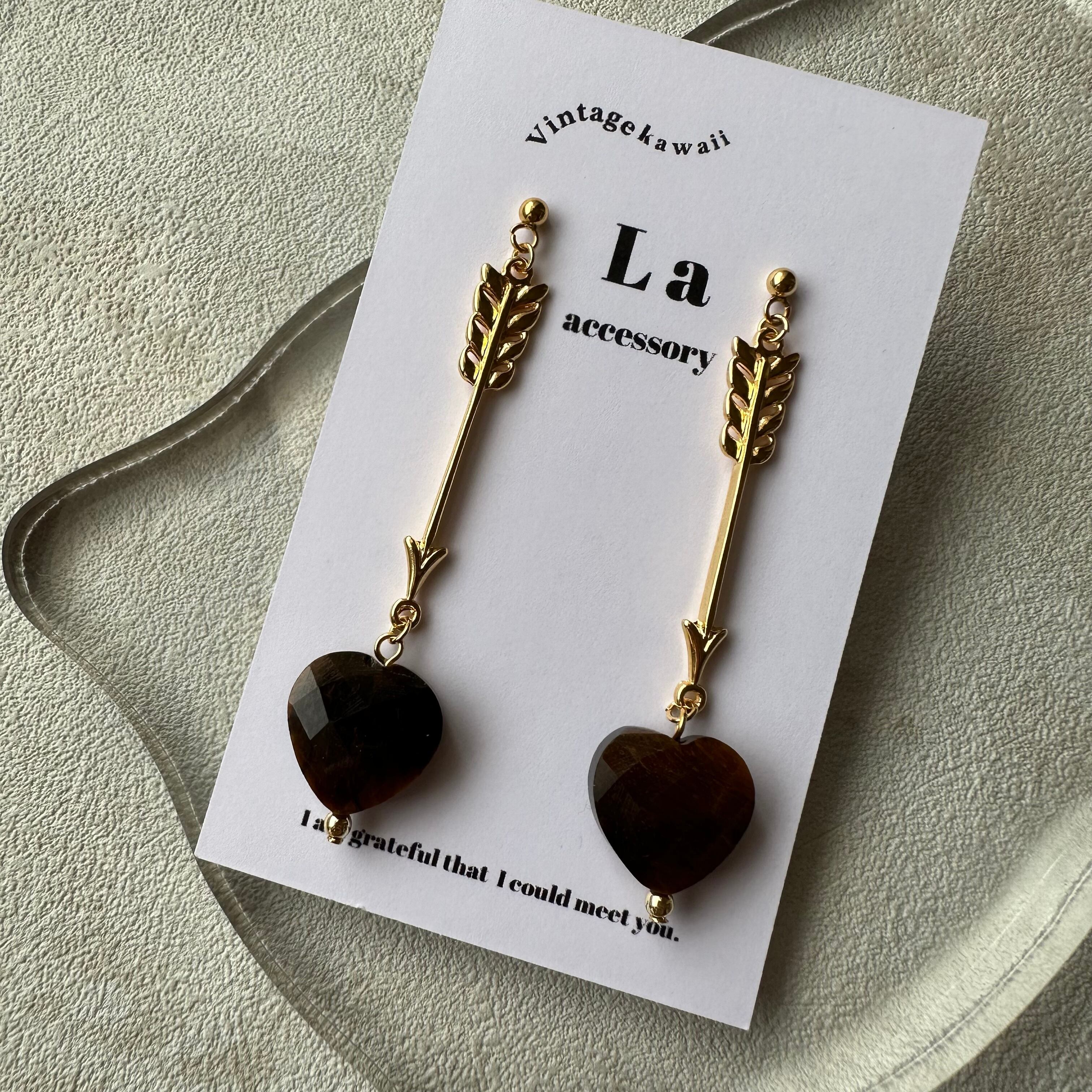 ︎【1点物*】天然石ブラウンハートピアス C