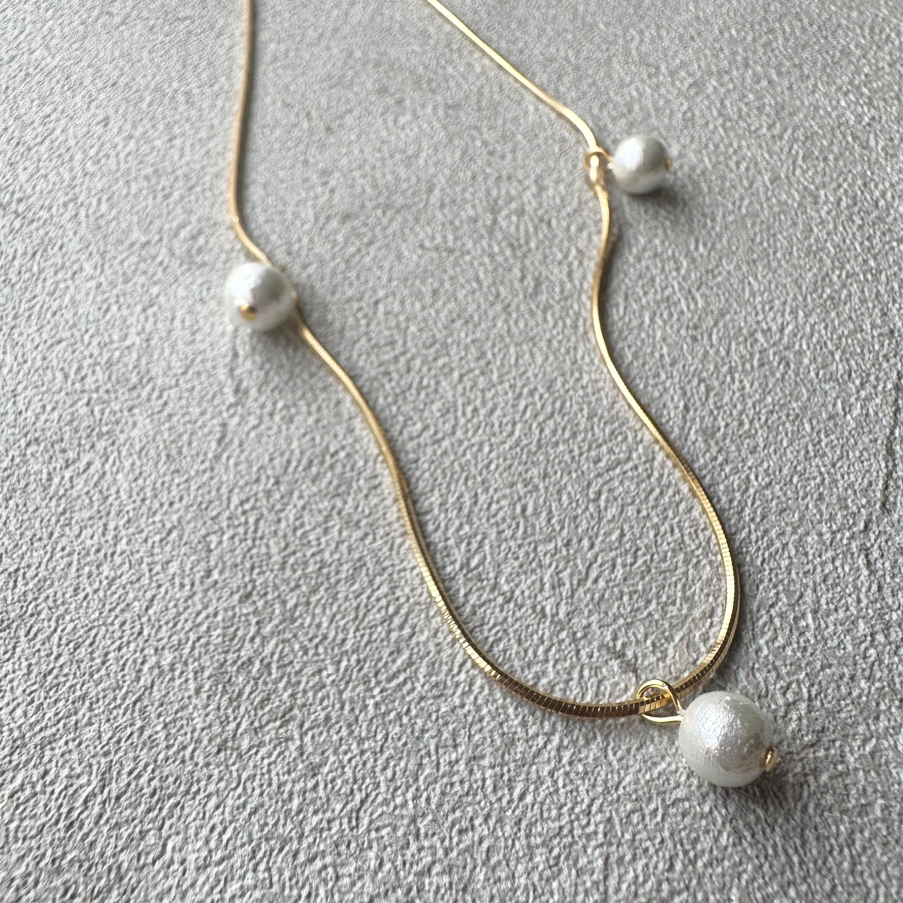 三粒の高品質コットンパールをつけて上品に仕上げました( ⸝⸝⸝ᵕᴗᵕ⸝⸝⸝ )