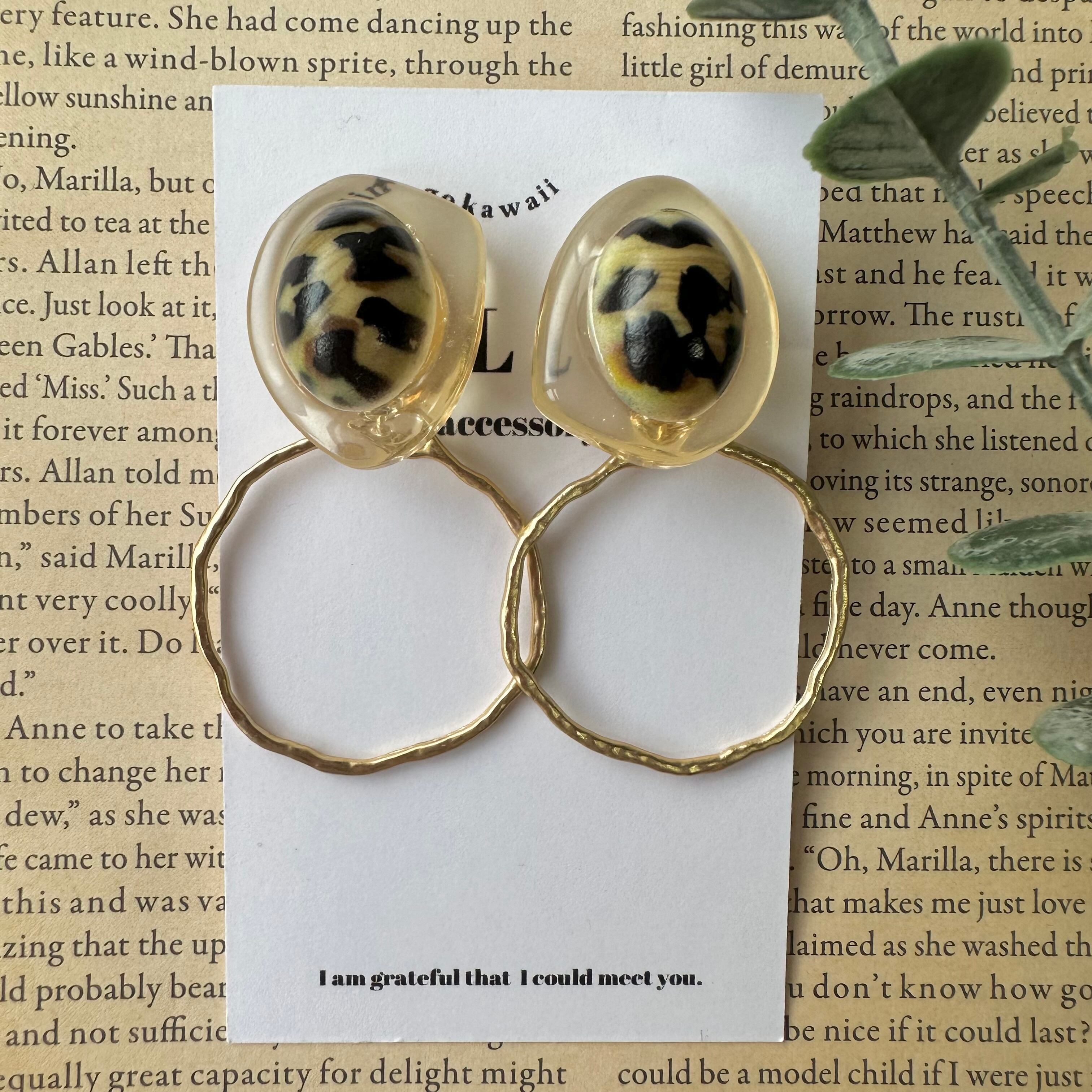 ︎【1点物*】楕円レオパードをとじこめたピアス