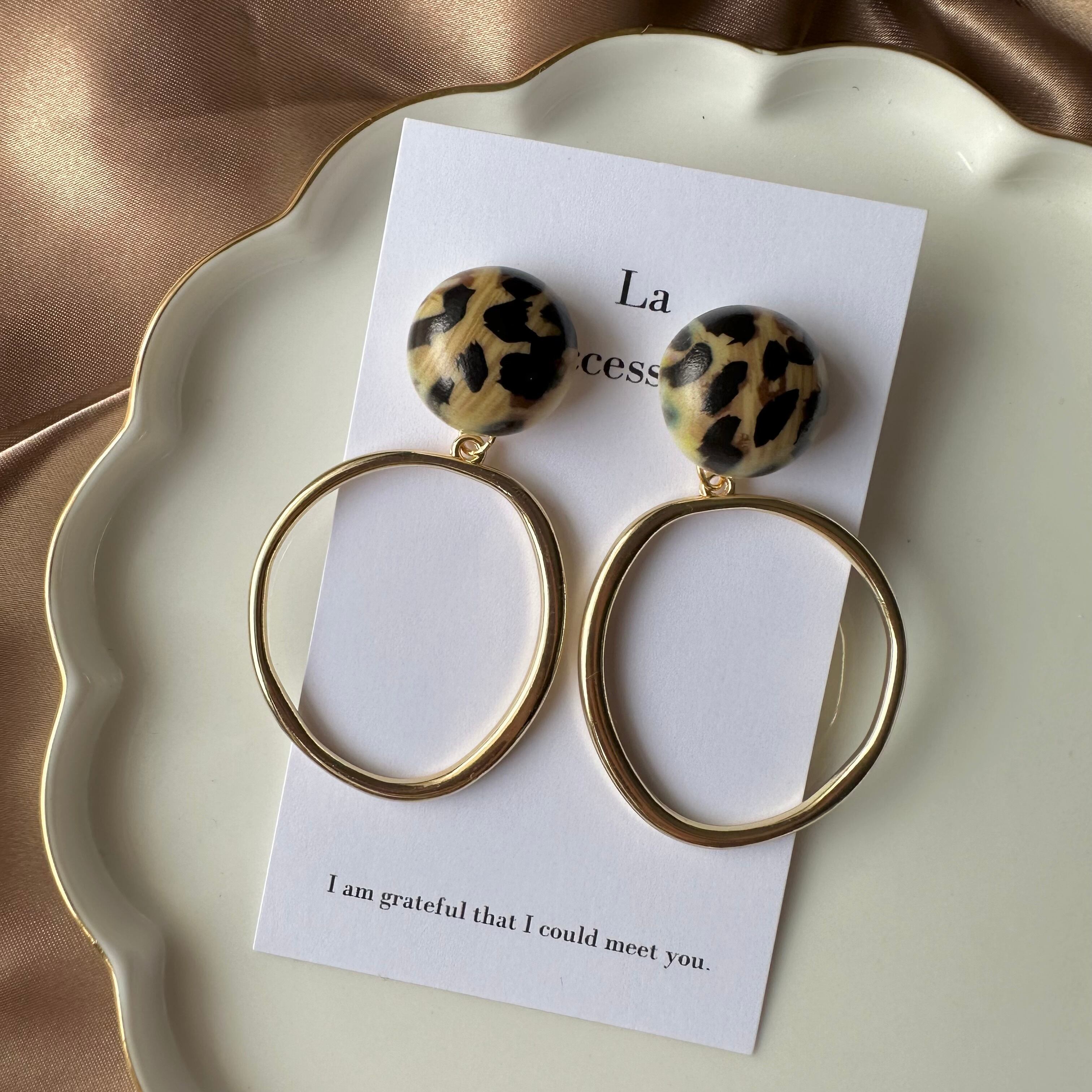 【1点物*】【ピアスのみ*】ラウンドレオパード×フープピアス