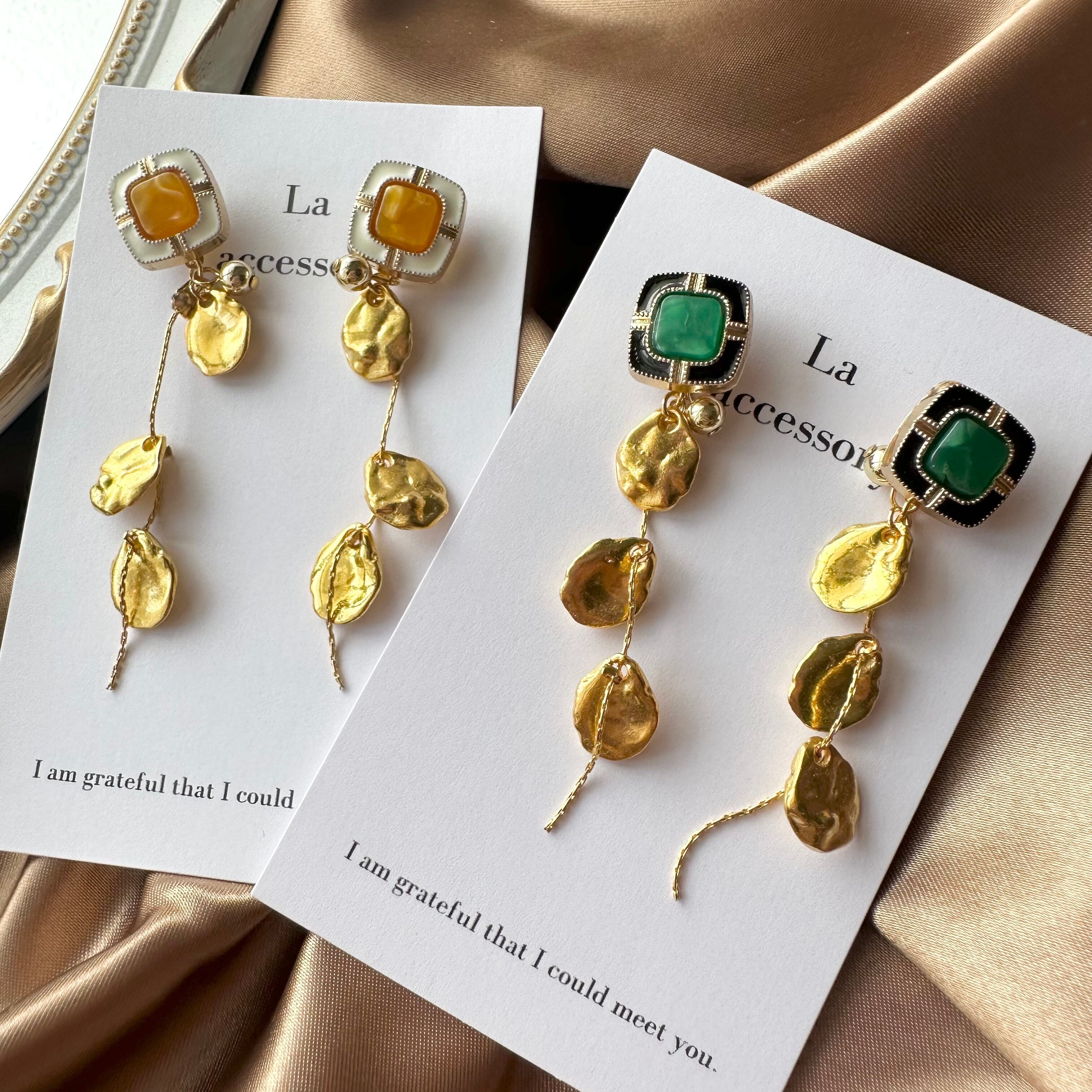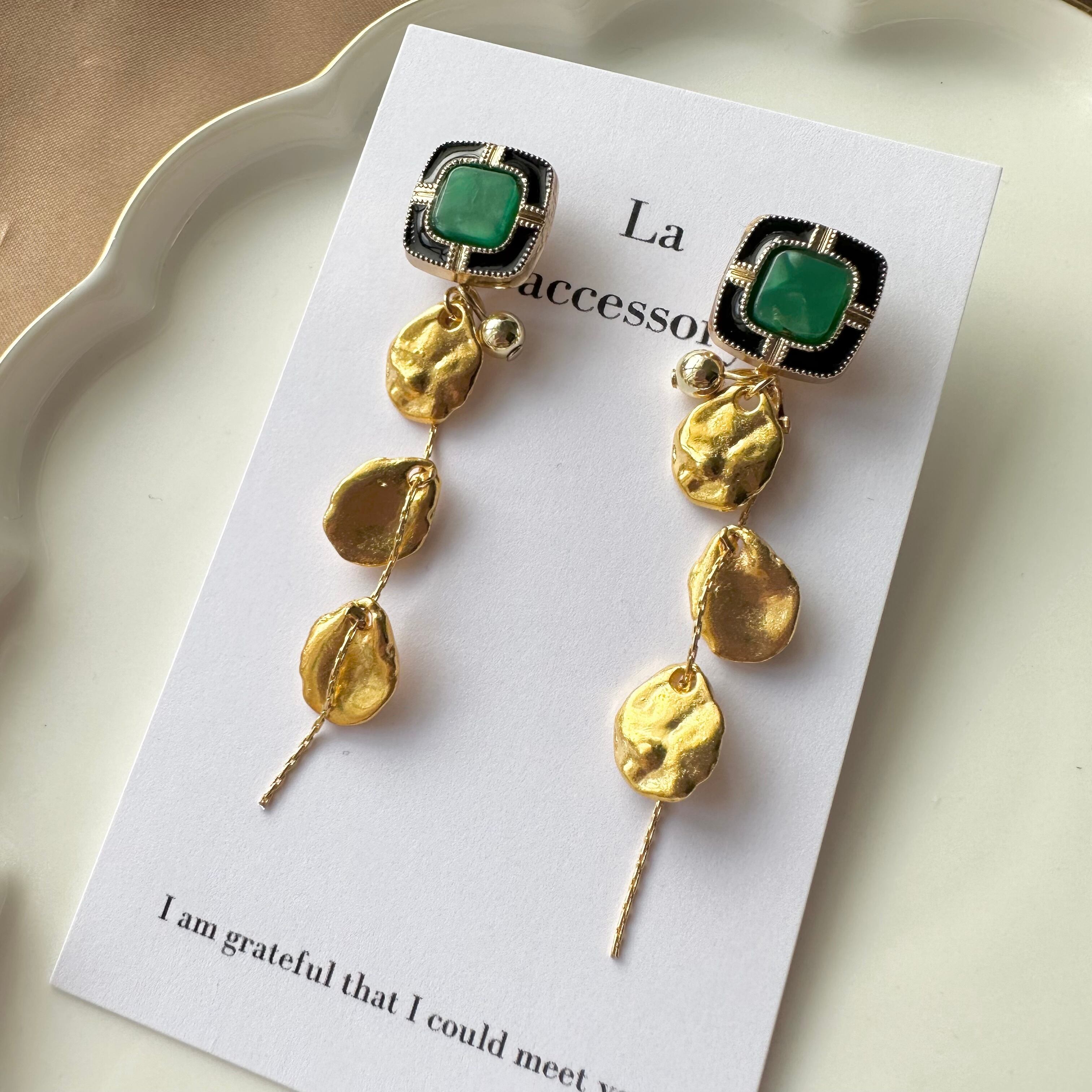 【1点物*】【ピアスのみ*】ミニアンティークボタン×揺れる葉っぱピアス