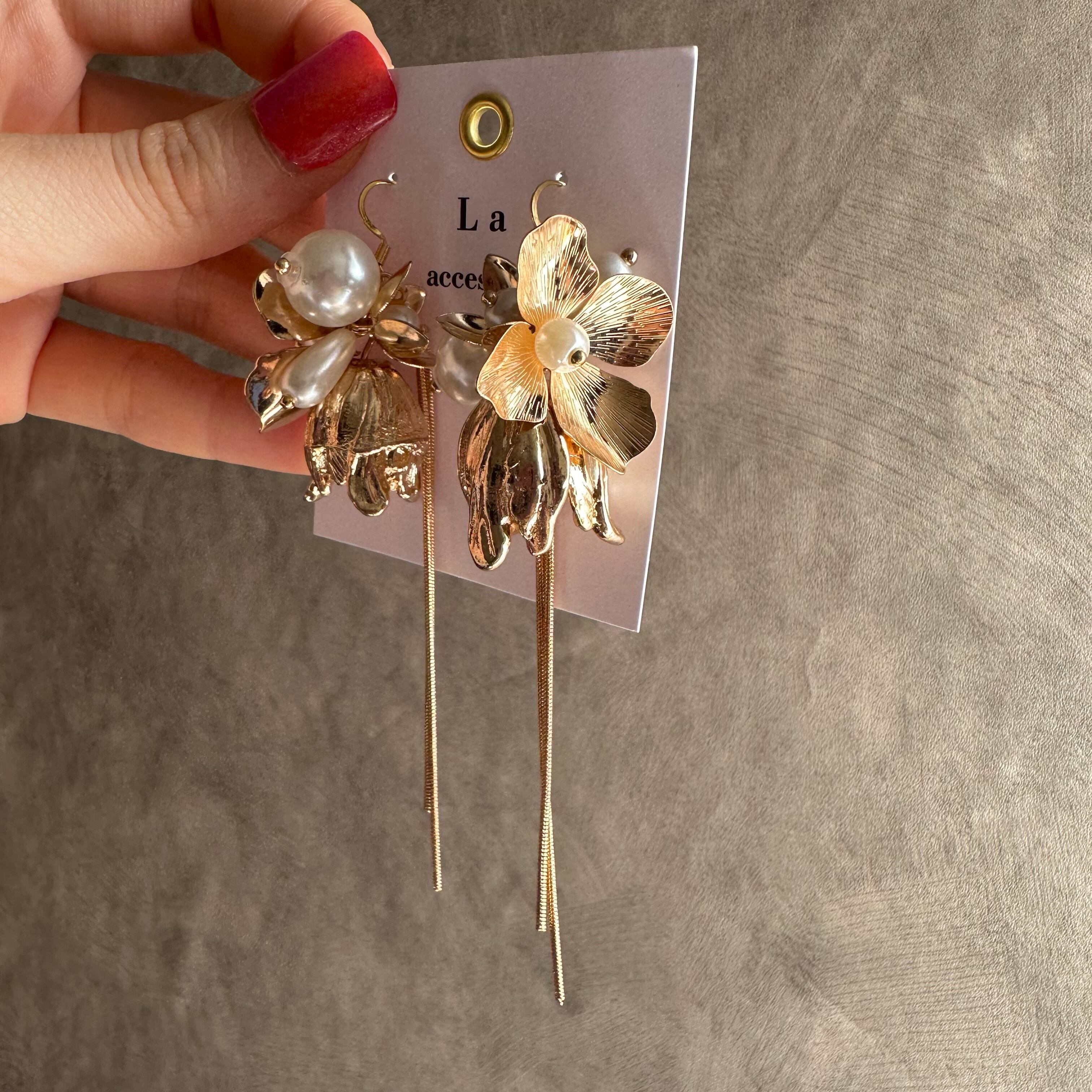 ゴールドフラワー×スネークチェーンピアス