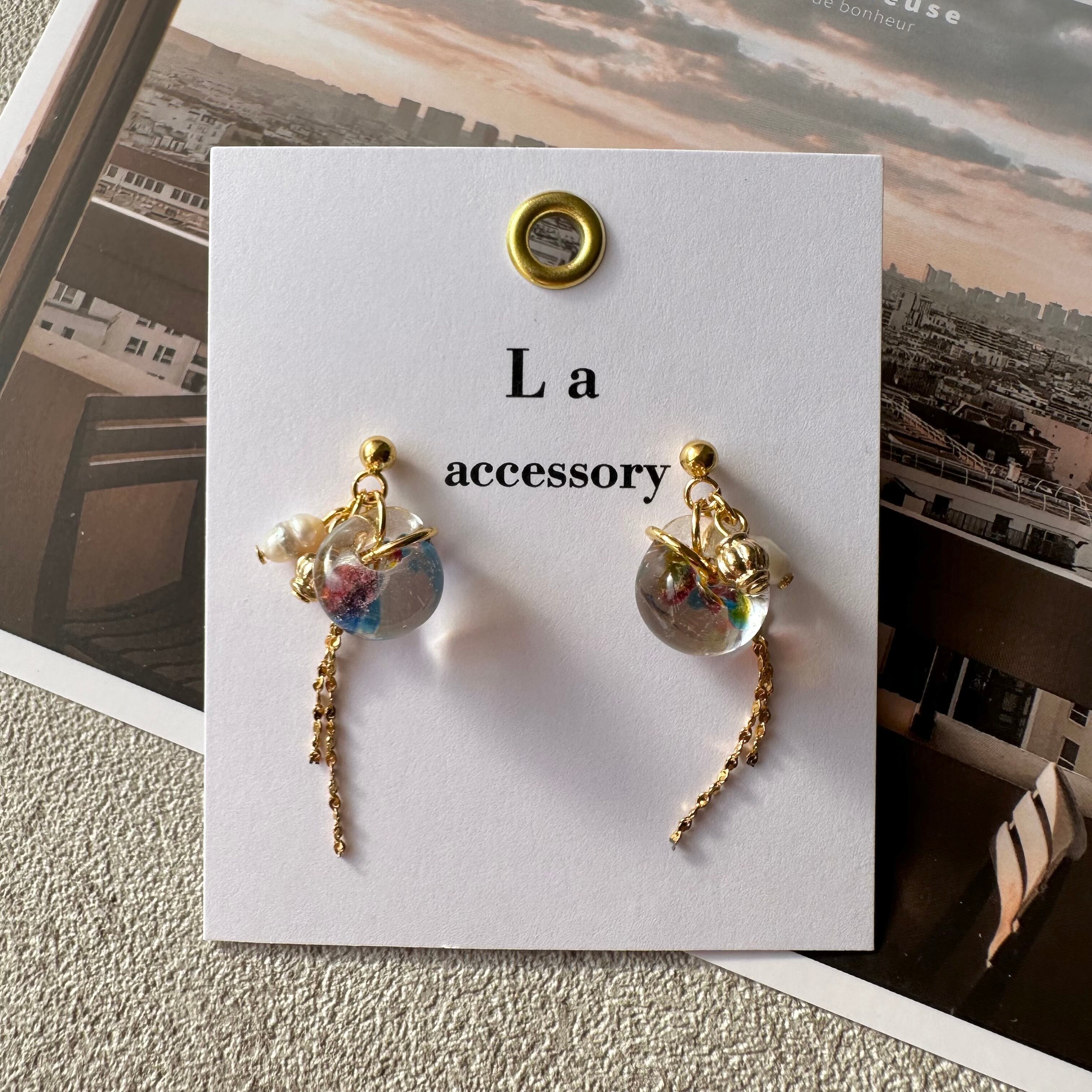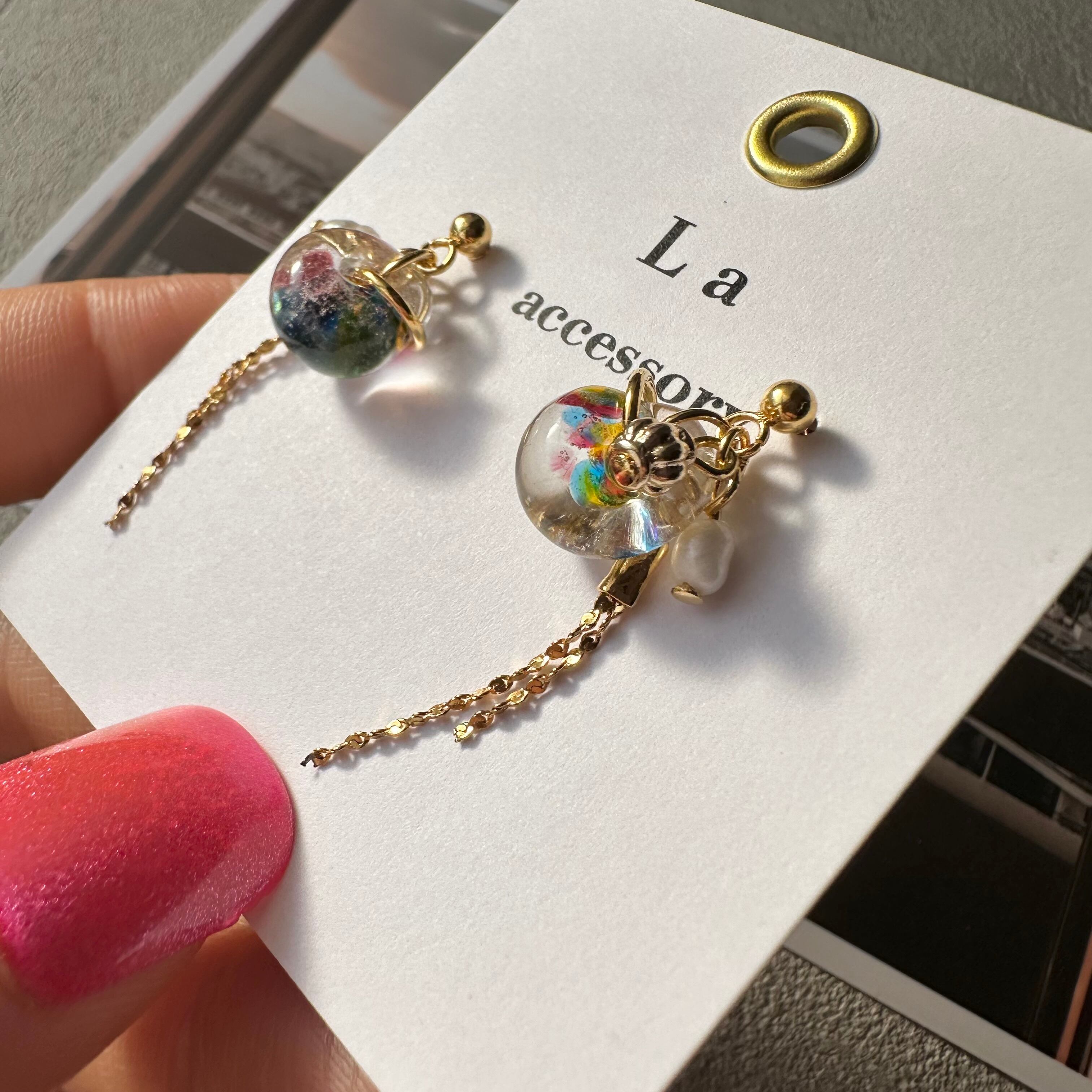 ちゅるんガラスビーズ×ステンレスチェーンピアス B