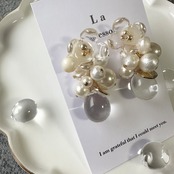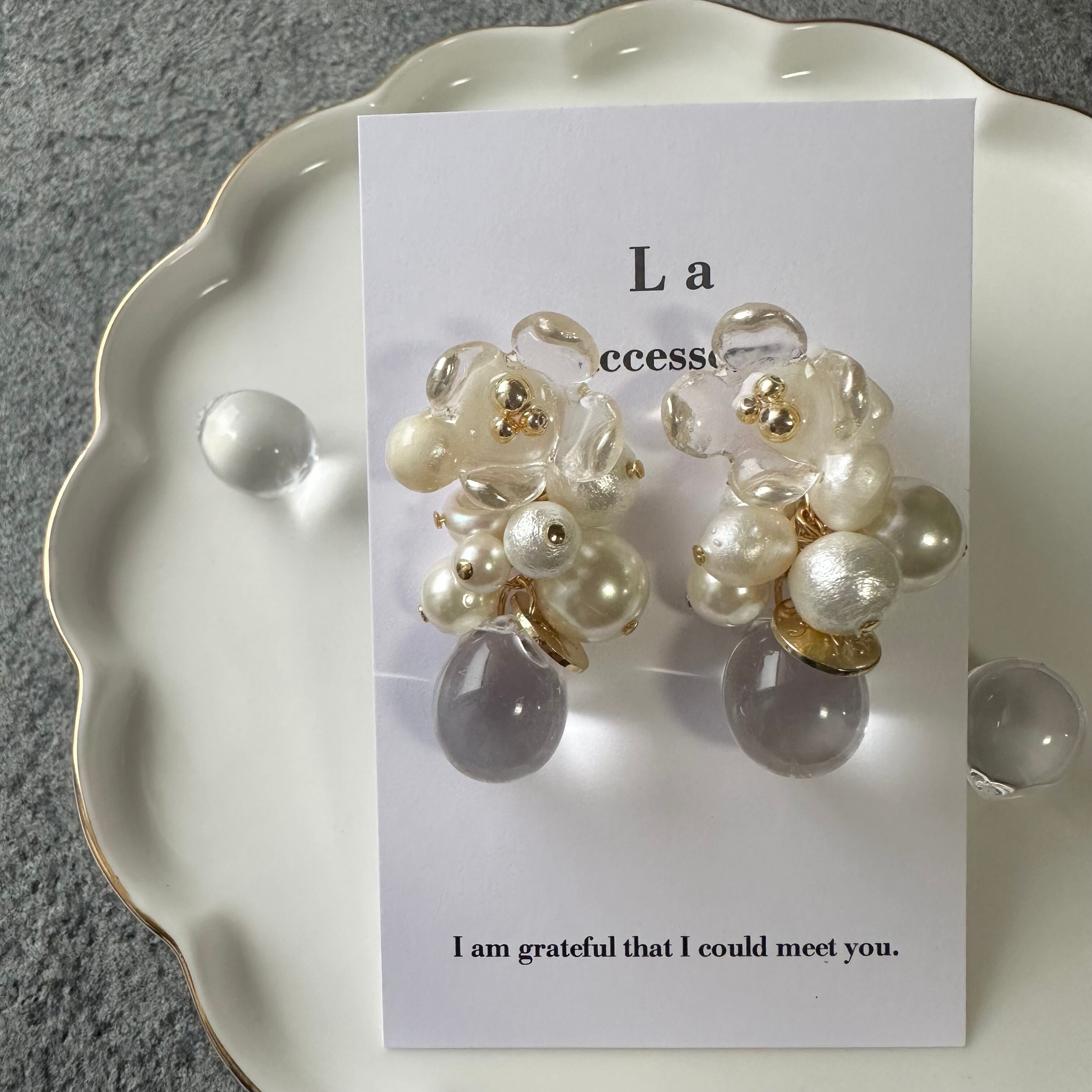 シルキーパール、高品質コットンパール、クリアパーツをmixしてとっても可愛いデザインに♡