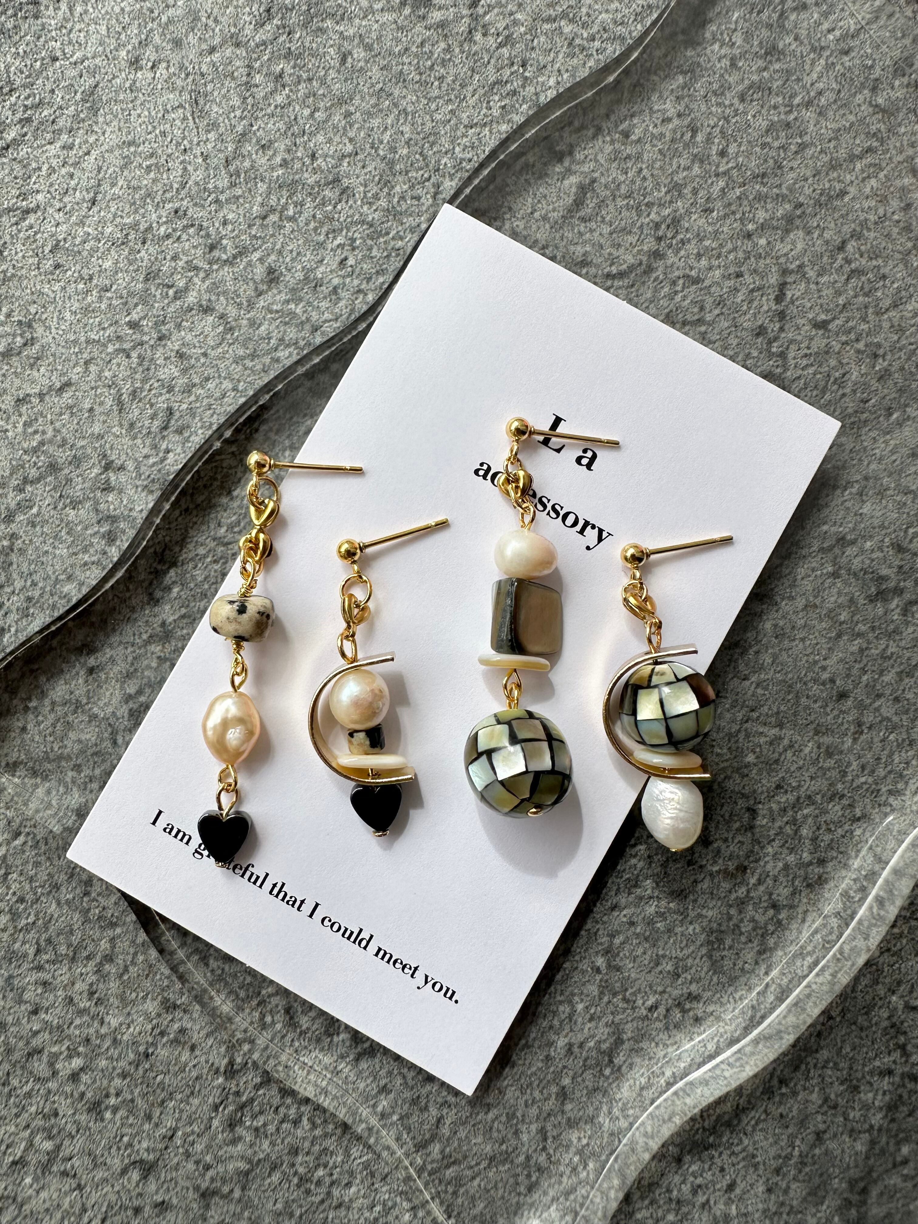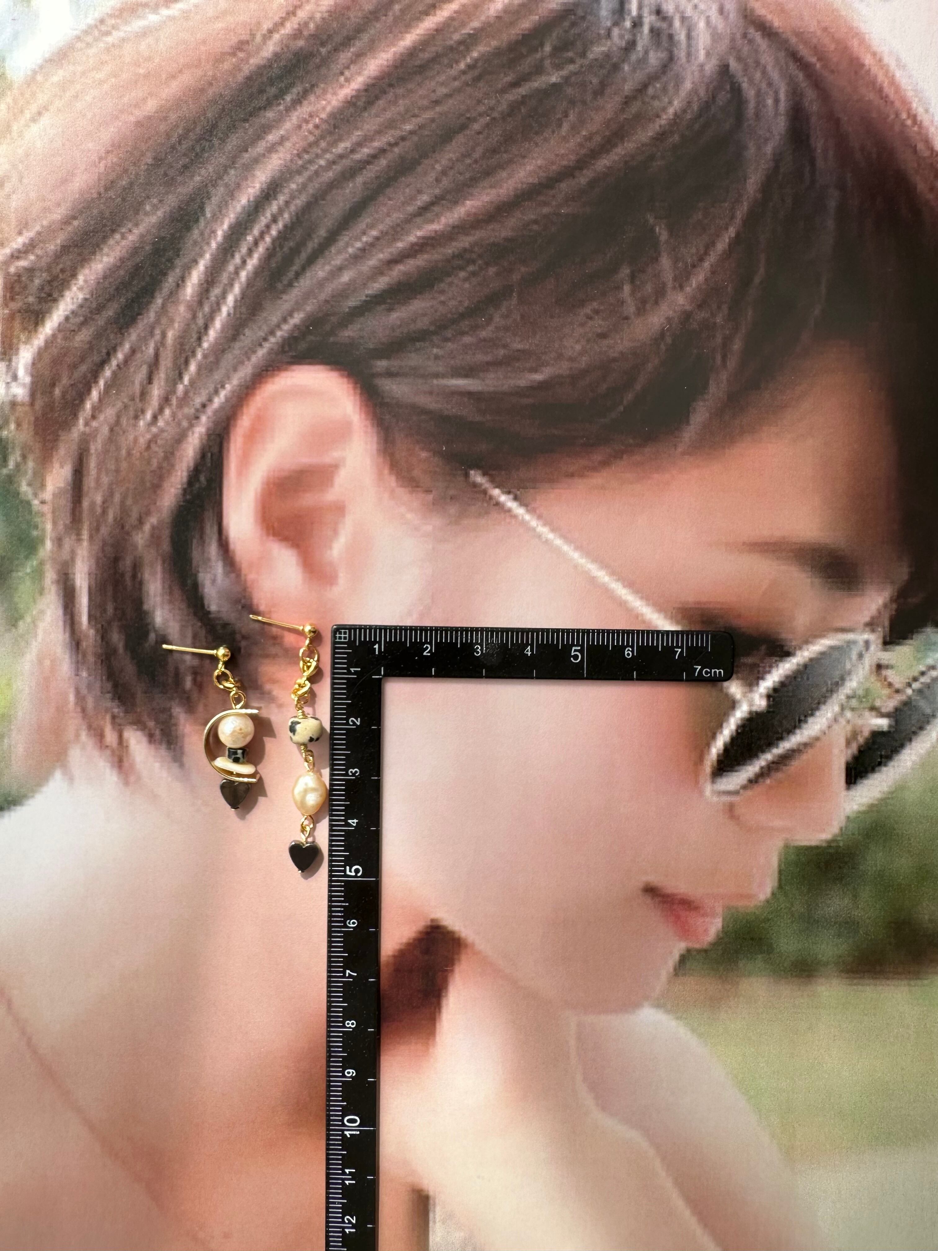 【1点物*】ヘマタイトハート×淡水パールアシメピアス
