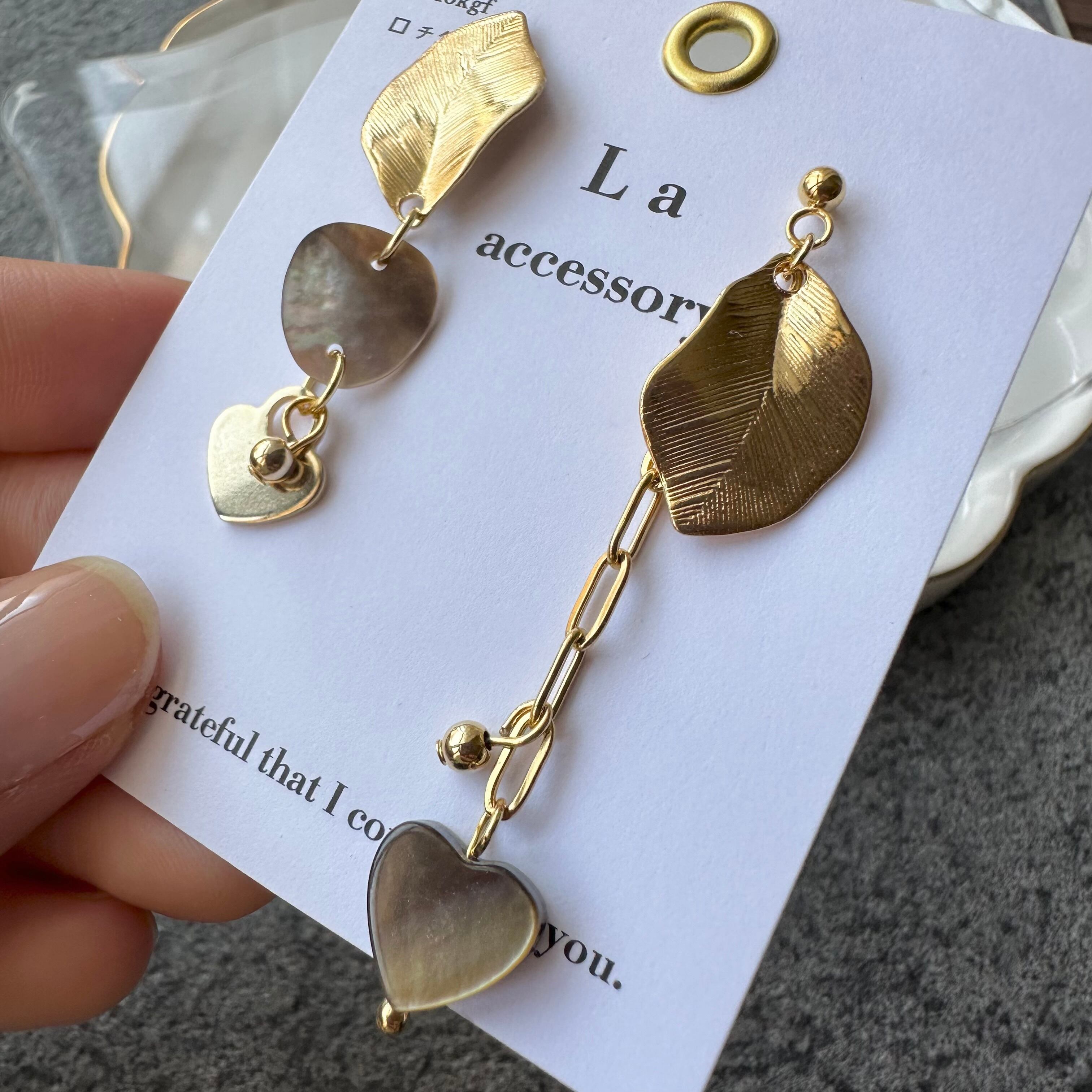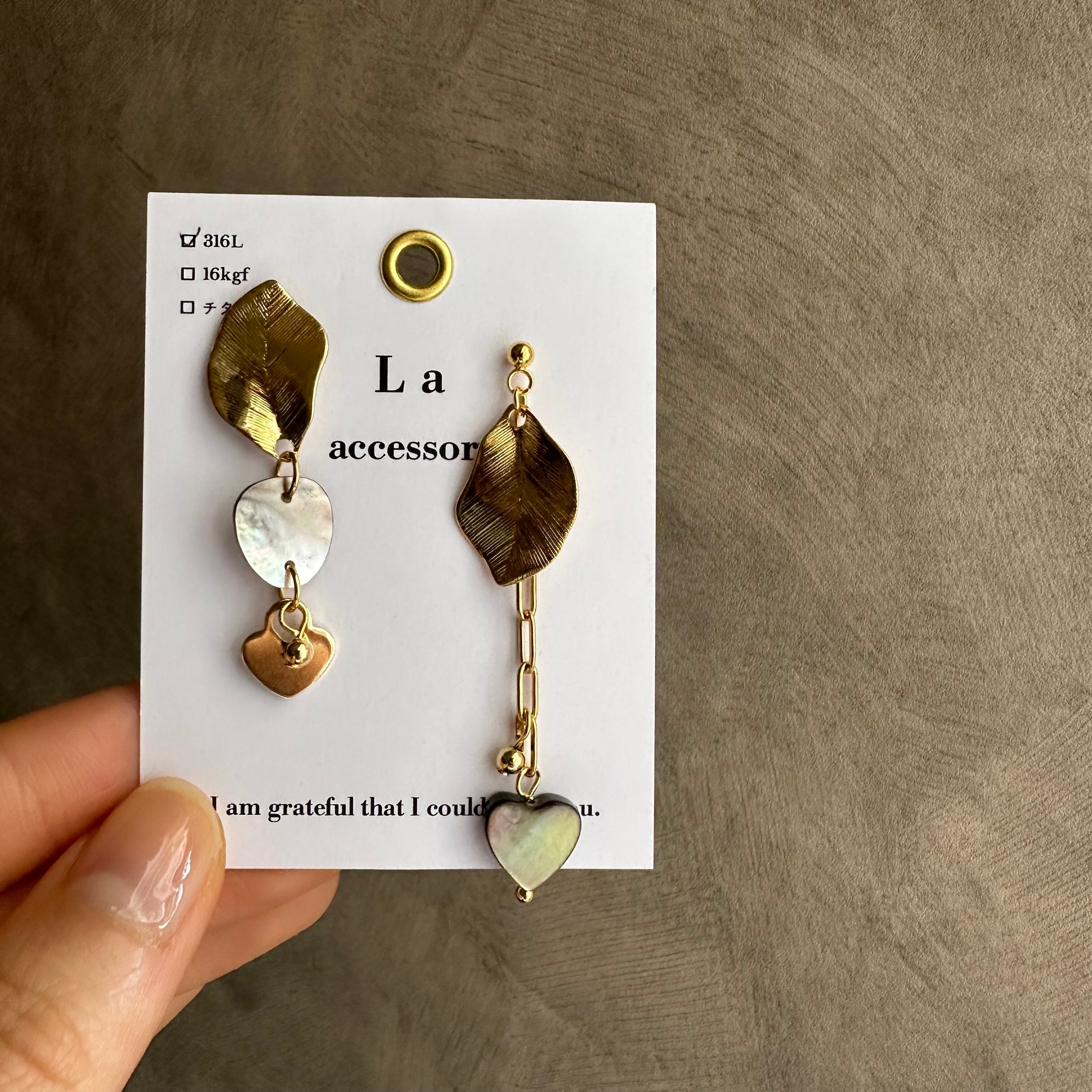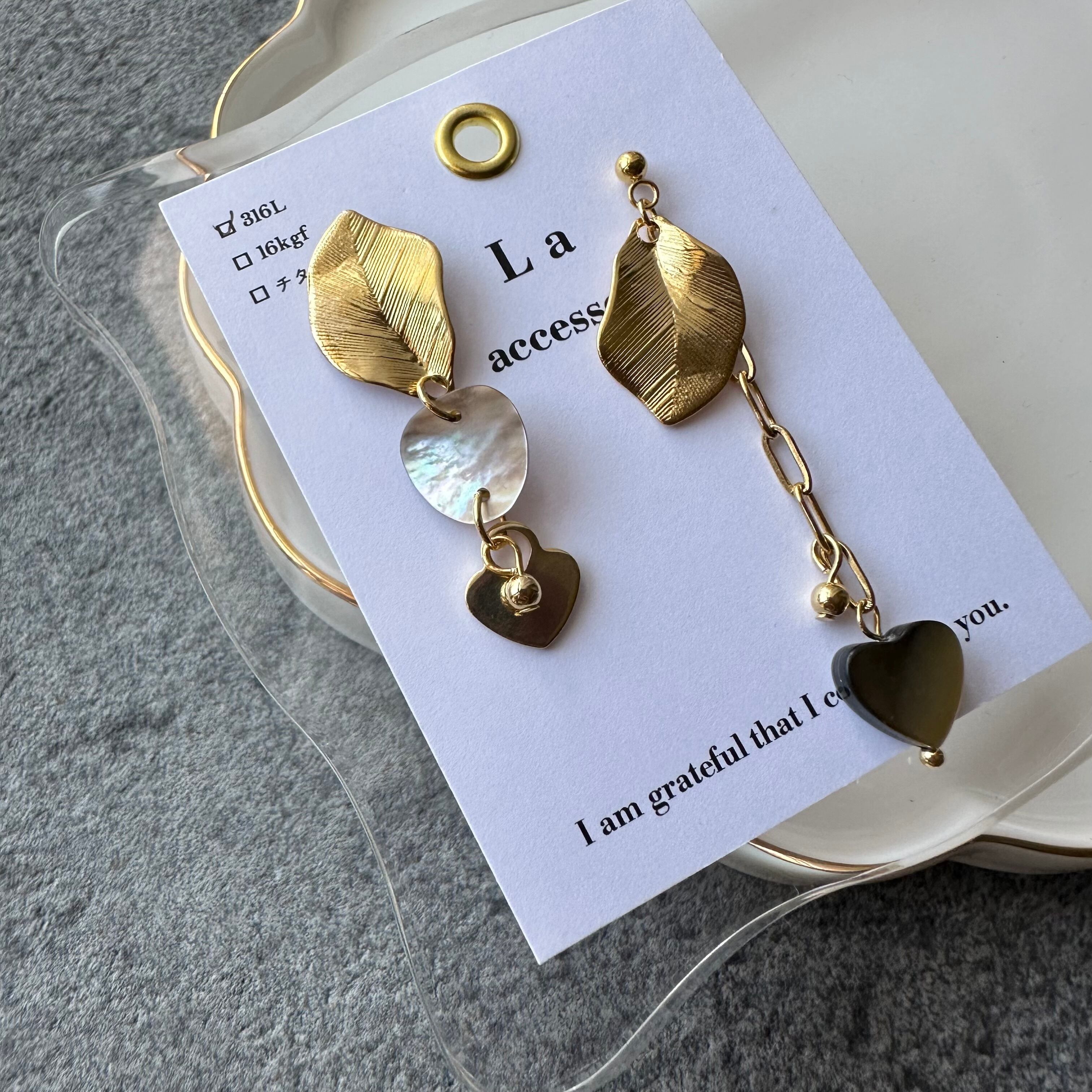 【ピアスのみ*】ブラックシェル×リーフアシメピアス