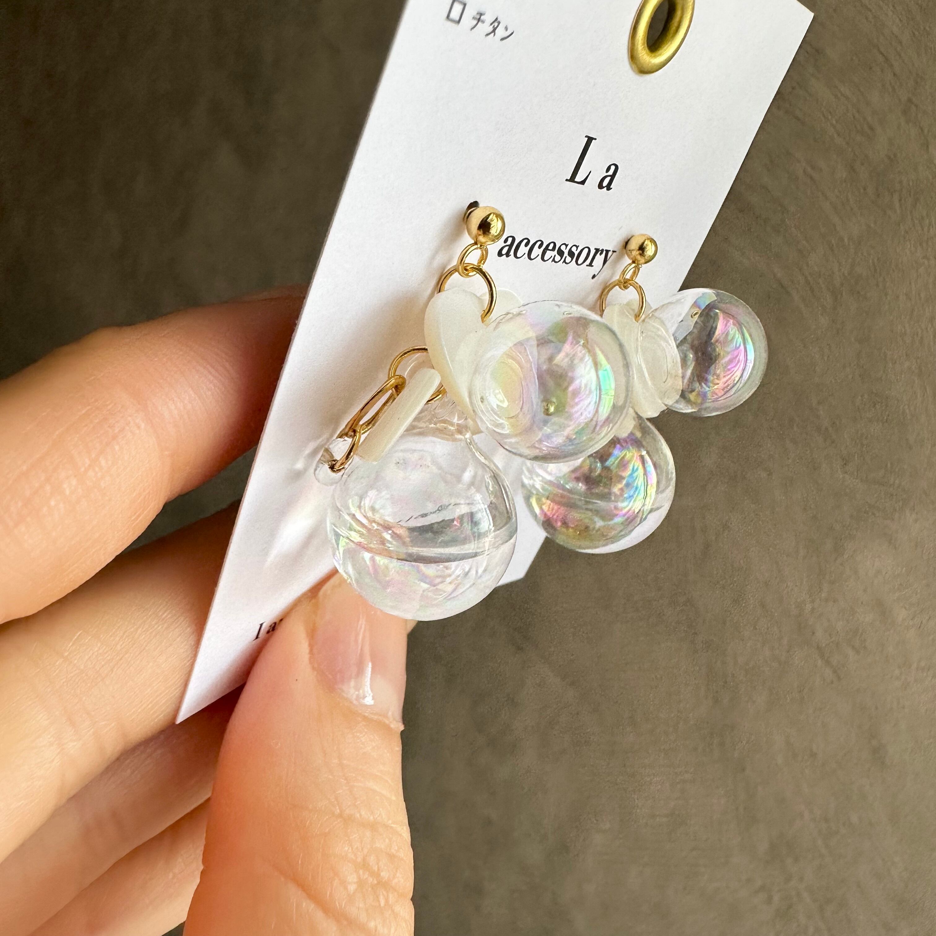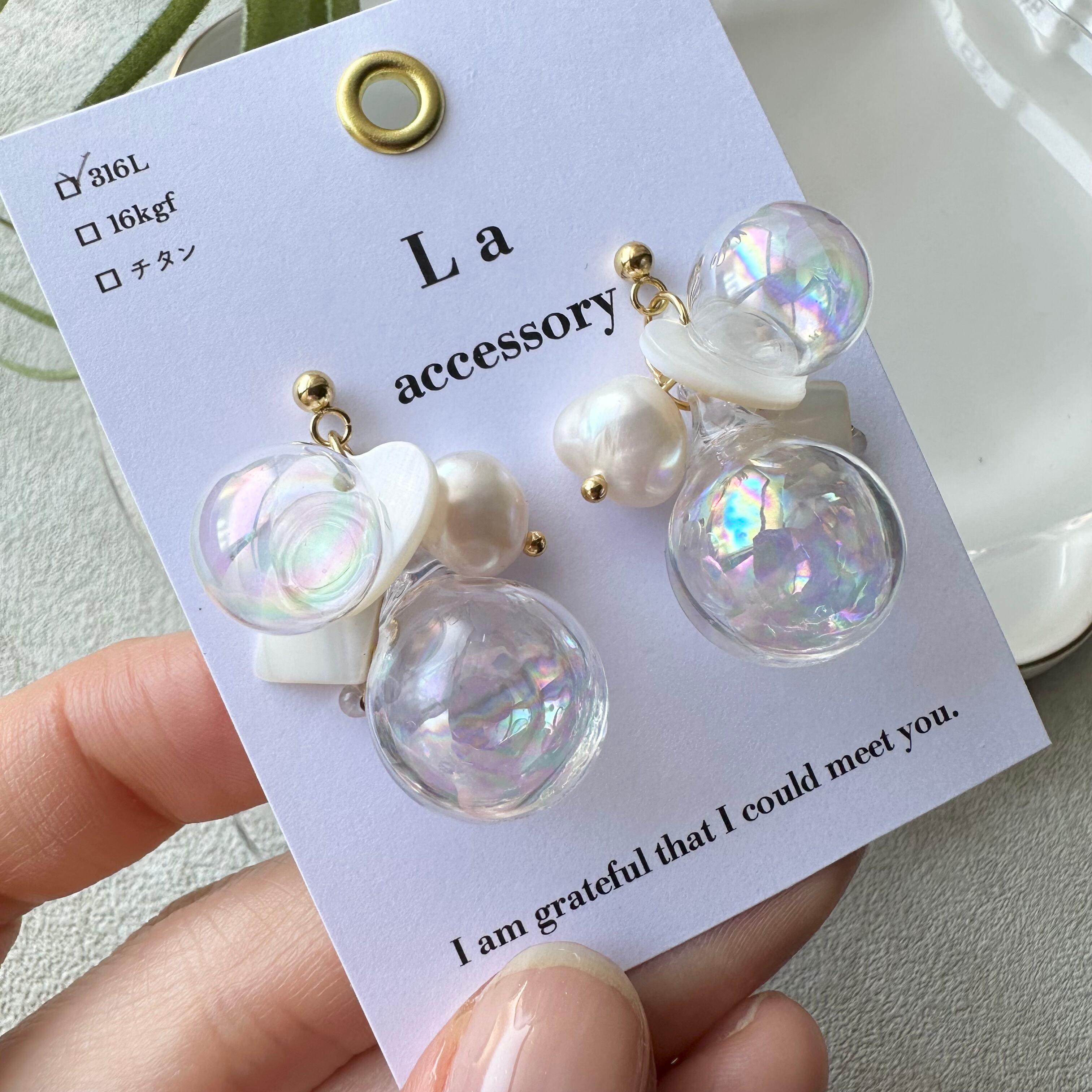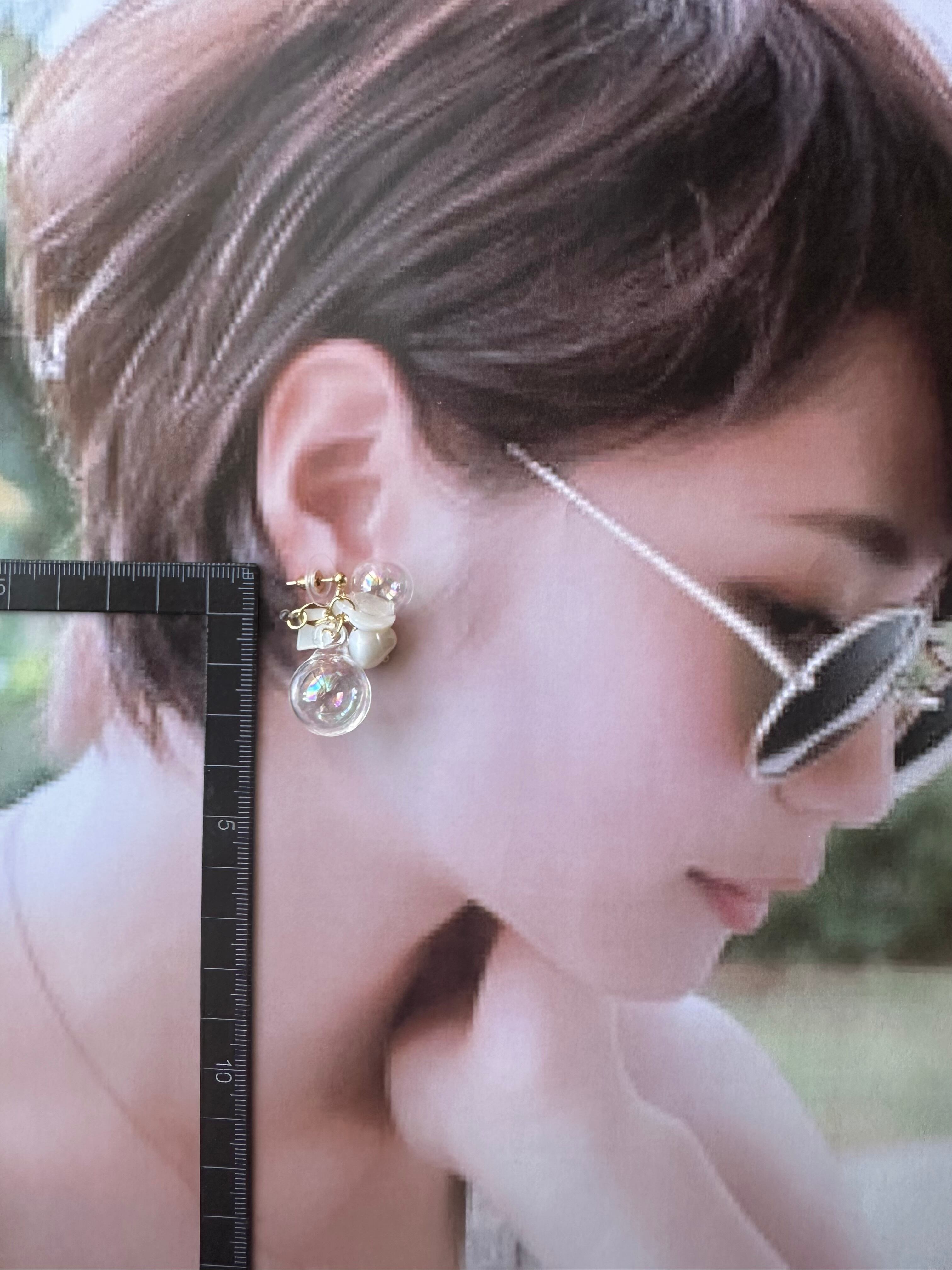 【1点物*】ホワイトシェル×ウォーターインしゃぼんだまピアス