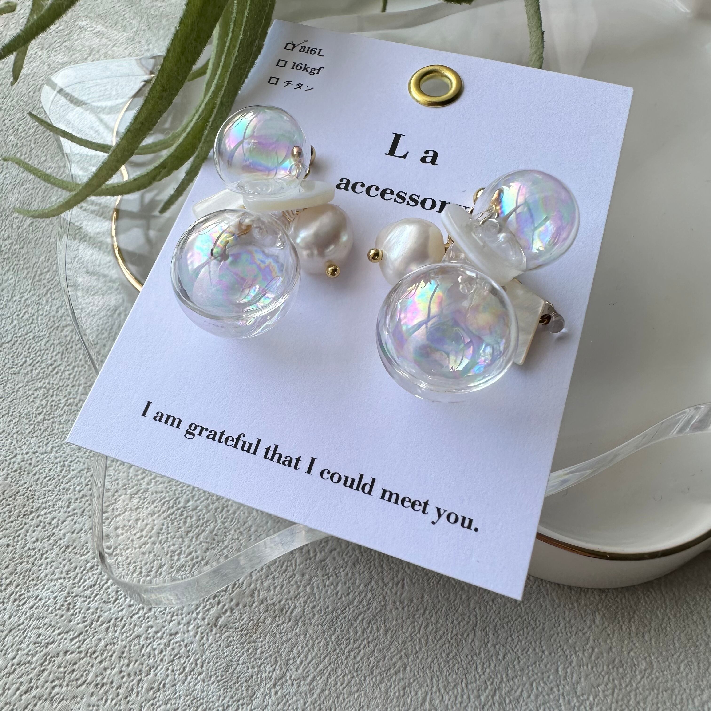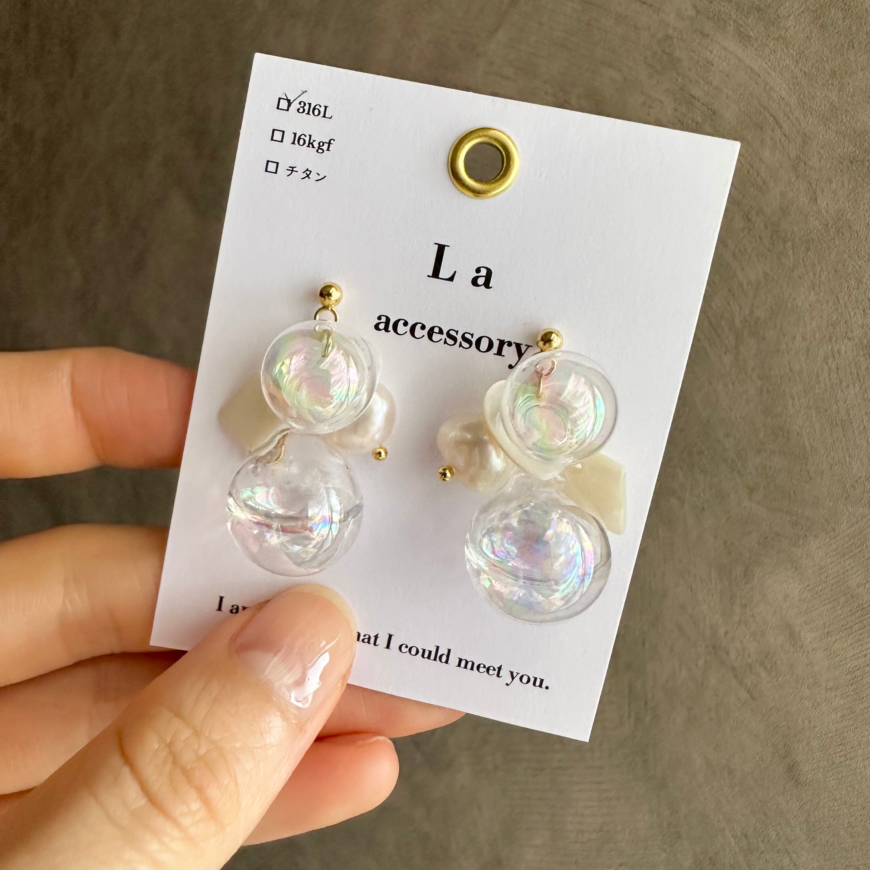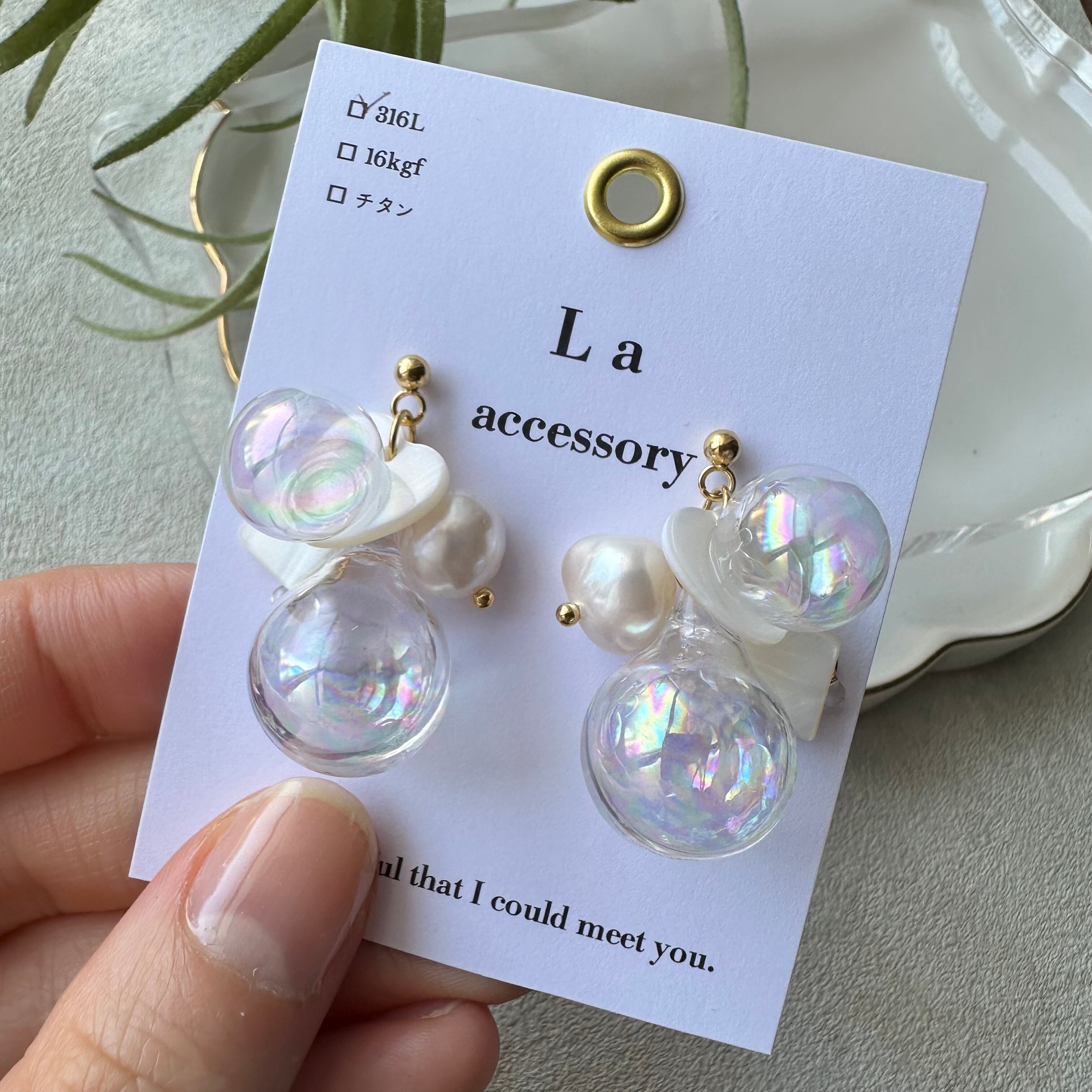 【1点物*】ホワイトシェル×ウォーターインしゃぼんだまピアス